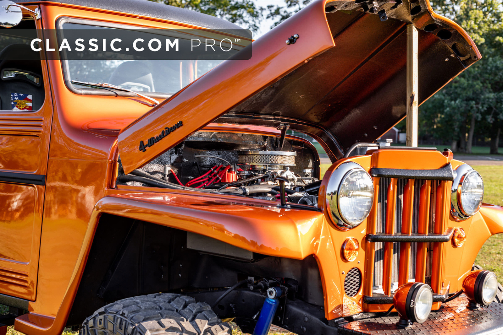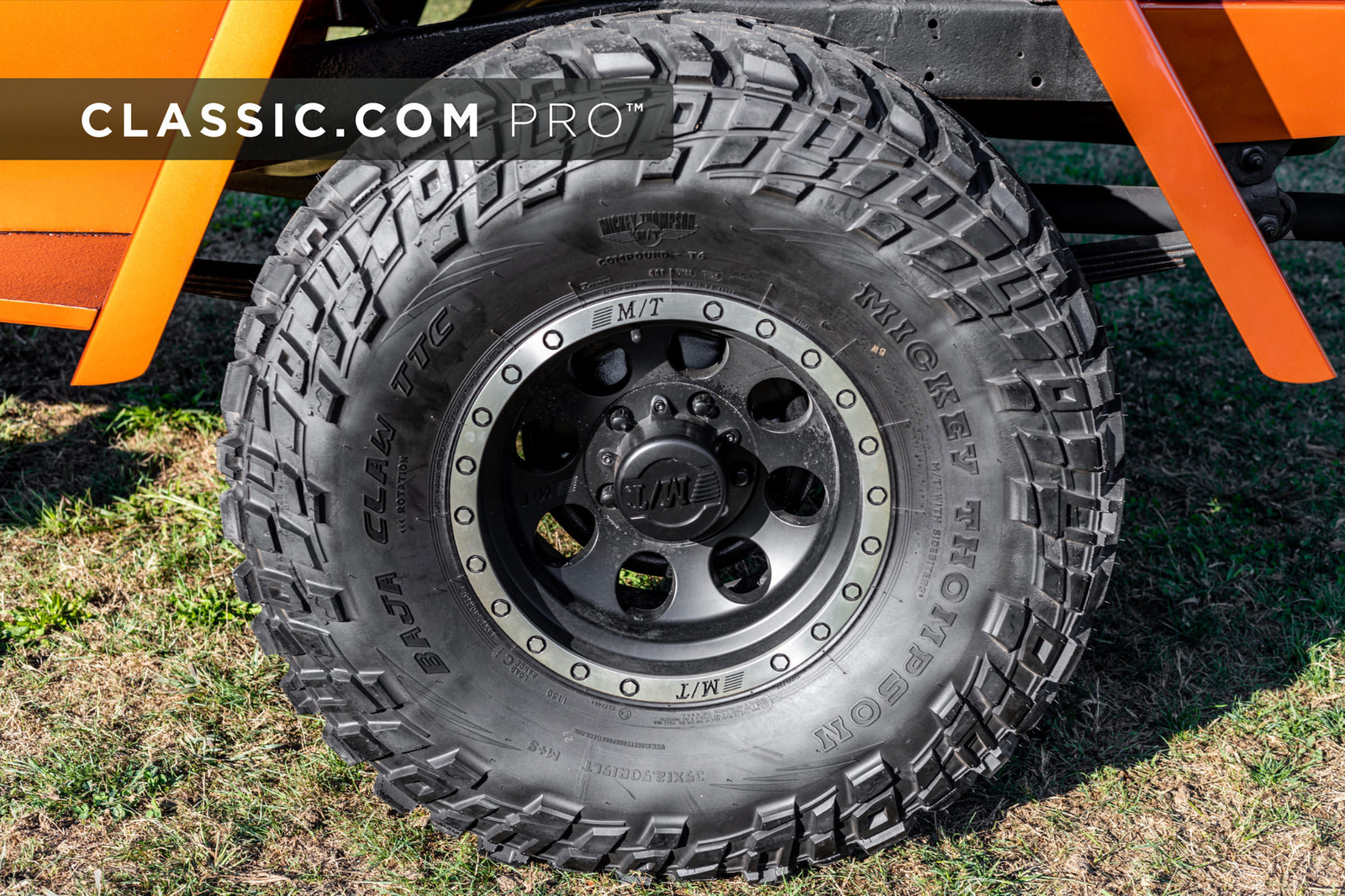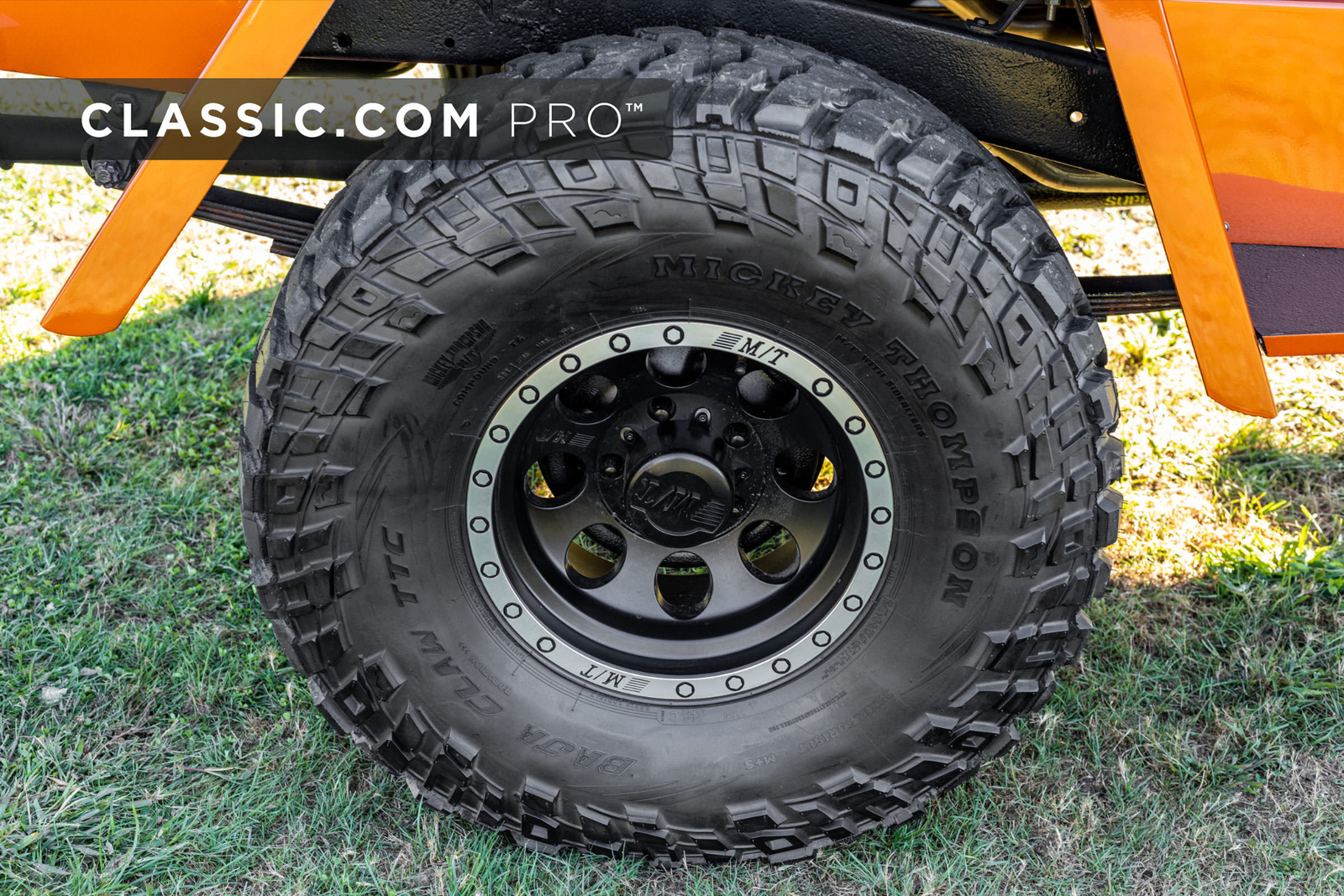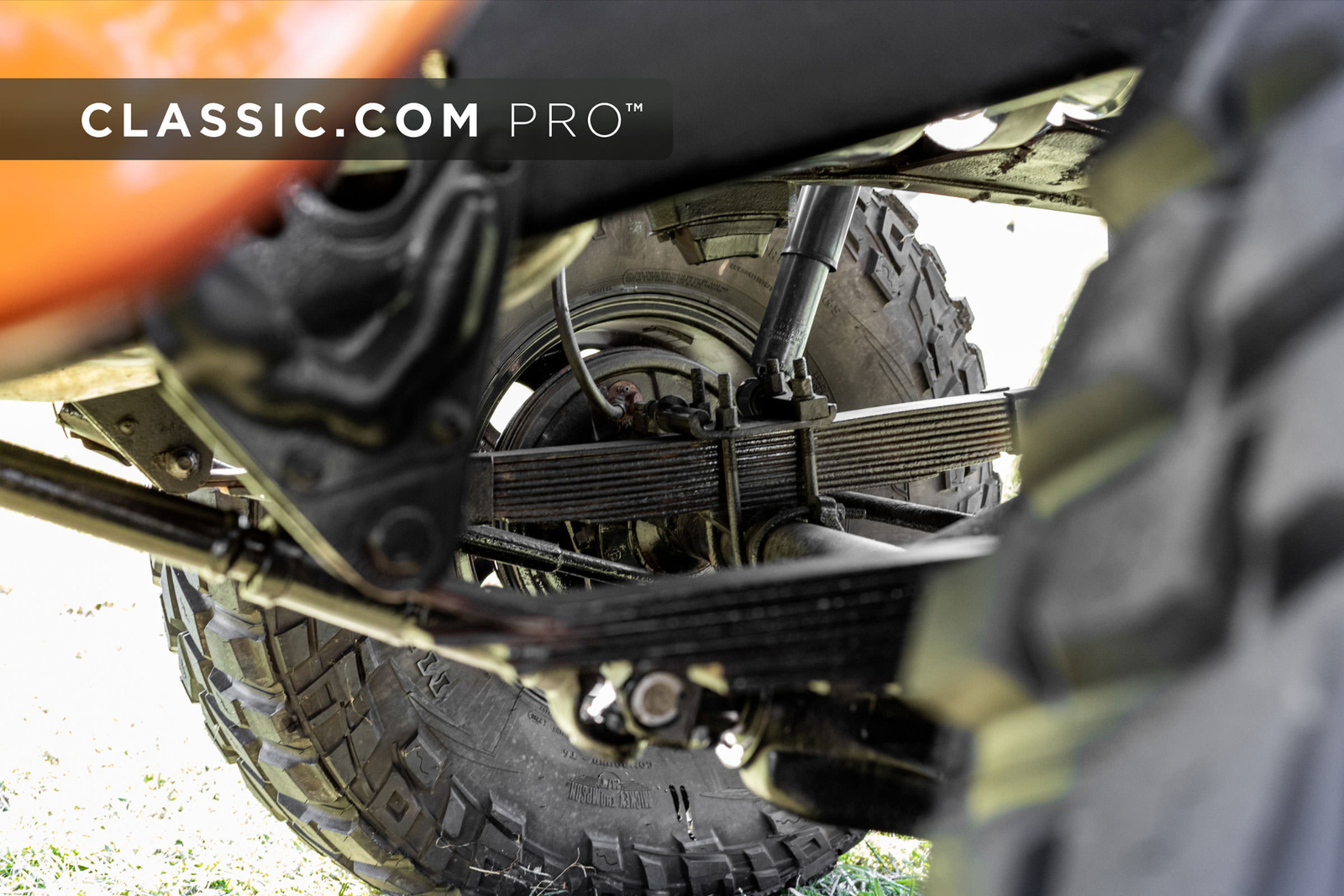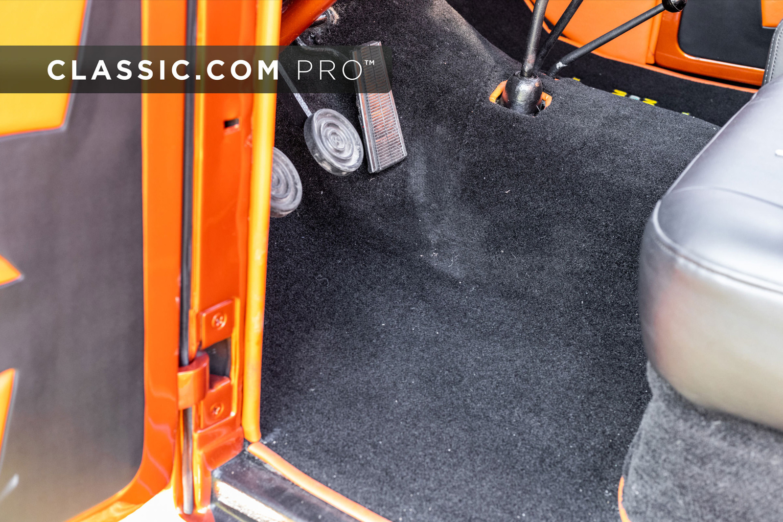 This 1962 Jeep Willys Pickup underwent a full restoration in 2016-2017 and shows just 2 miles on the new odometer (total mileage is unknown). The original straight-six cylinder engine has been replaced in favor of a powerful Chevy-sourced 350ci V8 matched to its original Borg-Warner T90 3-speed manual transmission. This capable and utilitarian Jeep has been modified significantly to modernize mechanical components and give it a unique but classic look. This example was repainted in burnt orange and is complemented by a custom black and orange leather interior with matching floor mats and headliner. The custom center console houses a newer Kenwood stereo head unit. Additional upgrades include new glass and seals, a new dual exhaust, and a suspension lift to accommodate 35 Mickey Thompson tires. The truck is located in Long Island, NY.