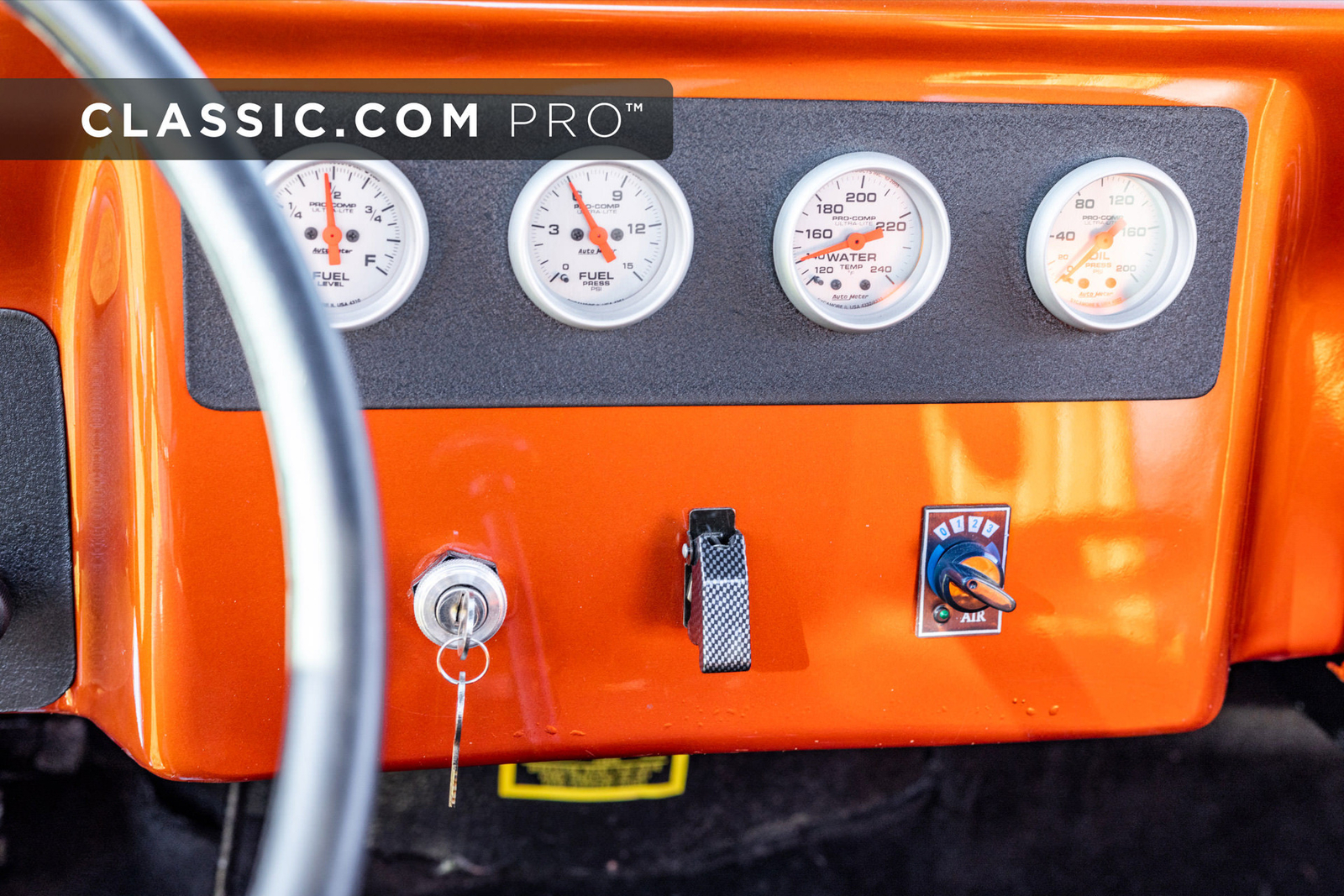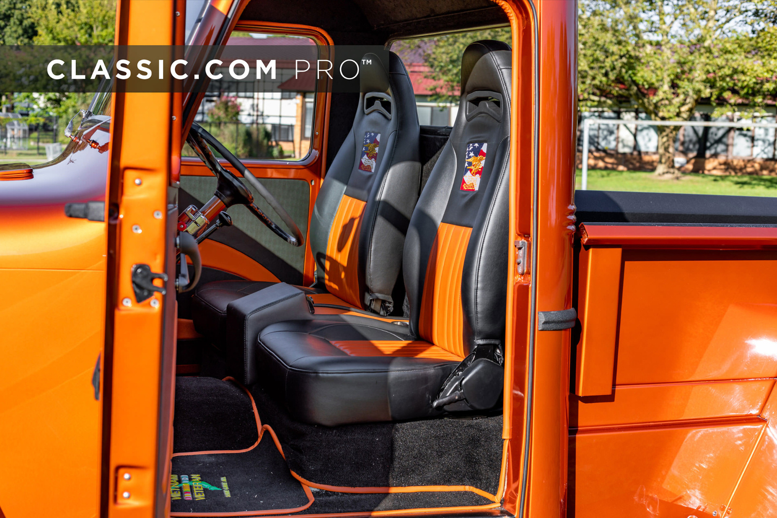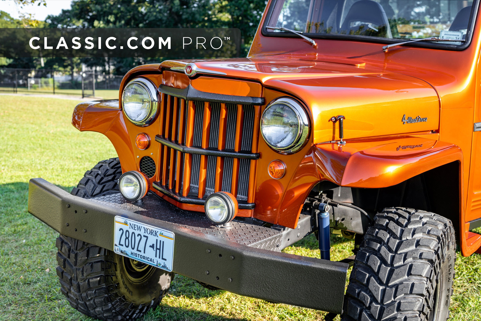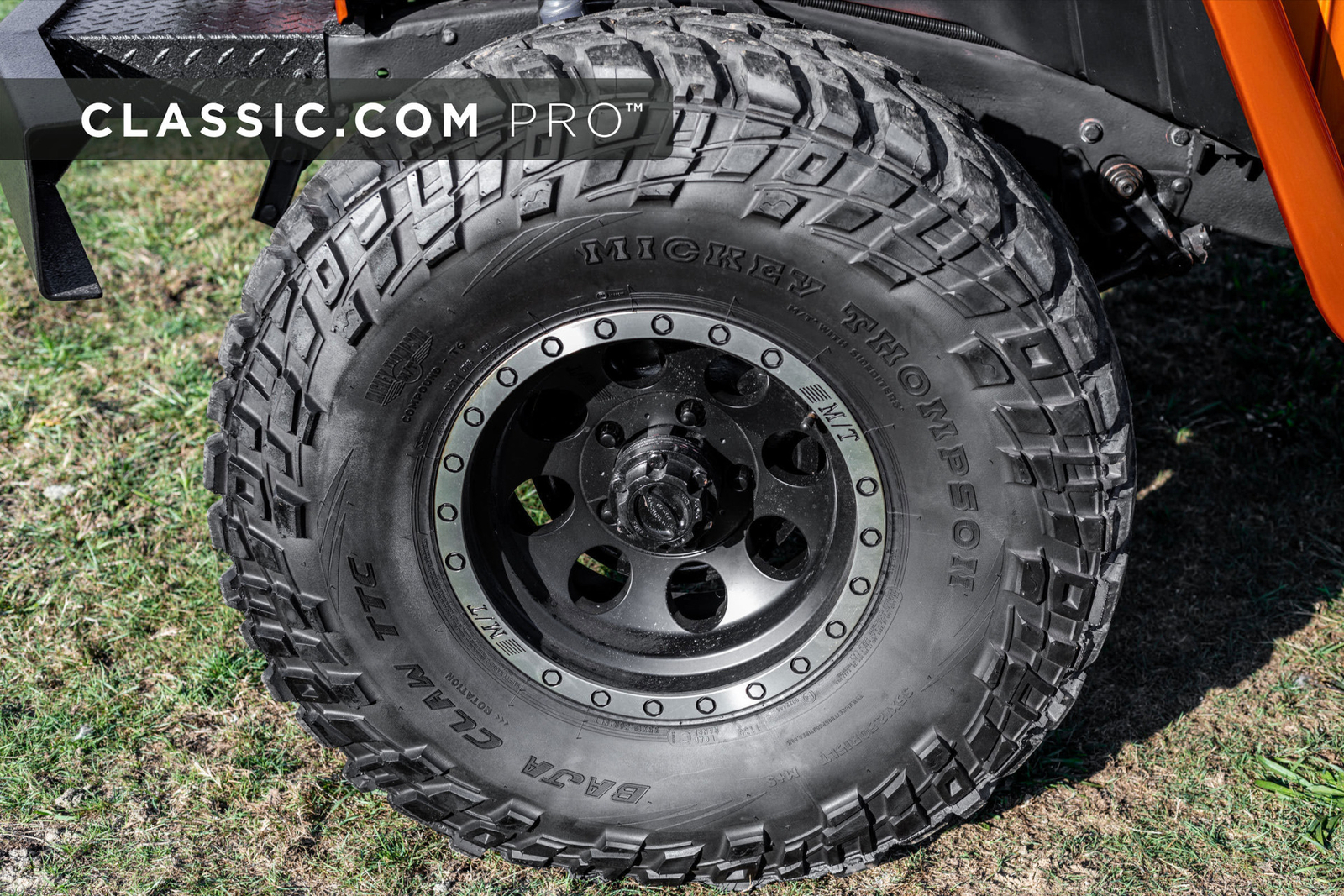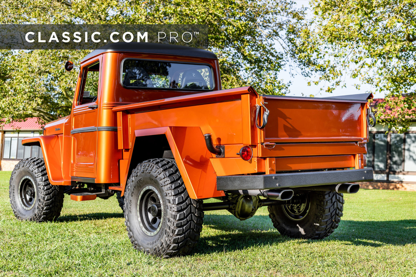 This 1962 Jeep Willys Pickup underwent a full restoration in 2016-2017 and shows just 2 miles on the new odometer (total mileage is unknown). The original straight-six cylinder engine has been replaced in favor of a powerful Chevy-sourced 350ci V8 matched to its original Borg-Warner T90 3-speed manual transmission. This capable and utilitarian Jeep has been modified significantly to modernize mechanical components and give it a unique but classic look. This example was repainted in burnt orange and is complemented by a custom black and orange leather interior with matching floor mats and headliner. The custom center console houses a newer Kenwood stereo head unit. Additional upgrades include new glass and seals, a new dual exhaust, and a suspension lift to accommodate 35 Mickey Thompson tires. The truck is located in Long Island, NY.