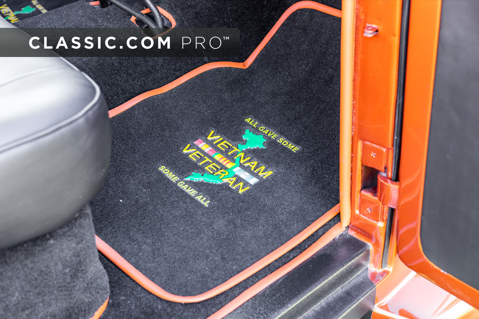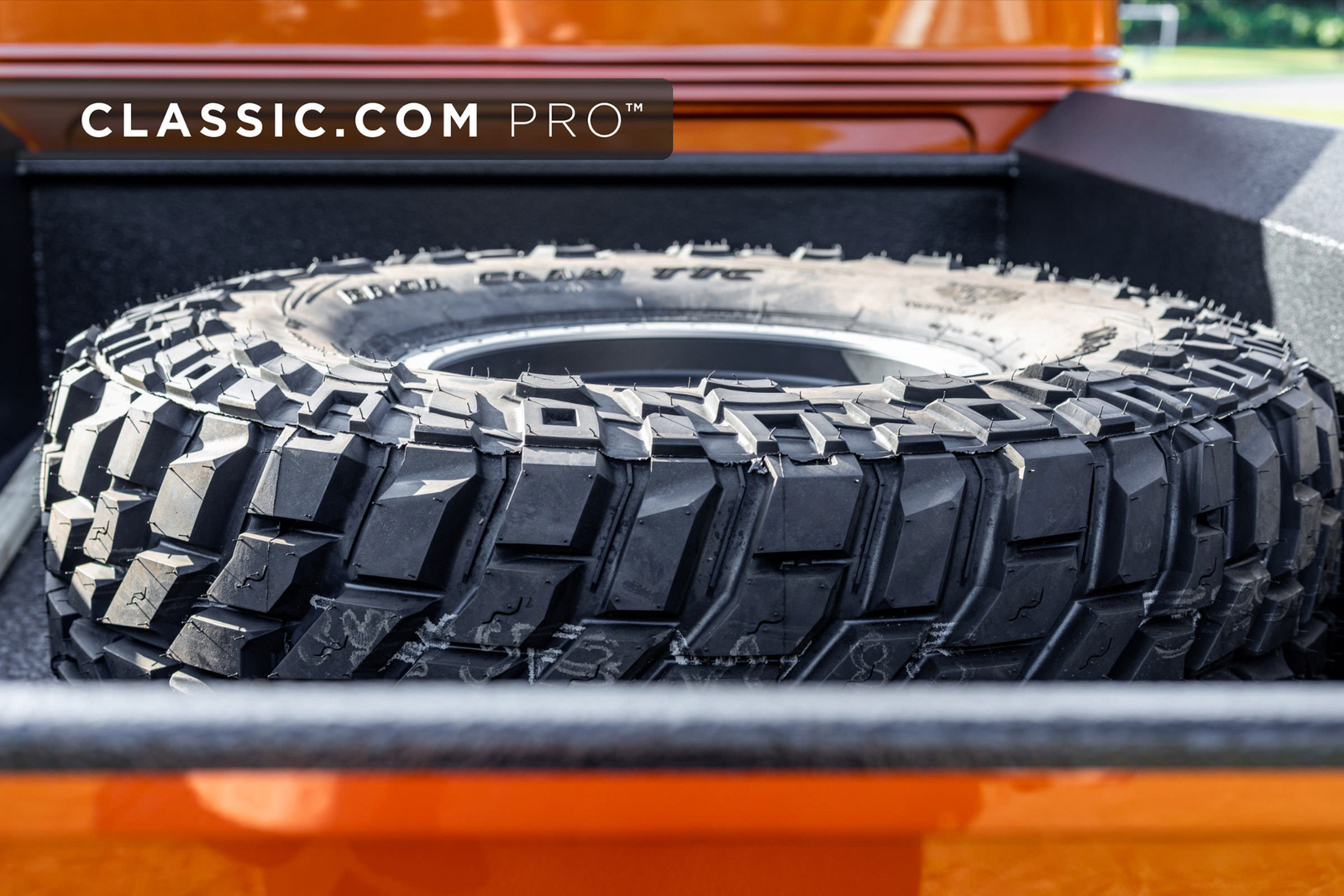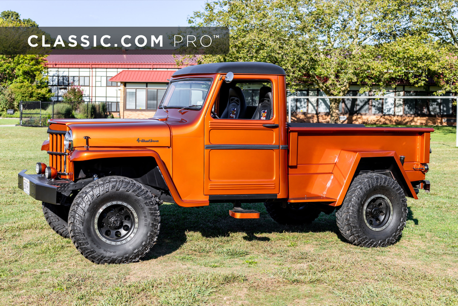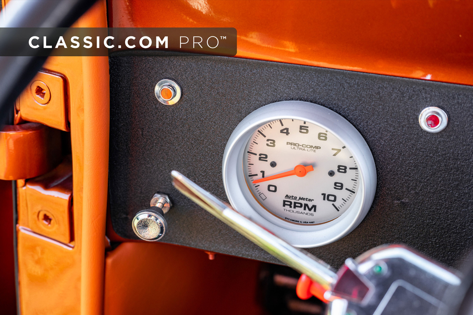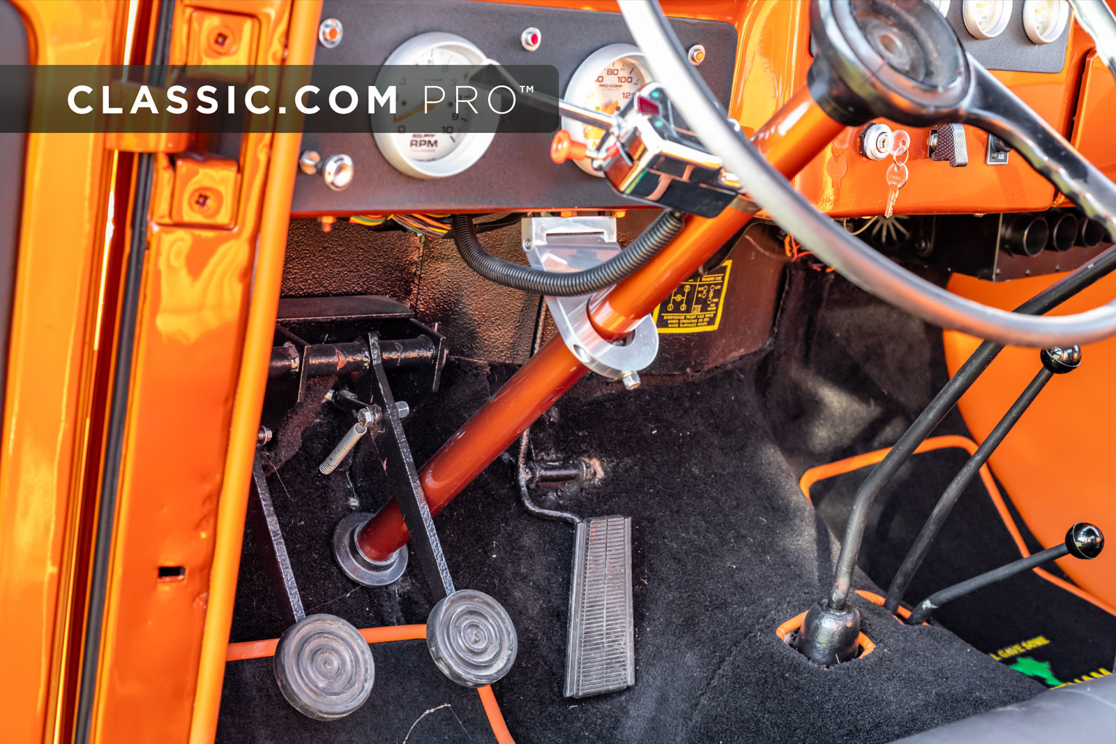 This 1962 Jeep Willys Pickup underwent a full restoration in 2016-2017 and shows just 2 miles on the new odometer (total mileage is unknown). The original straight-six cylinder engine has been replaced in favor of a powerful Chevy-sourced 350ci V8 matched to its original Borg-Warner T90 3-speed manual transmission. This capable and utilitarian Jeep has been modified significantly to modernize mechanical components and give it a unique but classic look. This example was repainted in burnt orange and is complemented by a custom black and orange leather interior with matching floor mats and headliner. The custom center console houses a newer Kenwood stereo head unit. Additional upgrades include new glass and seals, a new dual exhaust, and a suspension lift to accommodate 35 Mickey Thompson tires. The truck is located in Long Island, NY.