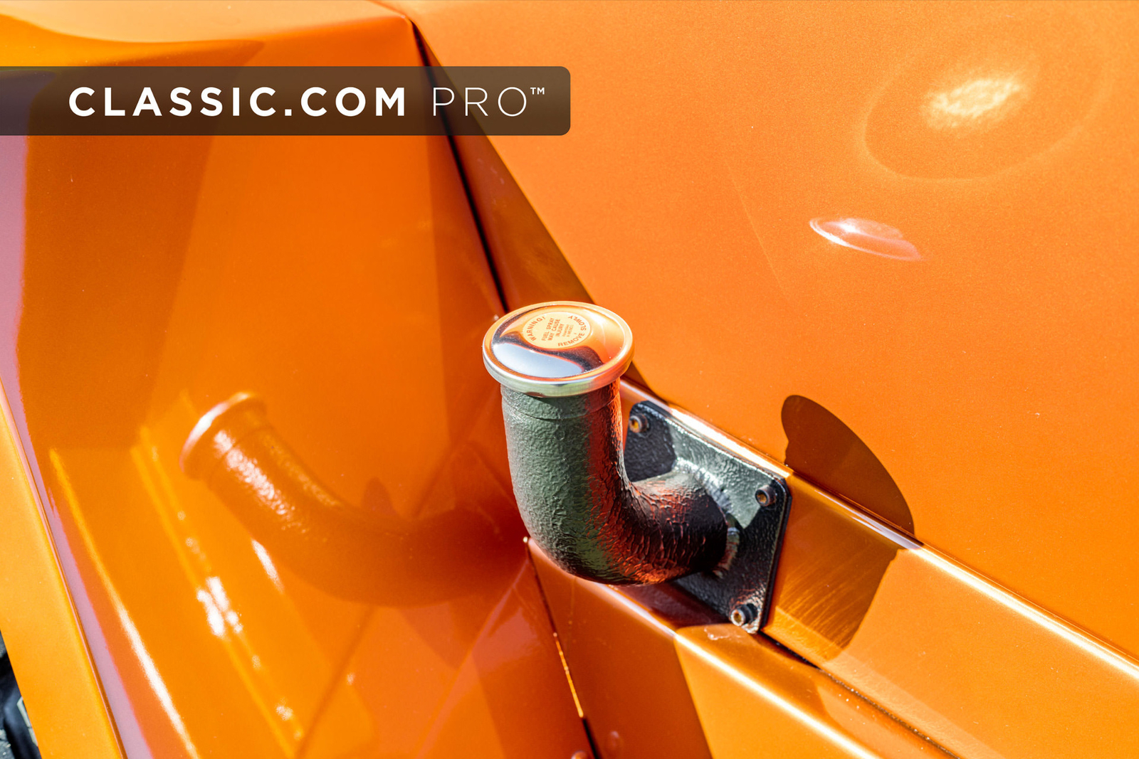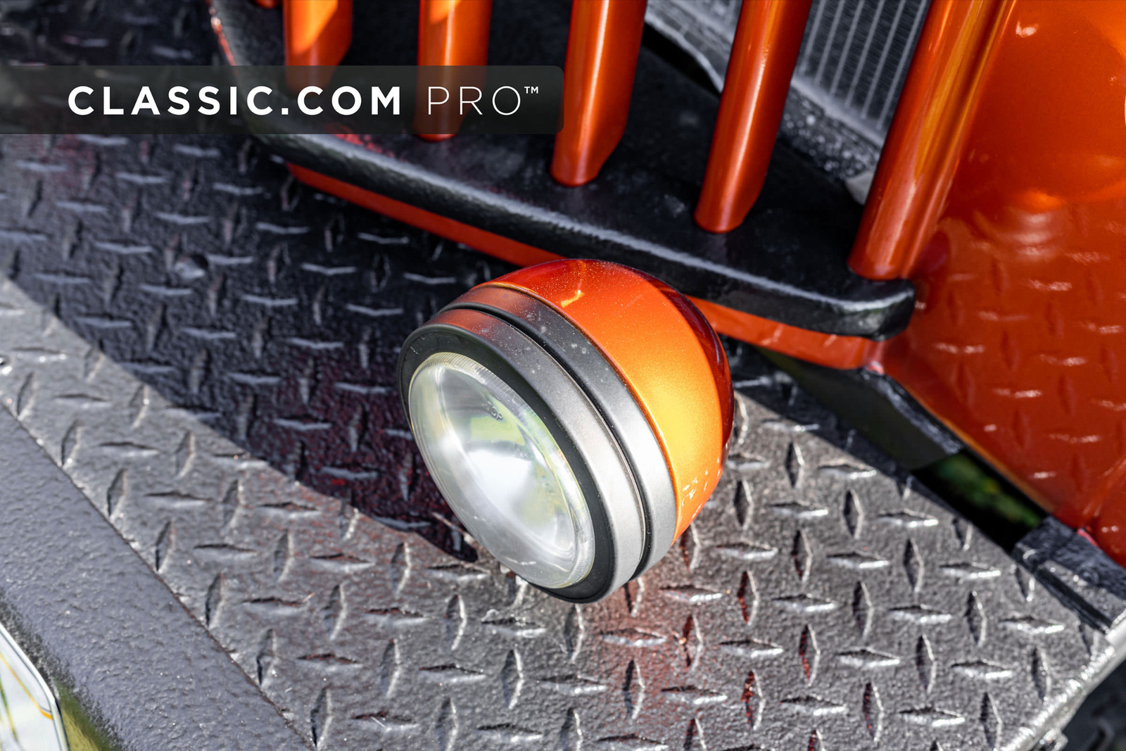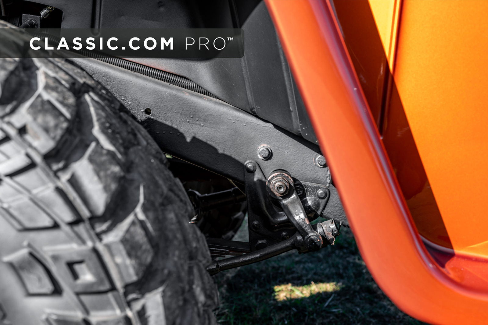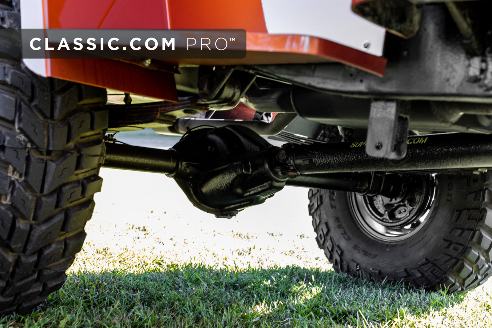 This 1962 Jeep Willys Pickup underwent a full restoration in 2016-2017 and shows just 2 miles on the new odometer (total mileage is unknown). The original straight-six cylinder engine has been replaced in favor of a powerful Chevy-sourced 350ci V8 matched to its original Borg-Warner T90 3-speed manual transmission. This capable and utilitarian Jeep has been modified significantly to modernize mechanical components and give it a unique but classic look. This example was repainted in burnt orange and is complemented by a custom black and orange leather interior with matching floor mats and headliner. The custom center console houses a newer Kenwood stereo head unit. Additional upgrades include new glass and seals, a new dual exhaust, and a suspension lift to accommodate 35 Mickey Thompson tires. The truck is located in Long Island, NY.