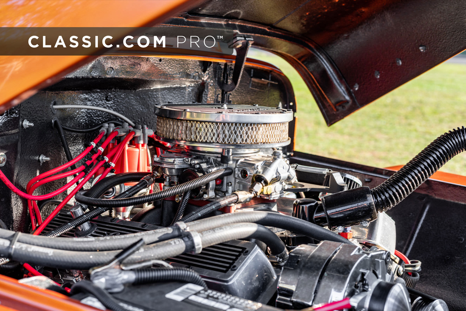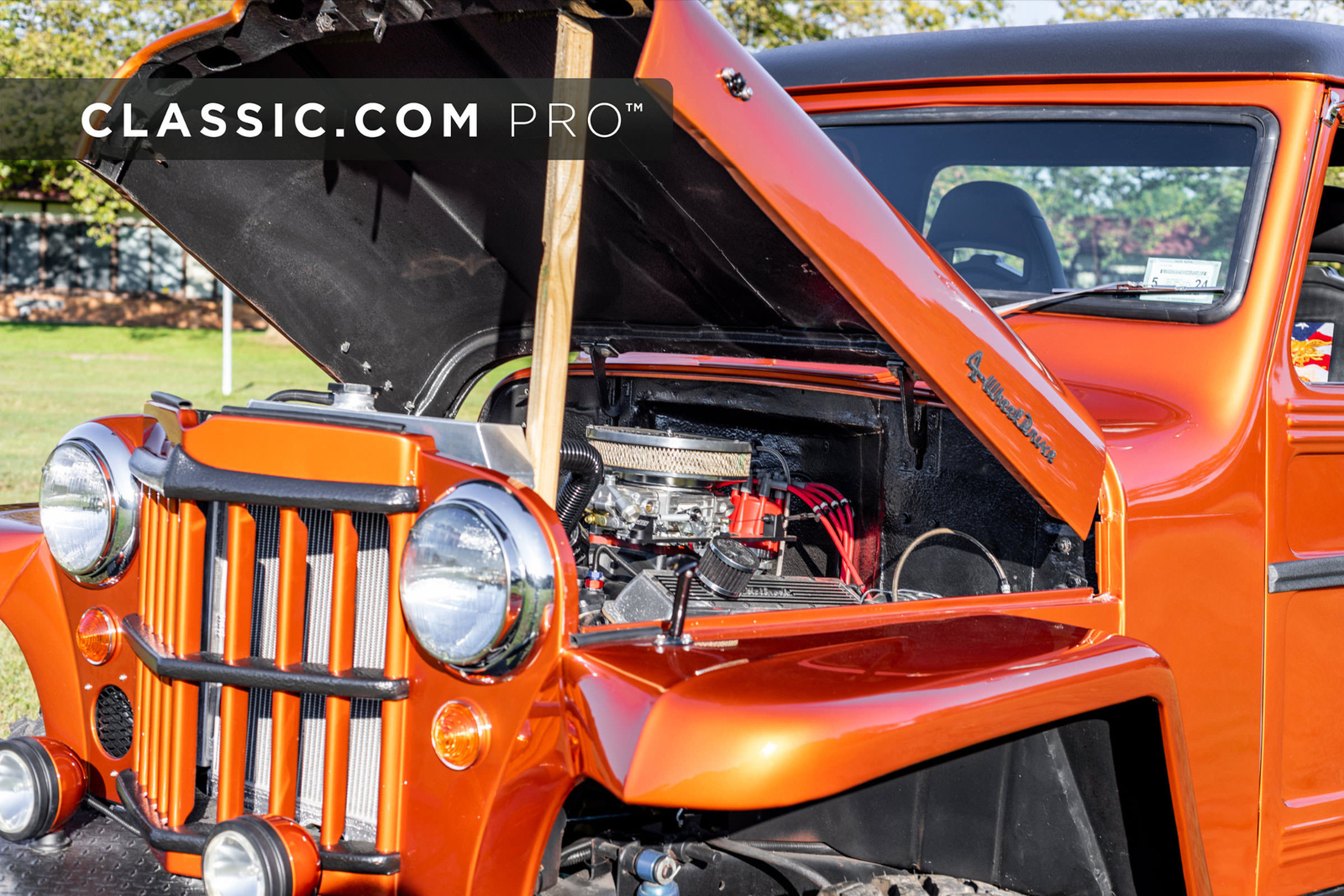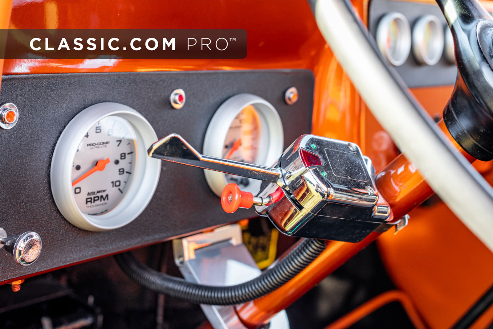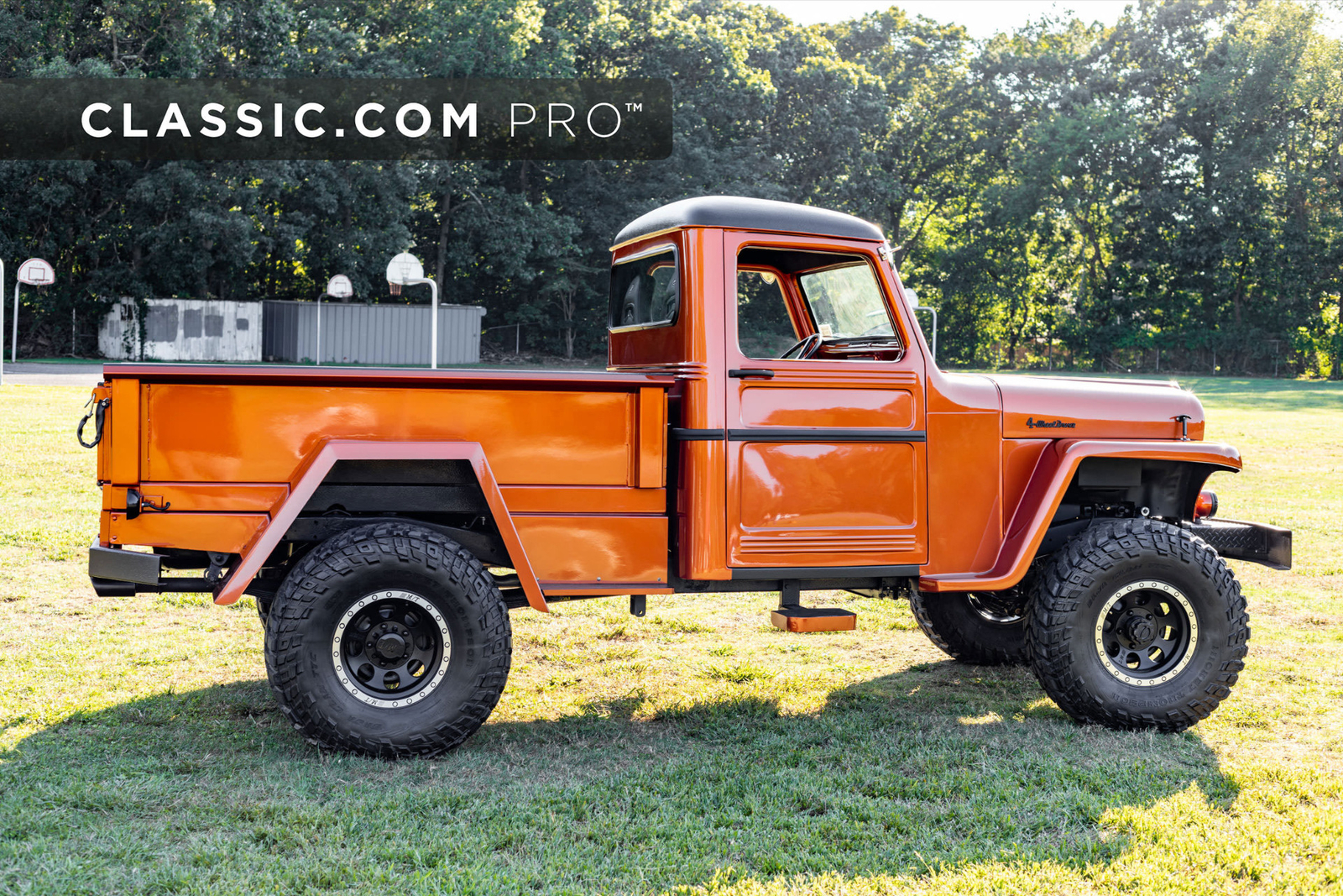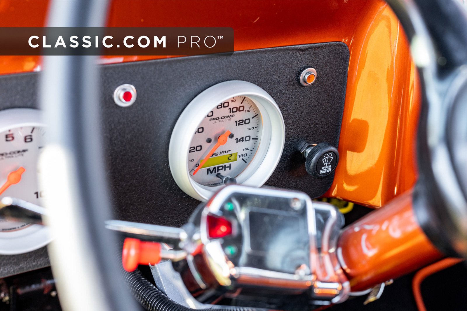 This 1962 Jeep Willys Pickup underwent a full restoration in 2016-2017 and shows just 2 miles on the new odometer (total mileage is unknown). The original straight-six cylinder engine has been replaced in favor of a powerful Chevy-sourced 350ci V8 matched to its original Borg-Warner T90 3-speed manual transmission. This capable and utilitarian Jeep has been modified significantly to modernize mechanical components and give it a unique but classic look. This example was repainted in burnt orange and is complemented by a custom black and orange leather interior with matching floor mats and headliner. The custom center console houses a newer Kenwood stereo head unit. Additional upgrades include new glass and seals, a new dual exhaust, and a suspension lift to accommodate 35 Mickey Thompson tires. The truck is located in Long Island, NY.