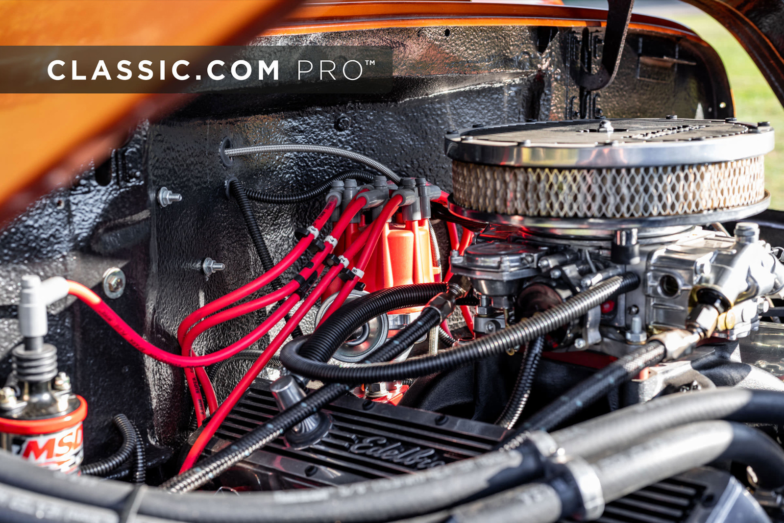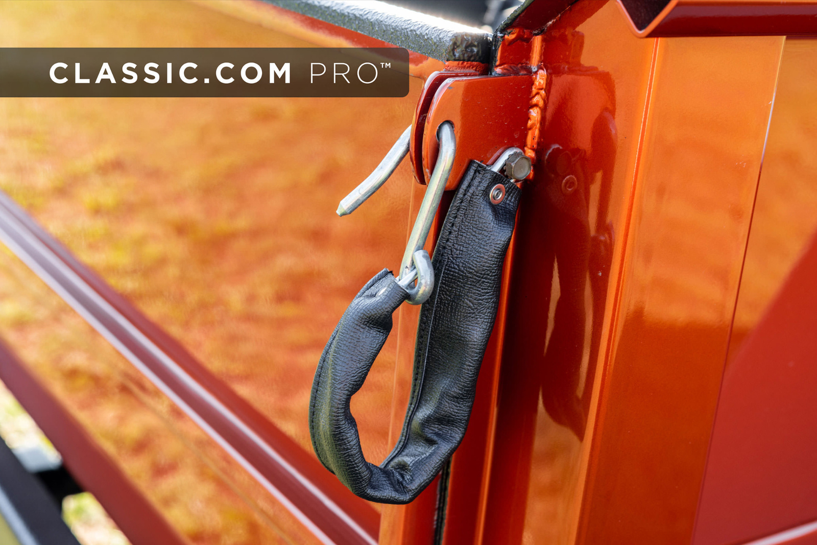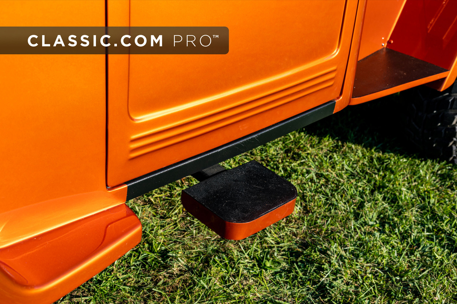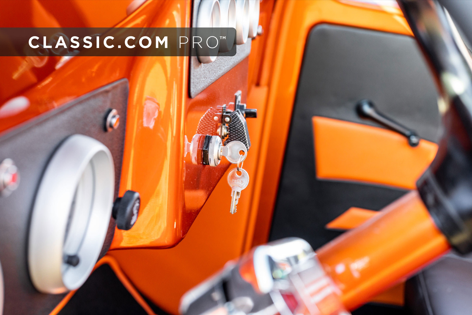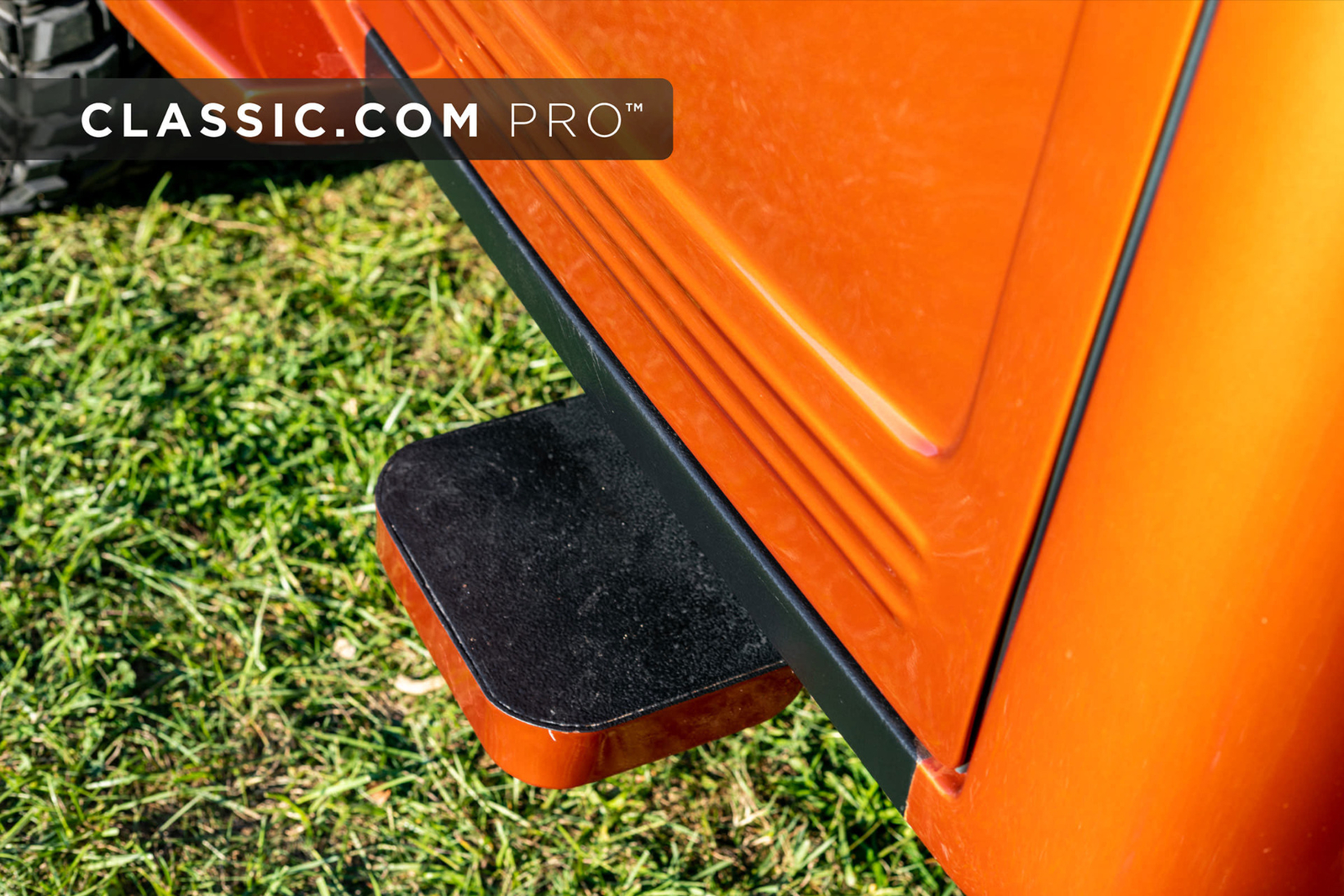This 1962 Jeep Willys Pickup underwent a full restoration in 2016-2017 and shows just 2 miles on the new odometer (total mileage is unknown). The original straight-six cylinder engine has been replaced in favor of a powerful Chevy-sourced 350ci V8 matched to its original Borg-Warner T90 3-speed manual transmission. This capable and utilitarian Jeep has been modified significantly to modernize mechanical components and give it a unique but classic look. This example was repainted in burnt orange and is complemented by a custom black and orange leather interior with matching floor mats and headliner. The custom center console houses a newer Kenwood stereo head unit. Additional upgrades include new glass and seals, a new dual exhaust, and a suspension lift to accommodate 35 Mickey Thompson tires. The truck is located in Long Island, NY.