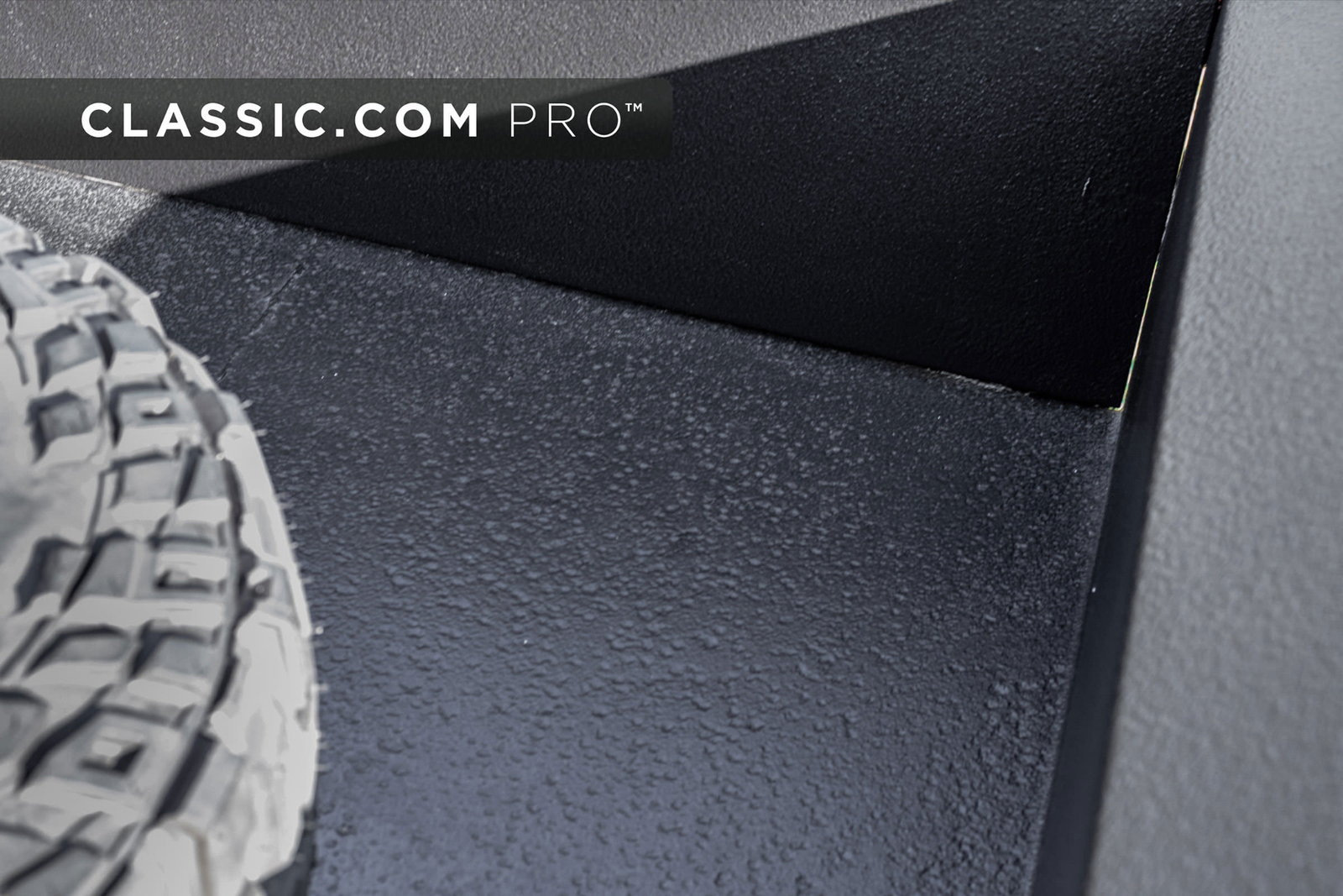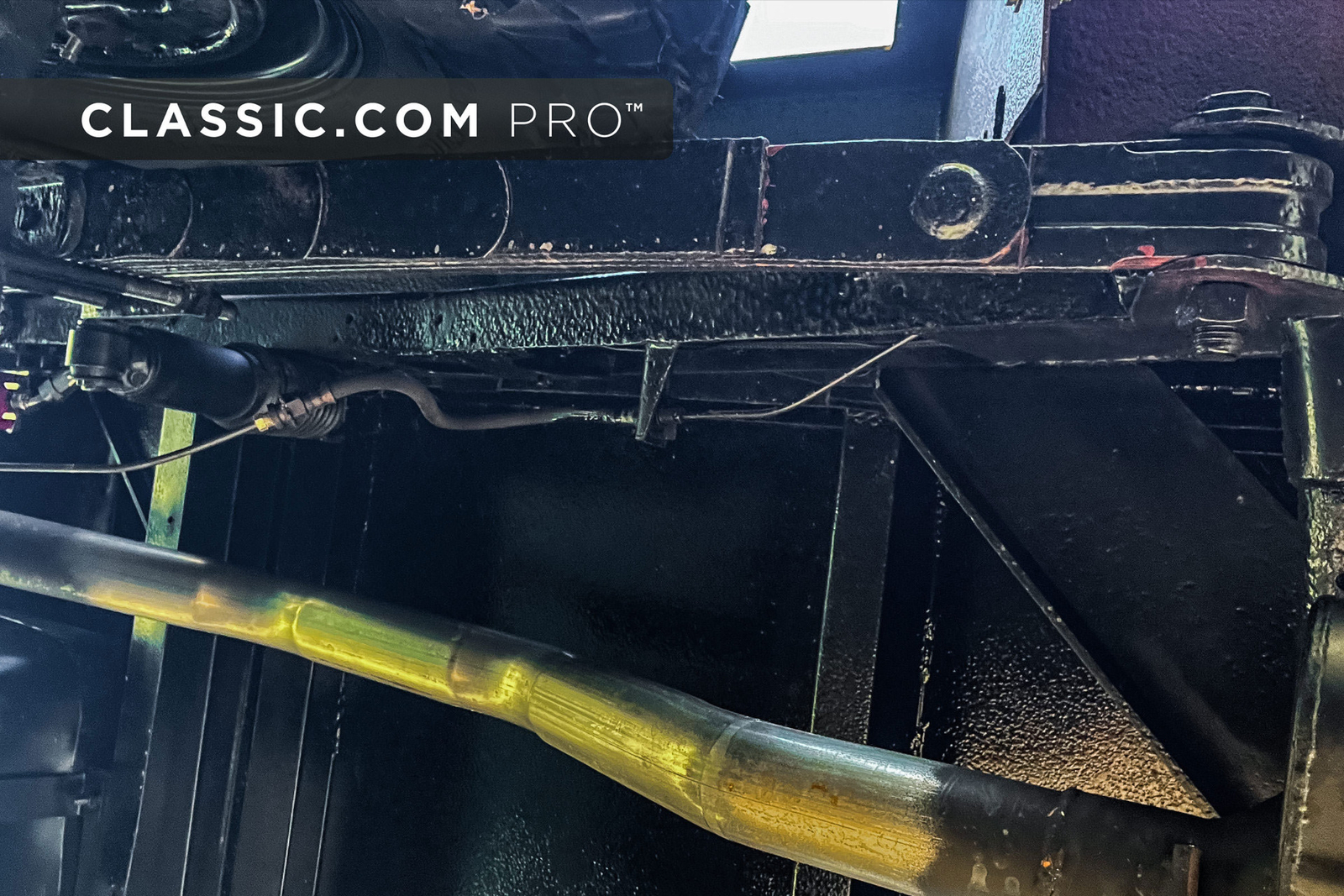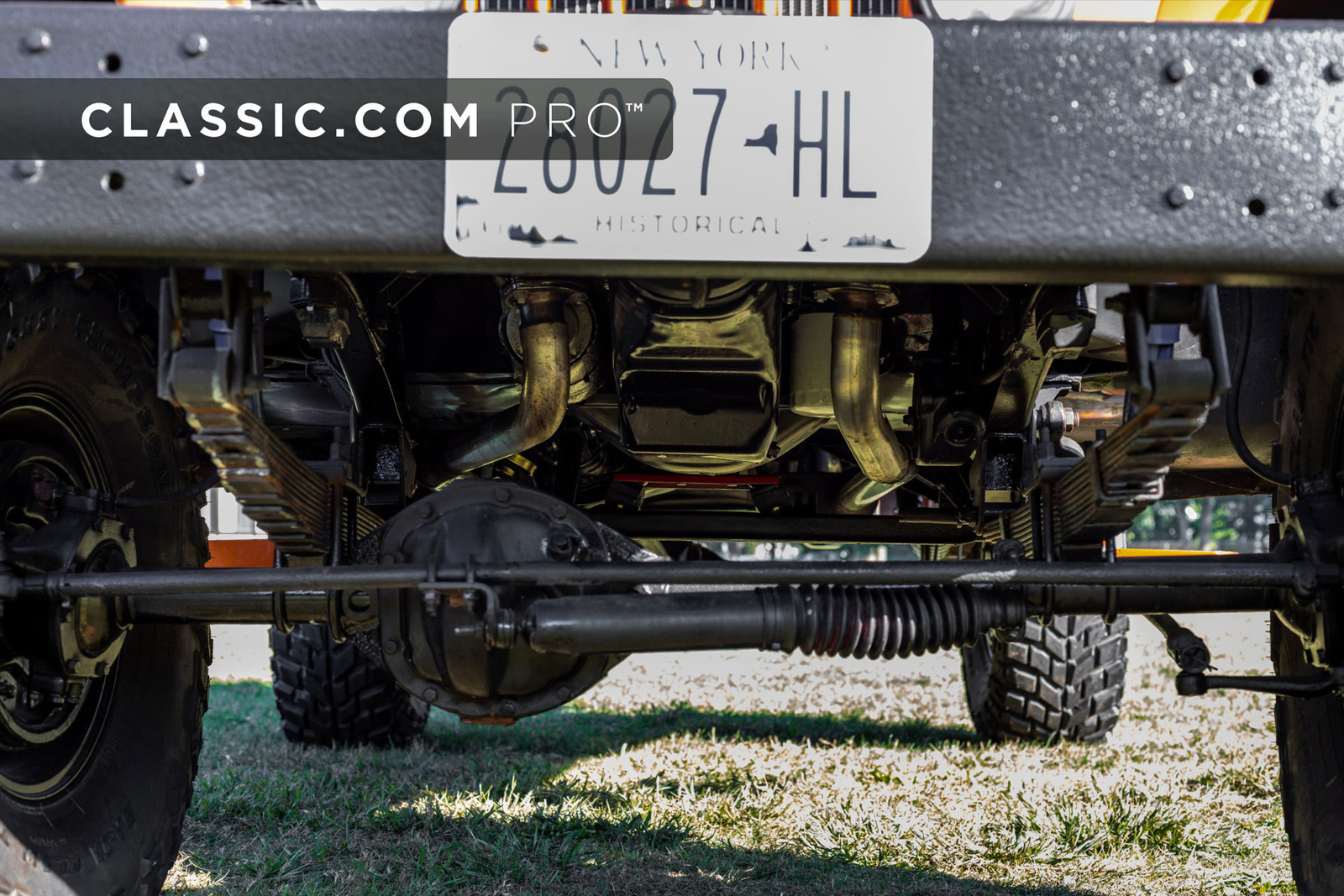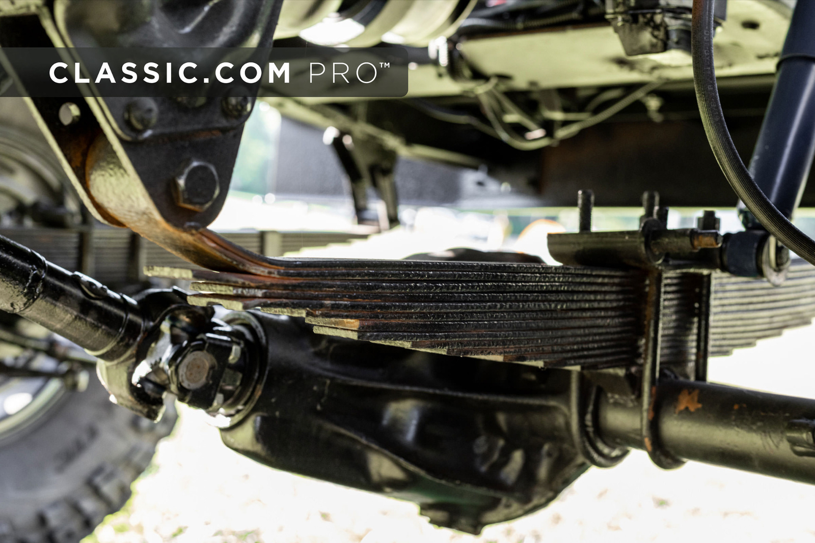 A third-party inspection and detailed photos show a restored and modified Jeep that has been well cared for and is ready for its next enthusiast. The exterior shows the recency of work, and the paint, bed, and tires all appear in like-new condition. On the inside, minimal wear is evident only in the original two-spoke steering wheel and missing rearview mirror. The leather, carpets, and headliner are all in new condition and free of stains or wear that might be expected on an older vehicle. A video from the inspection demonstrates the smooth-running V8 and there was nothing irregular noted about the mechanical performance of the Jeep. Included with the sale are two keys and owner receipts and notes throughout the restoration.