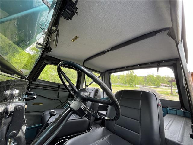 The interior has been adorned with sleek black vinyl upholstery, exuding a timeless elegance and comfort. Complementing the overall aesthetic, the 15" steel wheels add a touch of ruggedness, emphasizing the Jeep's heritage and durability. Completing the picture is a fold-flat windshield, allowing for an unobstructed view of the road ahead, inviting you to embrace the freedom and excitement that comes with driving this extraordinary vehicle.