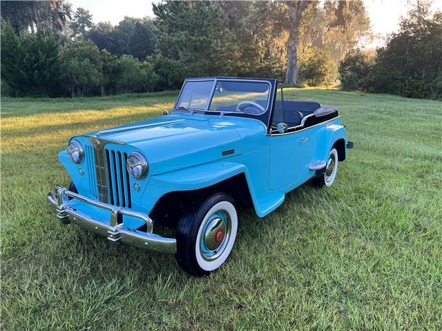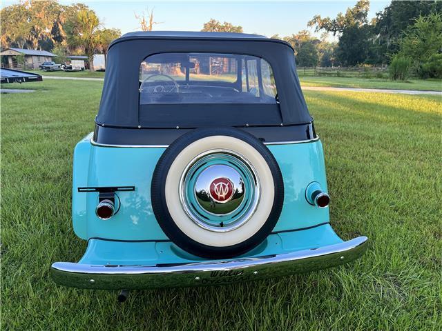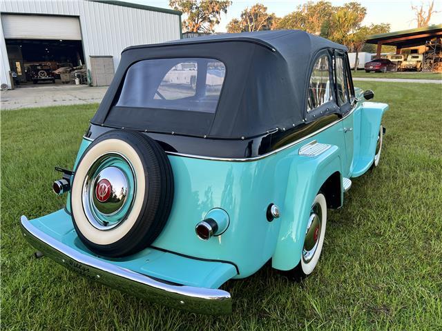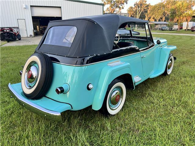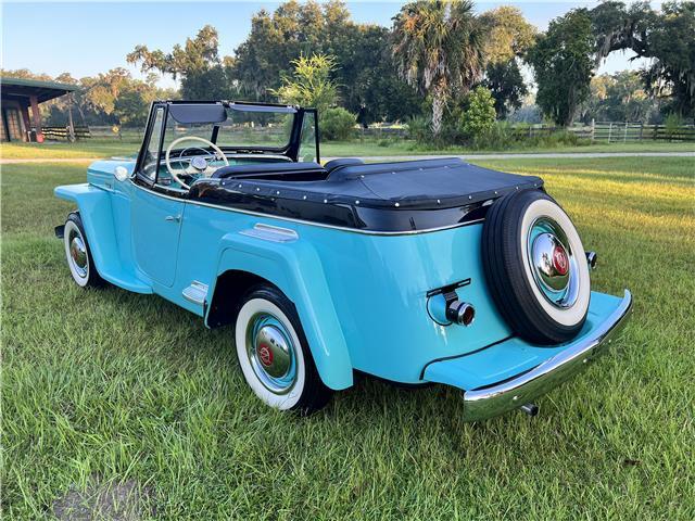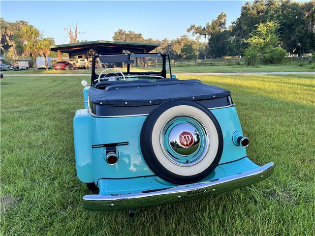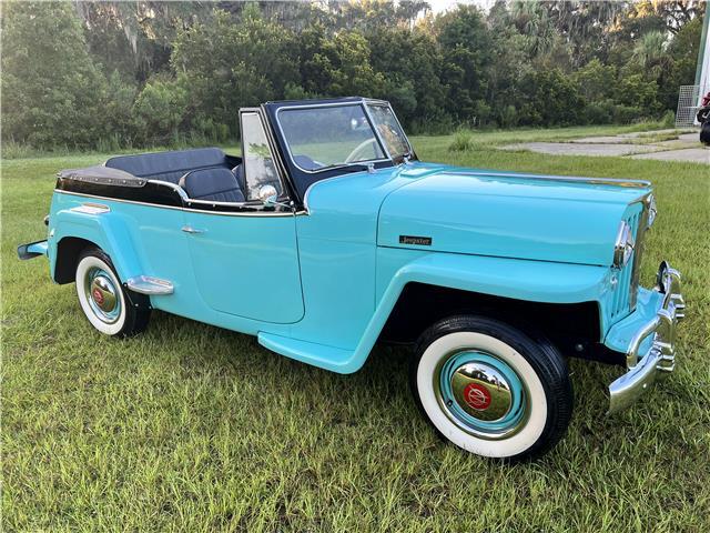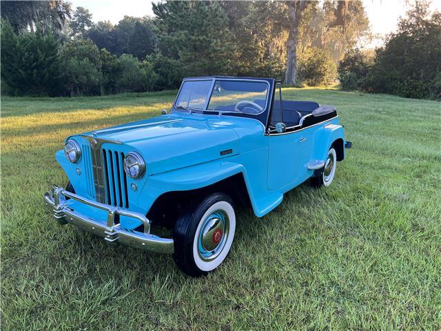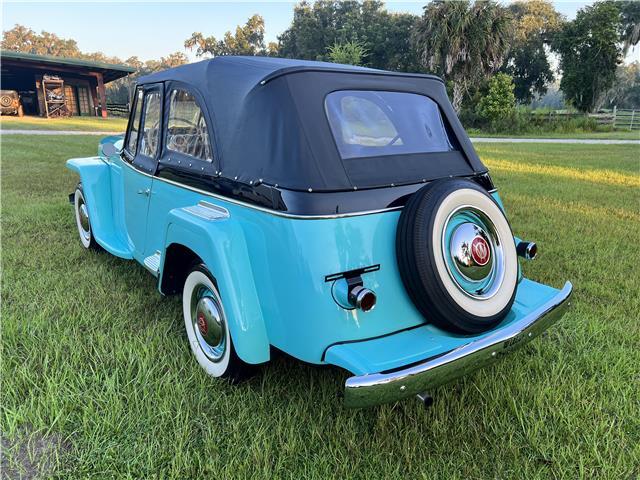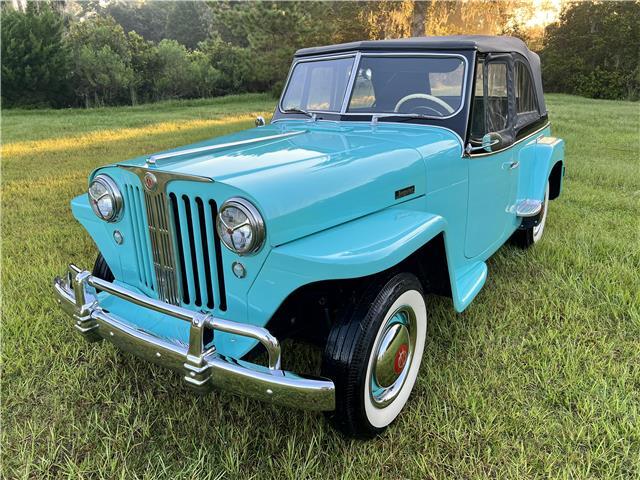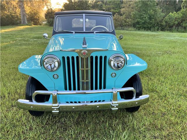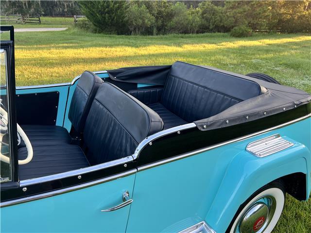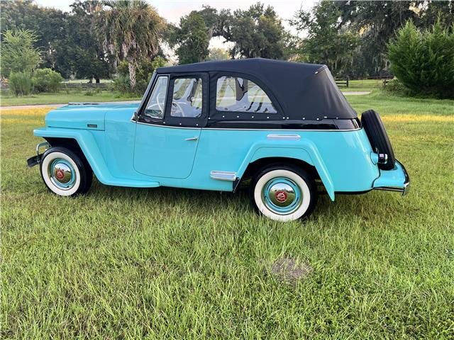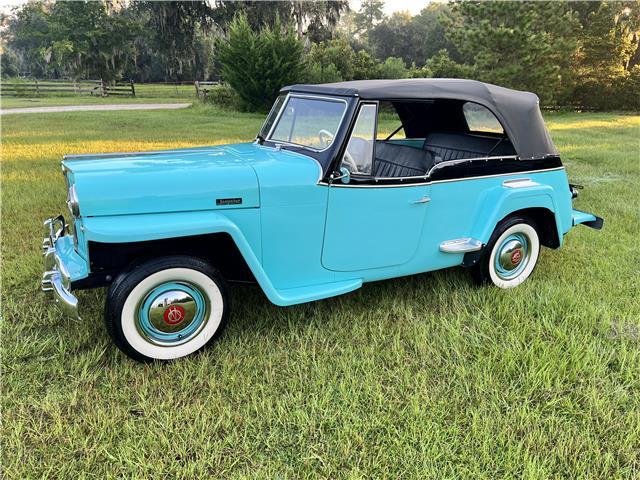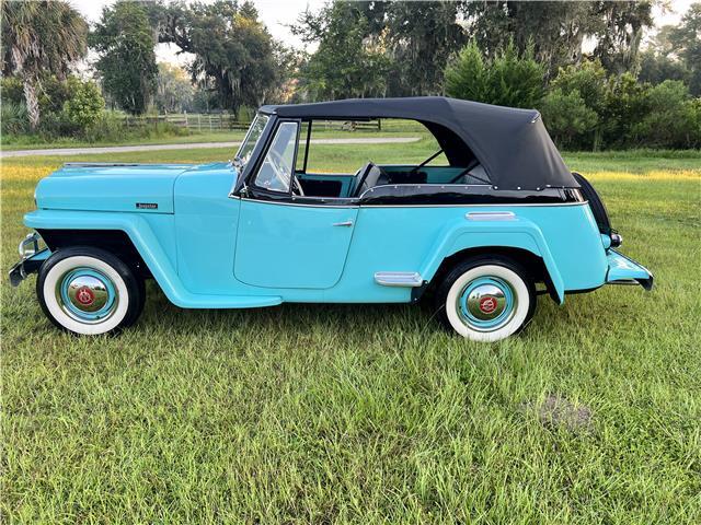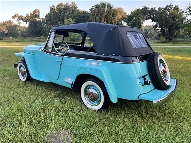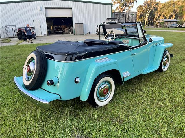 This was the 56th Jeepster restored, by Jeepster Jim and no expense was spared in this Concours quality frame-off restoration. The interior and top is new, , as well as the top boot and side curtains. The gauges have been restored and calibrated. The entire car was stripped to bare metal and undercoated. The body has 3 coats of primer, then 2 coats of Dupont base coat, and 3 coats of high-quality Dupont clear coat that was cut and buffed between coats. The frame is all undercoated. The L-134 engine was blueprinted and balanced, and the original 3 speed, with overdrive, was completely rebuilt. Nothing was compromised during this restoration, right down to every nut and bolt. It has new Coker tires, new hub caps, beauty rings, and wheel cylinders, master cylinder, brake lines, shocks, battery, fuel pump, clutch, pressure plate, plugs and wires, main bearings, rebuilt crank, rod bearings, pistons, rings, cam, valves, guides, valve seals, gaskets and seals, and all-new exhaust. It runs great. All the chrome is show quality and complete. The steering wheel is new, as well as all of the glass and rubber. The wiring is completely new and color-coded to factory specs. List of Awards: