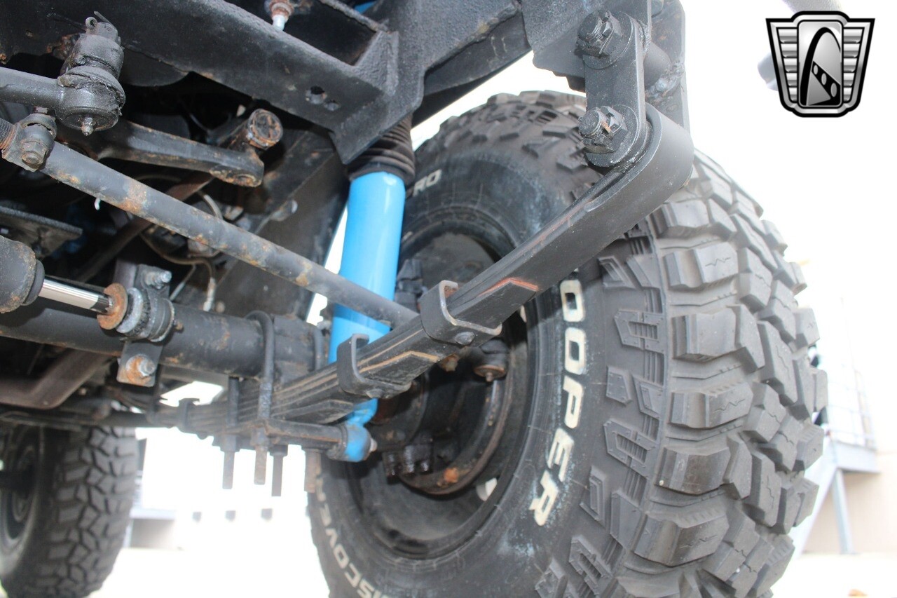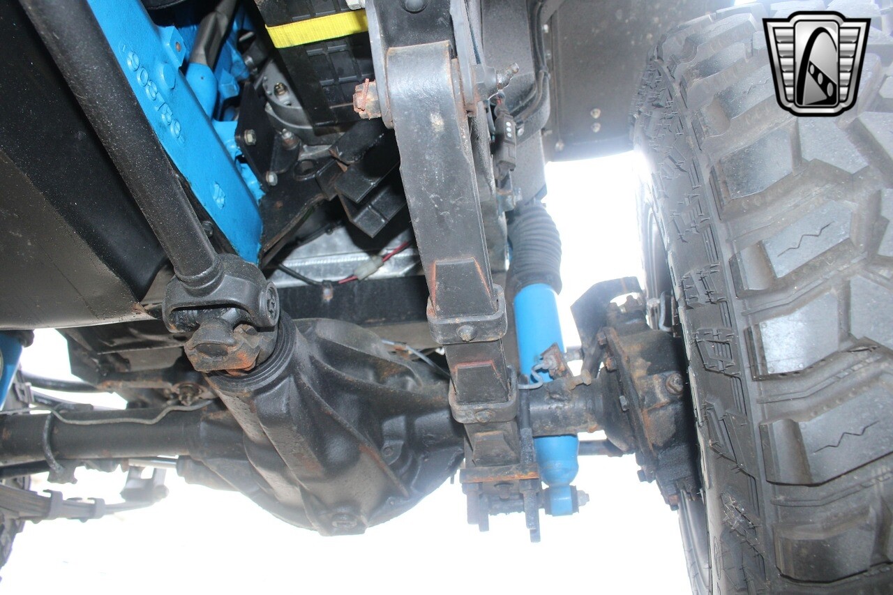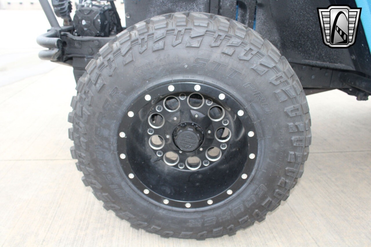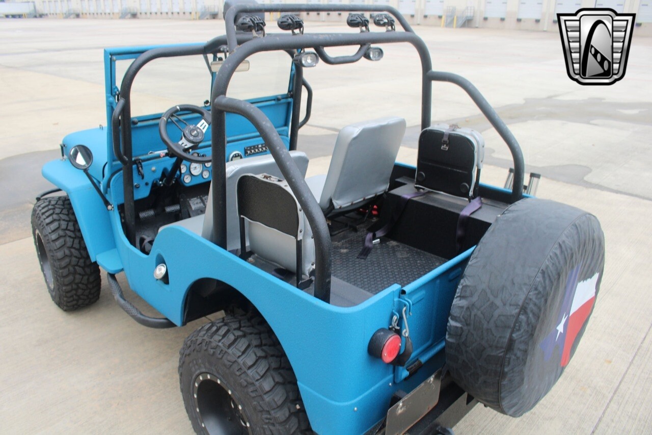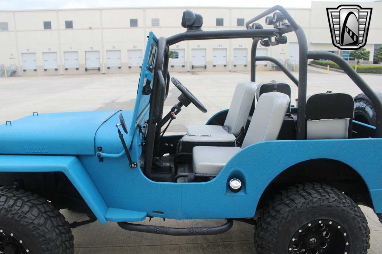 Gateway Classic Houston Showroom is excited to present this vintage 1948 Willys Jeep for sale. This off-road machine has been restored from its original U.S. Army green to an attractive blue and black color scheme, right down to the shock absorbers and engine color. Virtually every surface has been refinished using a bedliner-style paint treatment, making it a very functional offroading machine. Under the hood is what may be its original inline 4-cylinder flathead engine, which is backed by a 3-speed manual transmission. This spunky little Jeep is billy goat tough, and has been made tougher by the addition of the roll cage, rock siders, big Cooper Discoverer offroad radials, and a SmttyBuilt X20 winch (with wireless control capability). Further enhancements include the blacked-out aluminum Fuel wheels, complete LED lighting upgrade (including headlights and rollbar mounted offroad lighting), a Kicker marine sound system, silver synthetic leather seating surfaces, and custom center console. [ omitted ].