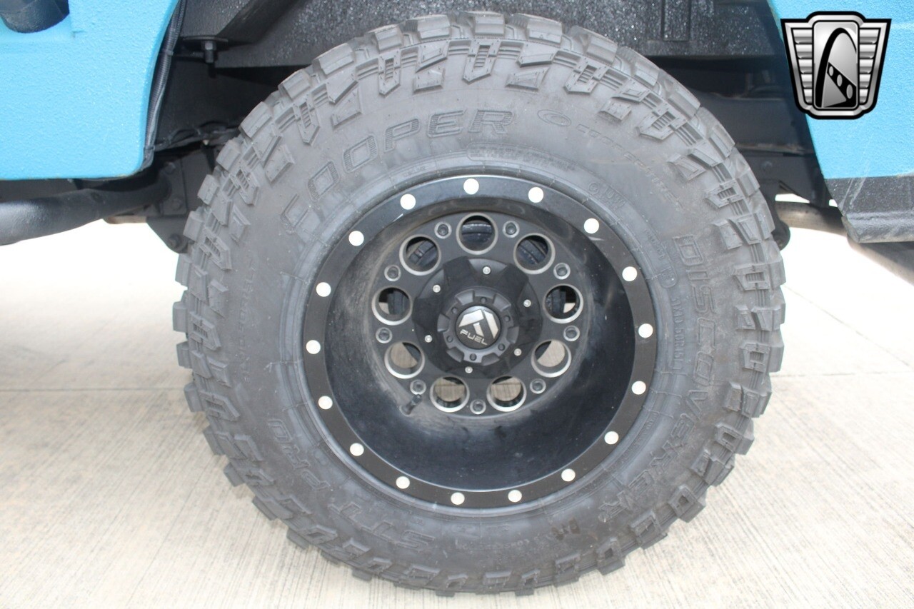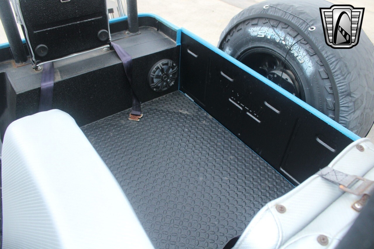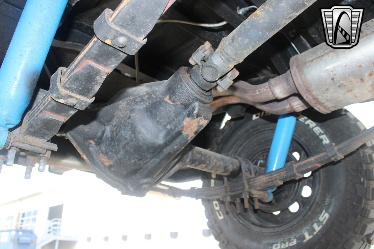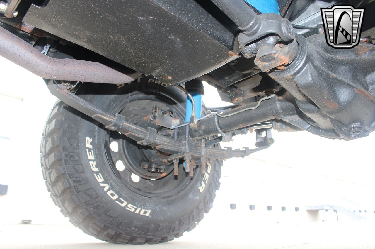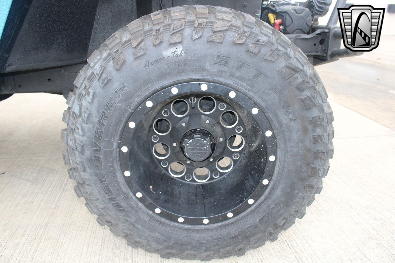 Gateway Classic Houston Showroom is excited to present this vintage 1948 Willys Jeep for sale. This off-road machine has been restored from its original U.S. Army green to an attractive blue and black color scheme, right down to the shock absorbers and engine color. Virtually every surface has been refinished using a bedliner-style paint treatment, making it a very functional offroading machine. Under the hood is what may be its original inline 4-cylinder flathead engine, which is backed by a 3-speed manual transmission. This spunky little Jeep is billy goat tough, and has been made tougher by the addition of the roll cage, rock siders, big Cooper Discoverer offroad radials, and a SmttyBuilt X20 winch (with wireless control capability). Further enhancements include the blacked-out aluminum Fuel wheels, complete LED lighting upgrade (including headlights and rollbar mounted offroad lighting), a Kicker marine sound system, silver synthetic leather seating surfaces, and custom center console. [ omitted ].