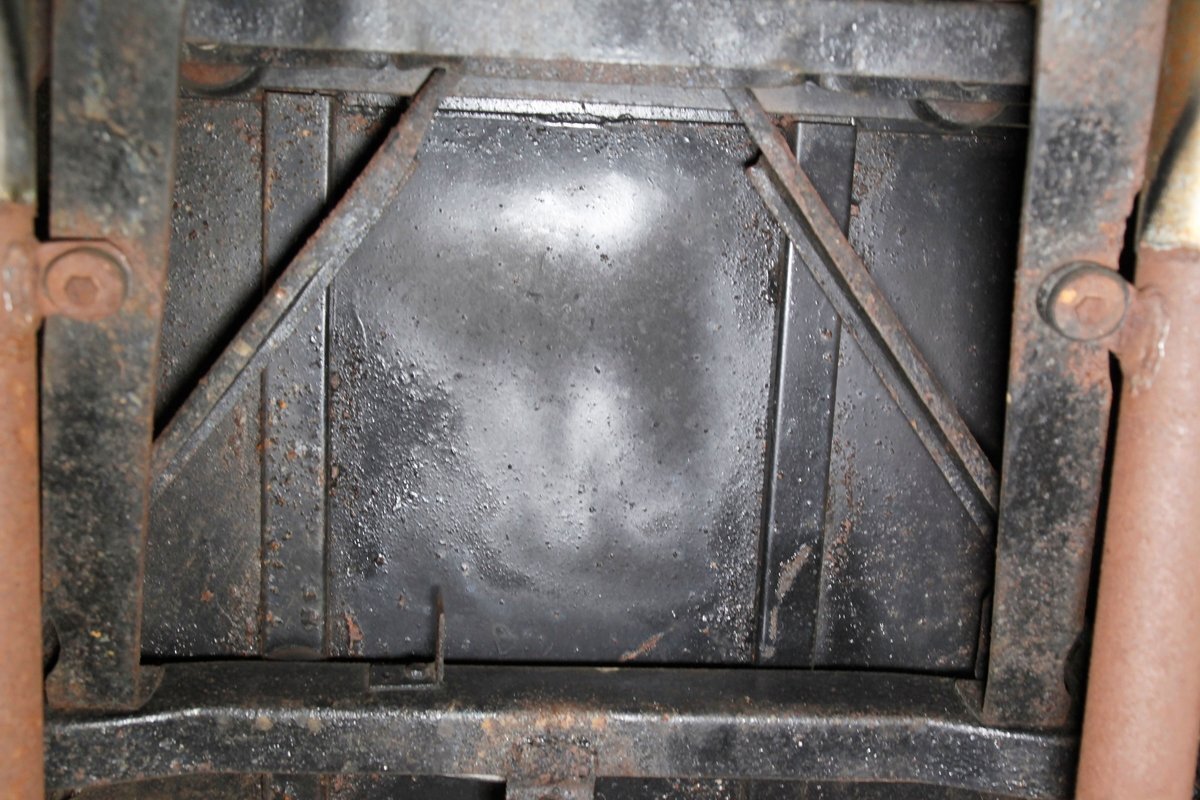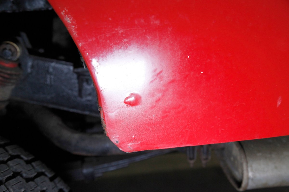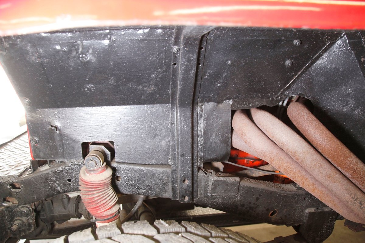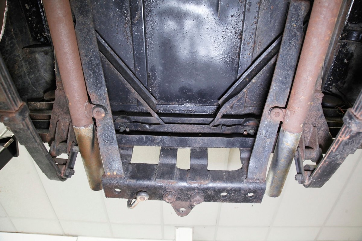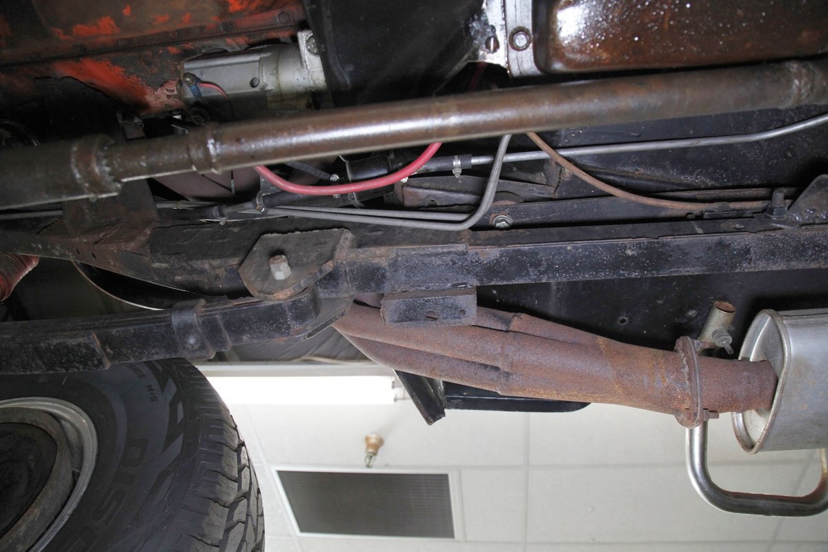 Plenty of heavy surface rust, and some invasive rust has taken over parts of the undercarriage. Thankfully the worst has been tended to, that being the inner wheelhouse which is showing a welded in repair plate. The floor pans have been painted black and are now peeling in areas. Surface rusted leaf spring suspension is all around as are drum brakes which are not working.