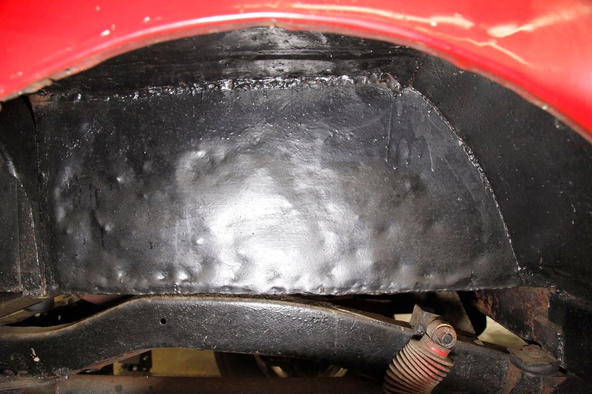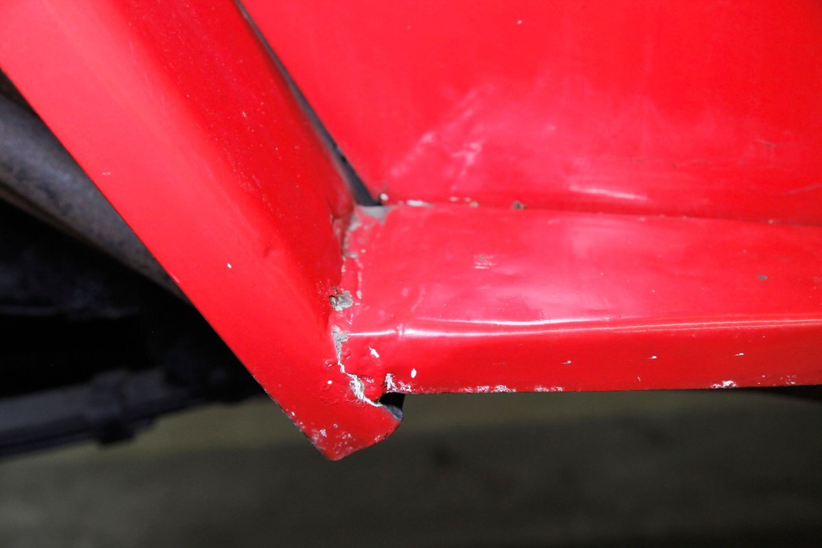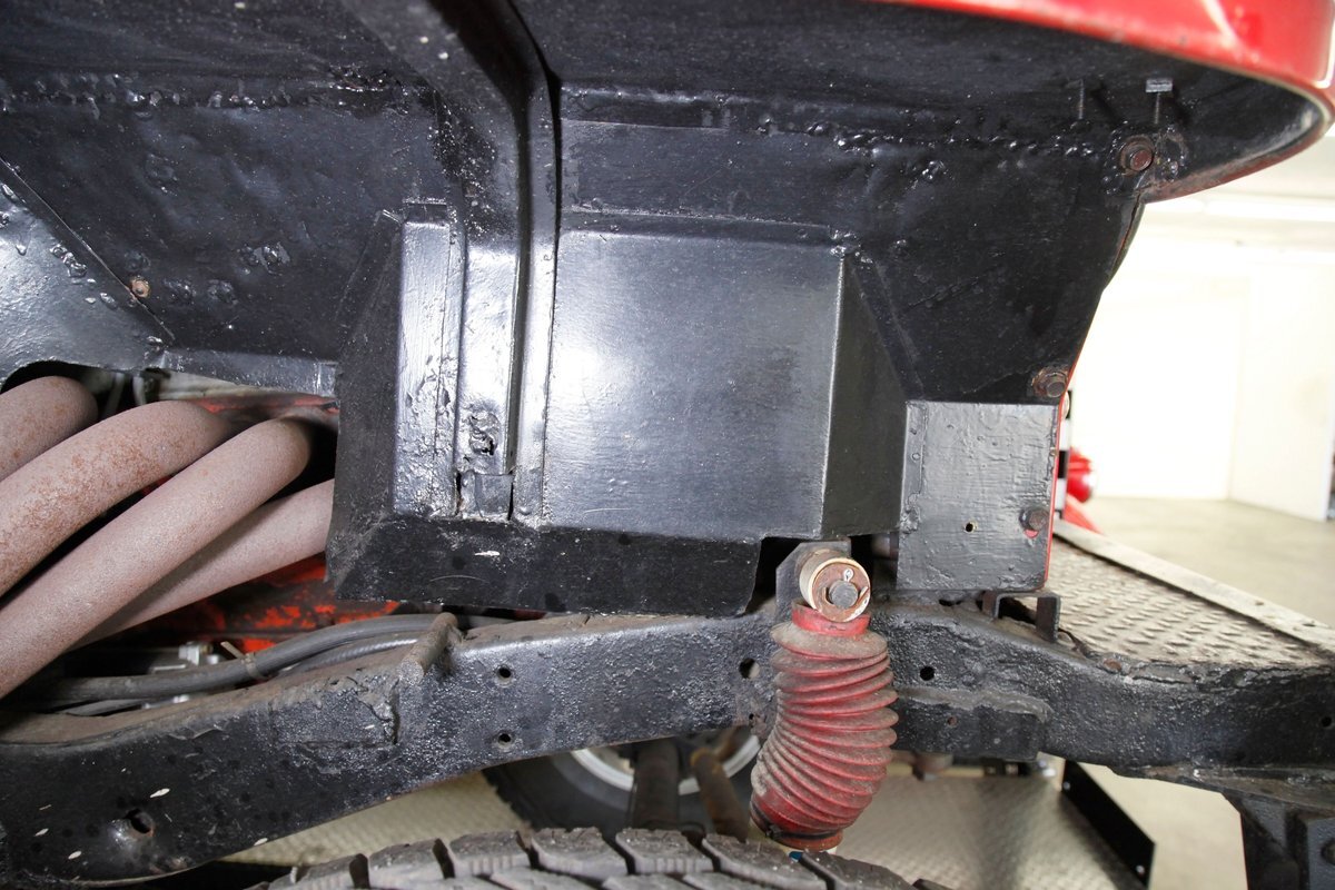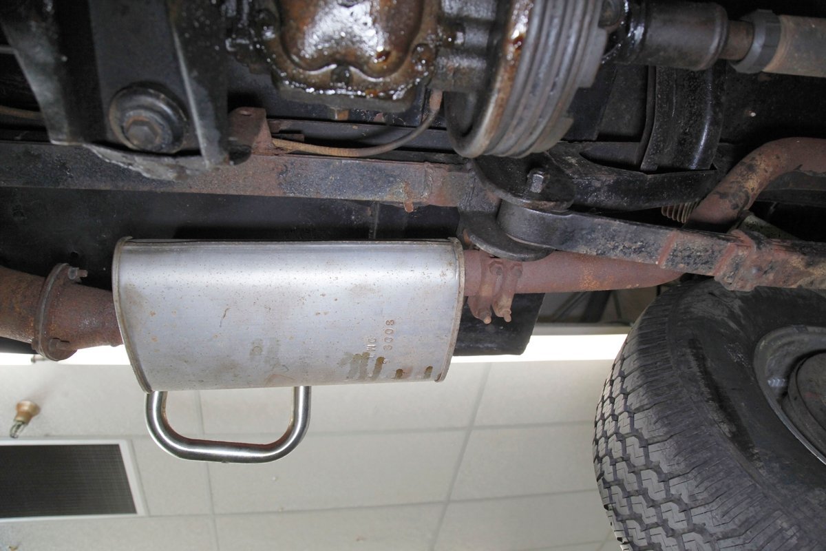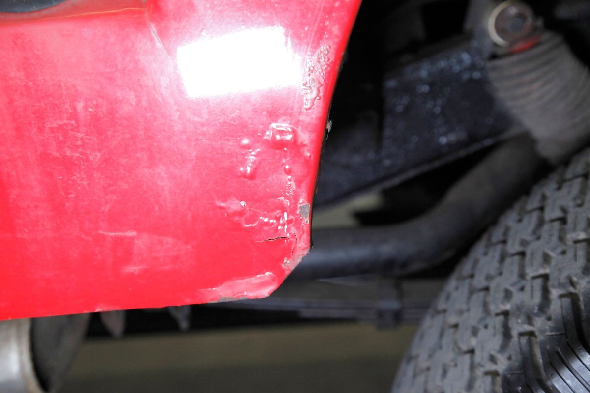 Plenty of heavy surface rust, and some invasive rust has taken over parts of the undercarriage. Thankfully the worst has been tended to, that being the inner wheelhouse which is showing a welded in repair plate. The floor pans have been painted black and are now peeling in areas. Surface rusted leaf spring suspension is all around as are drum brakes which are not working.