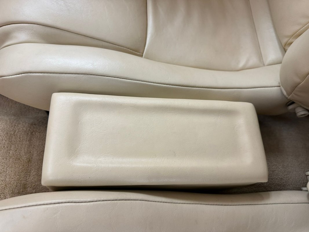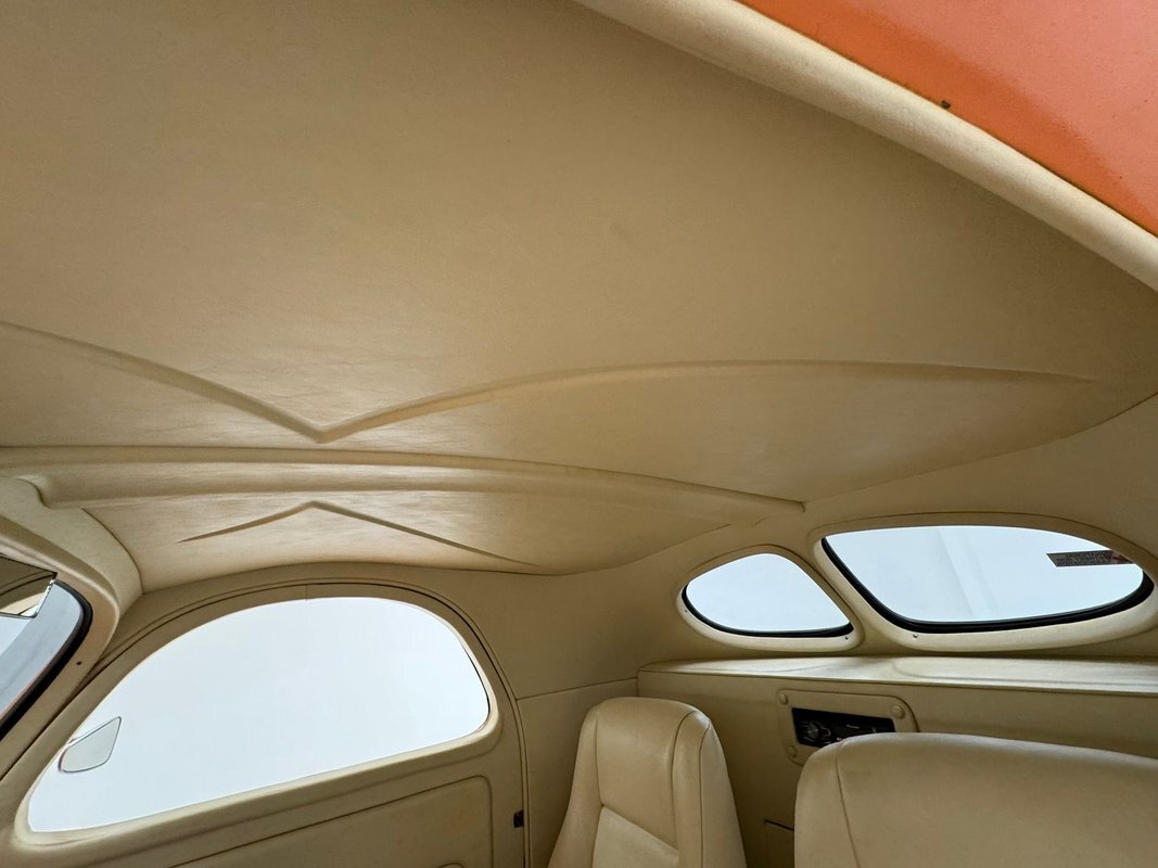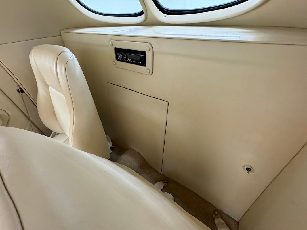 The sharp angles of the exterior graphics are mirrored in the sculpted khaki leather of the door panels. More billet here too as the actuator matches the mirrors. Modern bucket leather seats look right at home and blend with the surroundings of khaki on the doors, walls, and trim on the carpet mats. A billet winged steering wheel picks up the color and is mounted to a polished tilt column. The dash is flat, and body colored and houses VDO gauges and indicator lights in clean and neat formation. The automatic shifter is floor mounted, part billet, and tucked in a leather shift boot. The back panel supports a rear shelf and houses the radio, an AM/FM/CD Pioneer head unit. The low pile tan carpet is perfect, and the headliner shadows the outside graphics with more V-shaped texturing in the leather. The trunk is perfectly finished with tan carpet and leather covered wheel wells and storage box.