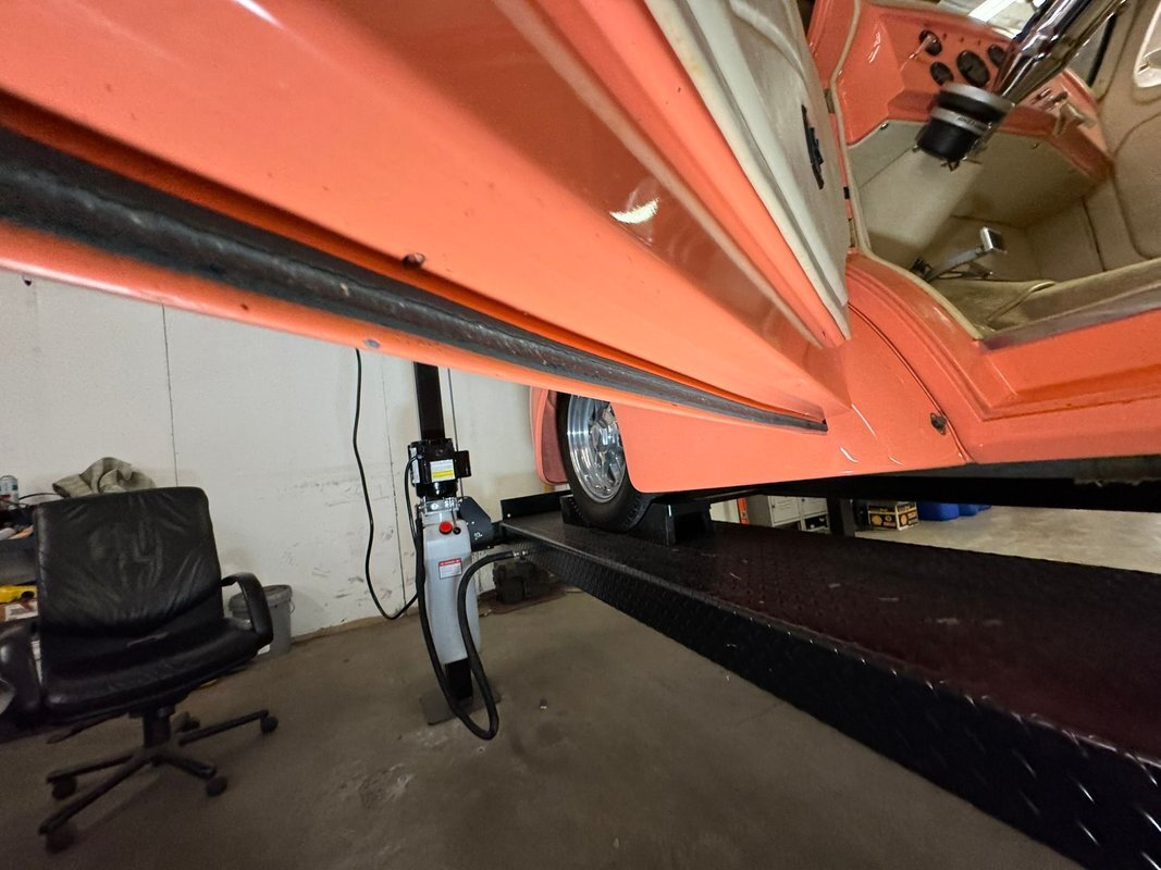 The interior is a very nice place to be, cozy and confined like a well appointed submarine. The rear Willys windows are somewhat limiting for visibility, but are so epic we're willing to get used to it! Meanwhile, the car starts up and sounds amazing and we take this big tired coupe onto the test loop where it performs well and we check all the boxes for functionality. And with the huge trunk, we wouldn't mind taking this over to Lowes to load some things, but instead we head back into the garage.