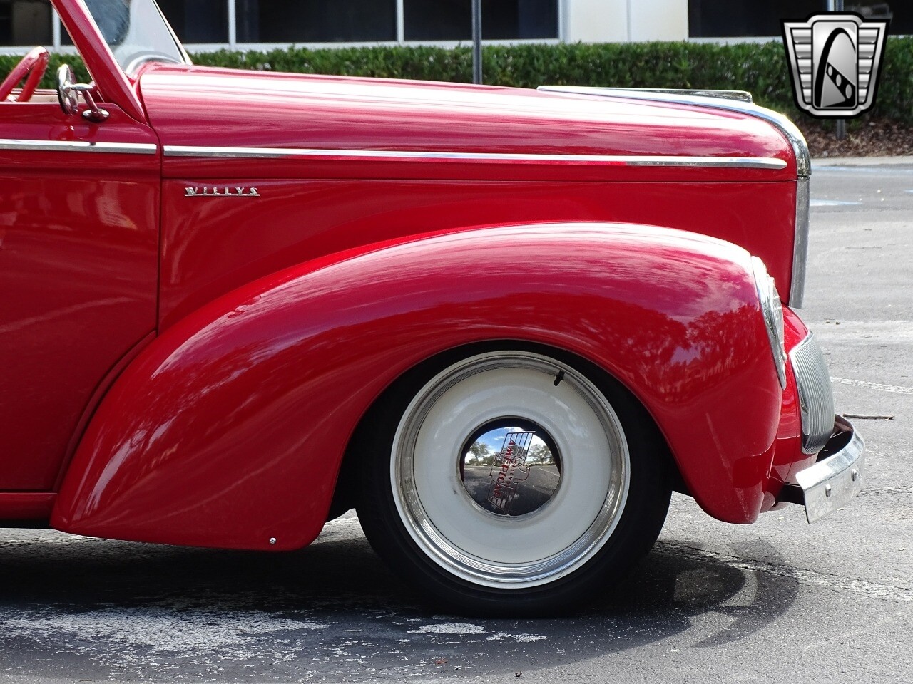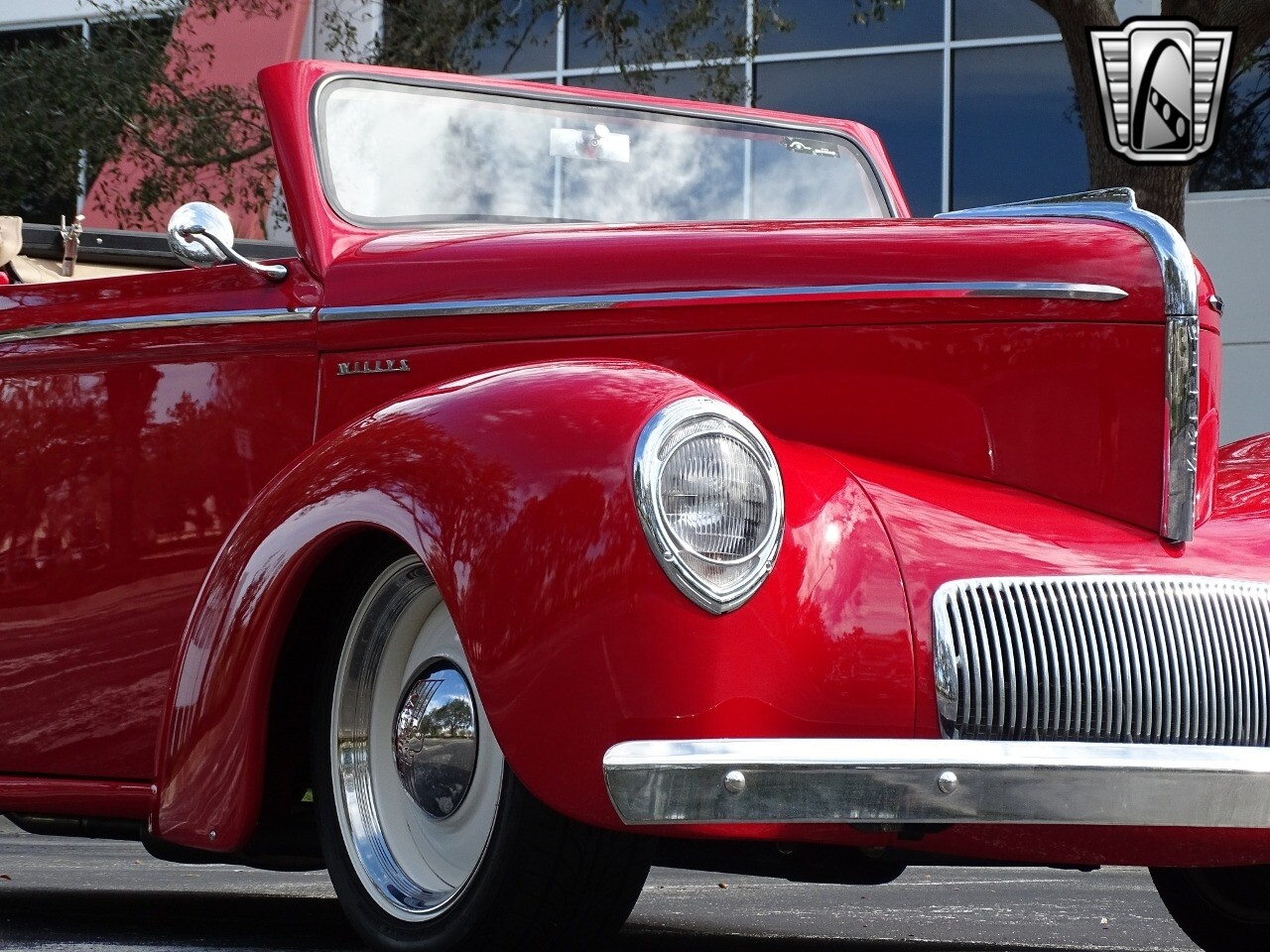 Gateway Classic Cars of Orlando is proud to present this 1941 Willys Roadster. Of all the prewar classics none have the exclusivity of a nice Willys. This 41 Roadster is painted in an eye catching red. As you walk around the vehicle you'll notice nice details like the fender mounted headlamps and large dish wheels with Willys hub caps. Take a seat inside and you're greeted by tan leather bucket seats and a dash and steering wheel painted to match the exterior. When the weather gets chilly fold up the tan cloth top. Under the hood is a 350 cubic inch V8 and is paired to a 3 speed automatic. Imagine how this Willys can get up and go! According to the owner this Willys was built from all new parts in 2010. If you're looking for a hard to find classic American automobile this is the one you want to own! Options include AM/FM radio, manual soft top, hub caps, power brakes, power windows, tilt wheel, seat belts, leather interior and radial tires..