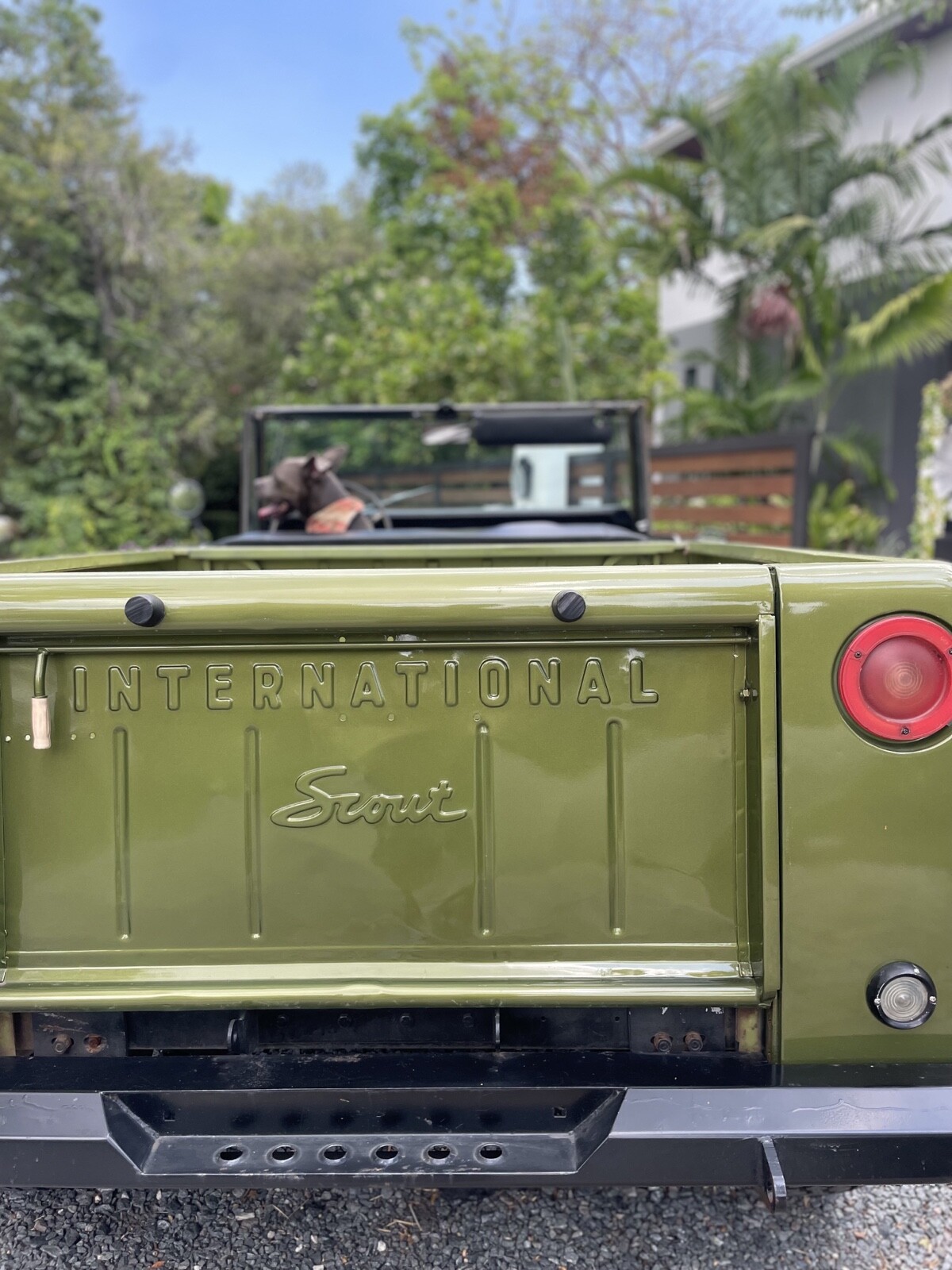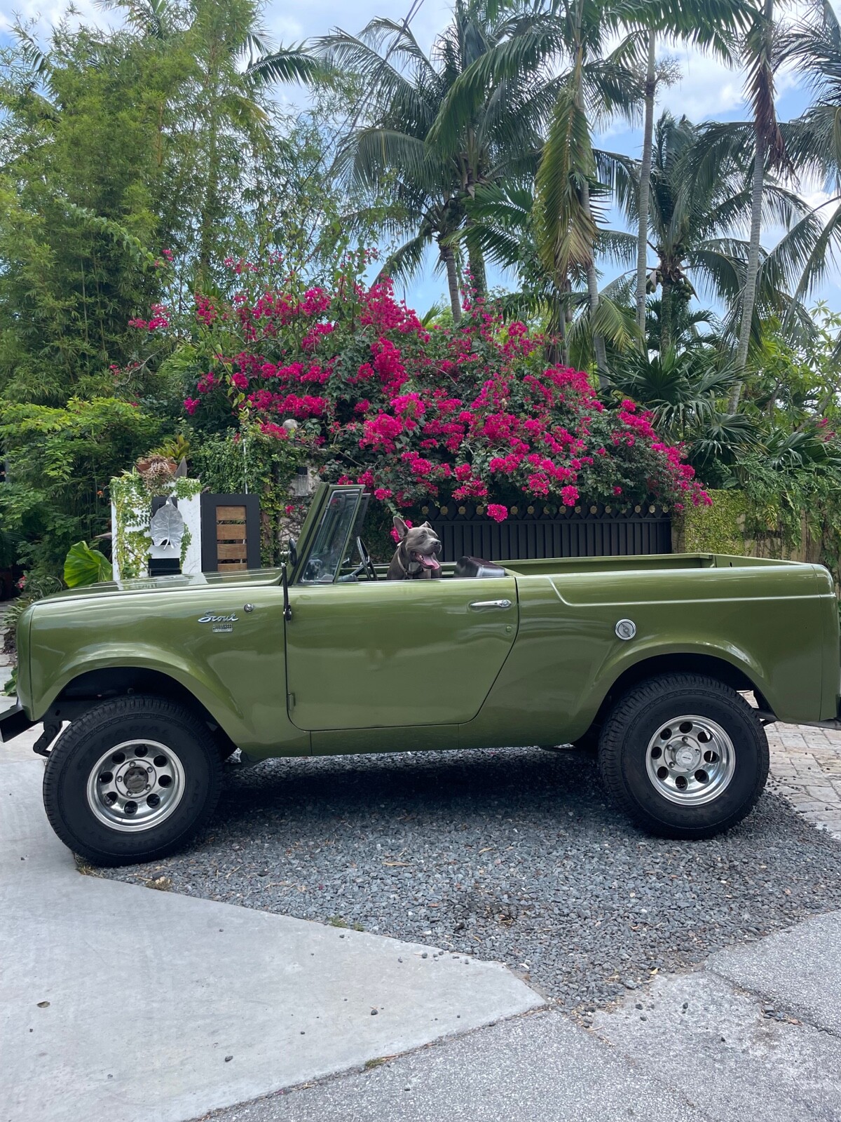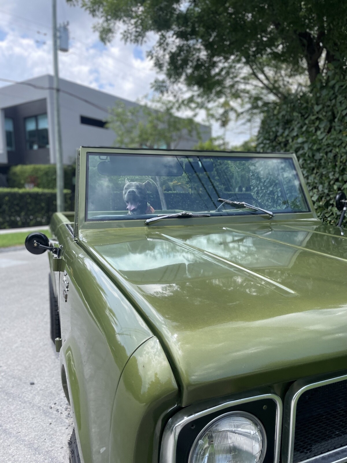 1969 International Scout. 196 4 cyl with manual transmission and 4WD. 2 inch lift with nice cragars and new tires. Super clean frame. Paint job was done by the previous owner. I’d give it 8/10. Runs, drivers, stops, all lights work as well as wipers. I have the pickup style cab over only top in white but I never put it on. I’ll throw in a soft top to whoever pays full asking price in your choice of black or brown. This truck gets lots of attention. Cruise around as-is or upgrade to an LS swap and add a 4 link suspension. Serious offers only please. I’m not letting it go cheap. Dog not included
