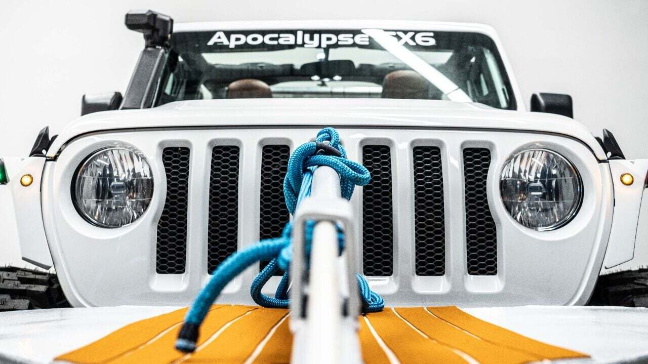 Half Truck - Half Boat - All Functional on Land and Sea The SS Apocalypse Boat Truck - Yes you heard that right. Apocalypse takes its patented tandem axle technology and instead of hooking up an additional drive shaft to power a rear axle it utilizes a propeller. This takes this Jeep Gladiator 4x4 to another level - go 100 miles an hour on land and 14 knots on sea. YEAR: 2023 TOP: Hardtop COLOR: High Gloss White with Deep Blue Sea Armor Coating on Pontoons TRIM: Joe's Custom Garage Build LIFT: 4” TIRES: 43” Mickey Thompsons RIMS: 20 Bronze APOC GRILL: Custom Boat Front with Anchor SIDESTEPS: Pontoon Sidesteps with Floor Griping Vinyl SPECIAL FEATURES: Aluminum Rollcage, Propane Cooking Grill WEATHERPROOF INTERIOR: Cowboy Saddle WHAT MAKES THIS TRUCK SPECIAL: The world's first ever Jeep Gladiator transformed into a 4x4 on land and cruising vessel on sea. CALL US OR COME SEE THESE CUSTOM TRUCKS IN PERSON Location 1: 1430 W Broward, BLVD Fort Lauderdale, FL 33312 855-873-7632 Location 2: 2720 Okeechobee BLVD West Palm Beach, FL 33406 855-873-7632 NEW E-PURCHASE SYSTEM - Customers never have to leave the comfort of their home couch to purchase a SoFlo Jeeps or Apocalypse 6x6 truck. We offer online payment, financing and video walkarounds. We ship our trucks worldwide to any and every location. Have a trade-in? Not a problem at all, as WE ACCEPT TRADE-INS NATIONWIDE AND YOU NEVER PAY TO SHIP IT. We make buying and receiving your dream truck beyond simple.