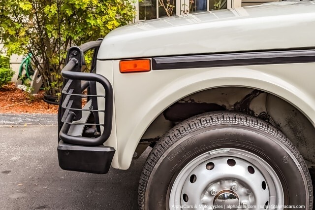 This 1991 Lada Niva is in absolutely stunning condition, both inside and out. The exterior is rugged and tough, with some great accessories that complement its 4x4 nature. The interior is equally fantastic, with all panels, seats, and consoles in excellent condition. There is minimal to no wear shown on any of the surfaces. The controls, switches, and dials all work just as designed.
