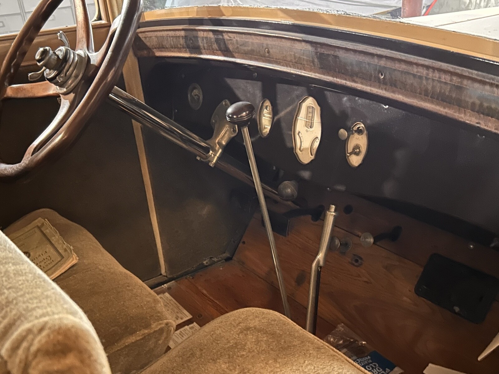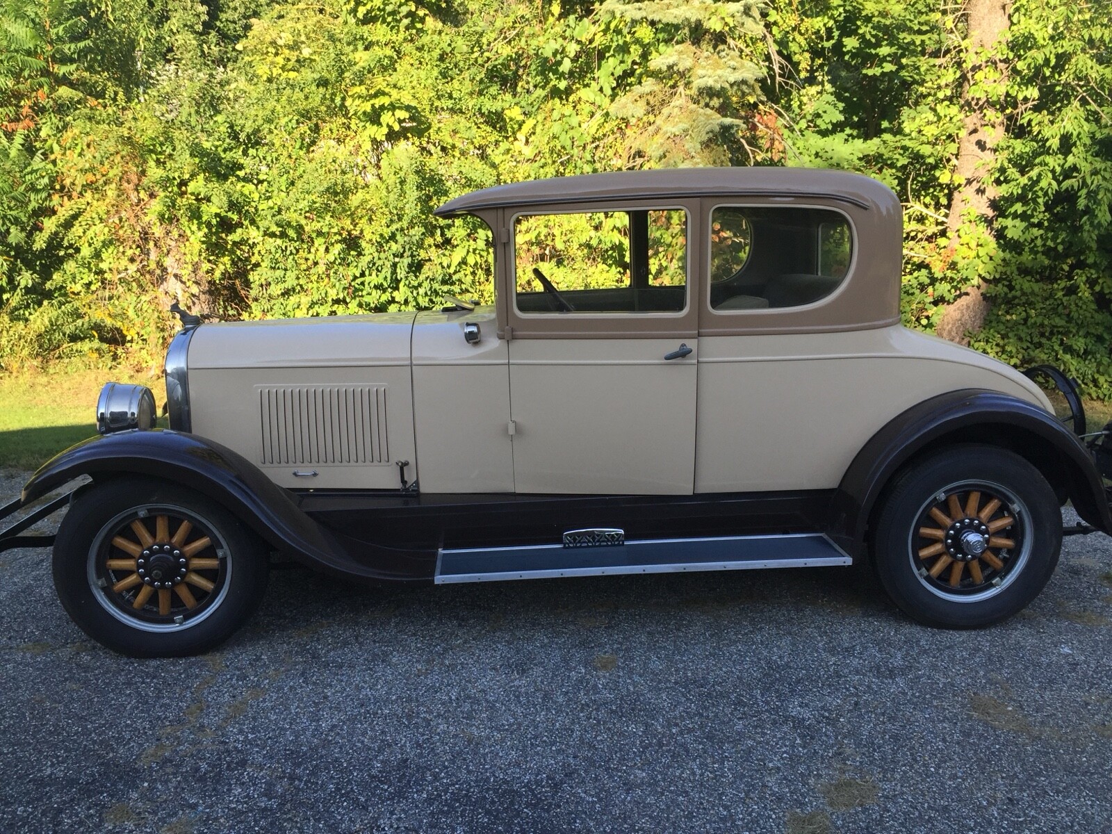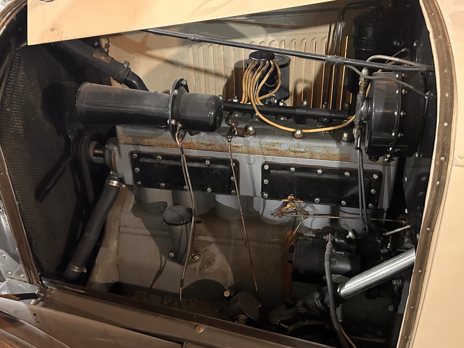 This two door coupe has wood spoke wheels and the original straight six cylinder engine which was rebuilt in 1994 and has less than 100 miles on it. The car underwent a frame off restoration in 1994 and was repainted in the three-tone tan and brown paint job. The interior was redone in mohair pile fabric. It runs well. It needs a speedometer cable and a gravity-feed fuel gauge. Asking $15,000 or best offer.