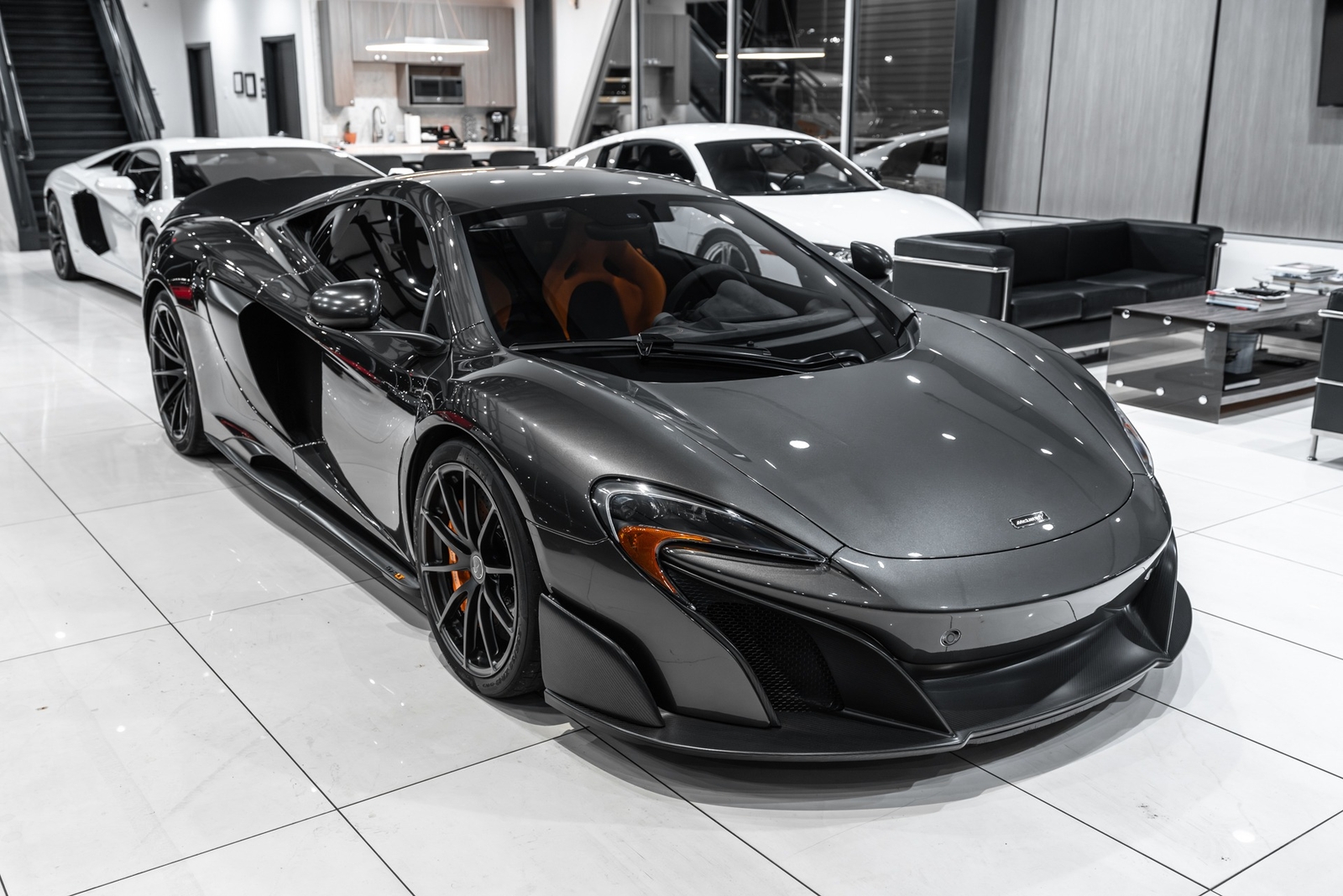 2016 McLaren 675LT CoupeStorm Grey Special Exterior over Carbon Black/McLaren Orange Interior