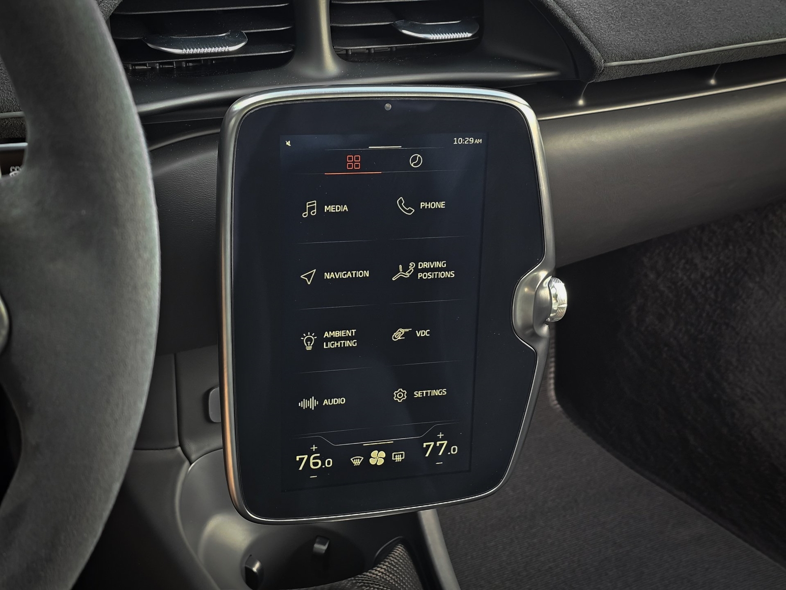 Inside the 2023 Artura Performance, you'll find a high-tech cockpit designed for both performance and convenience. The digital instrument cluster provides key performance data at a glance, while the McLaren infotainment system offers intuitive controls for navigation, audio, and connectivity. Apple CarPlay and Android Auto compatibility keep you connected to your favorite apps and music. The driver-focused layout ensures easy access to controls, allowing you to stay focused on the driving experience.