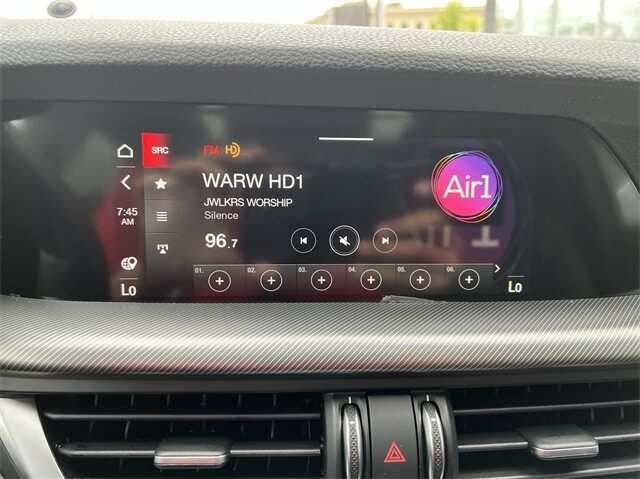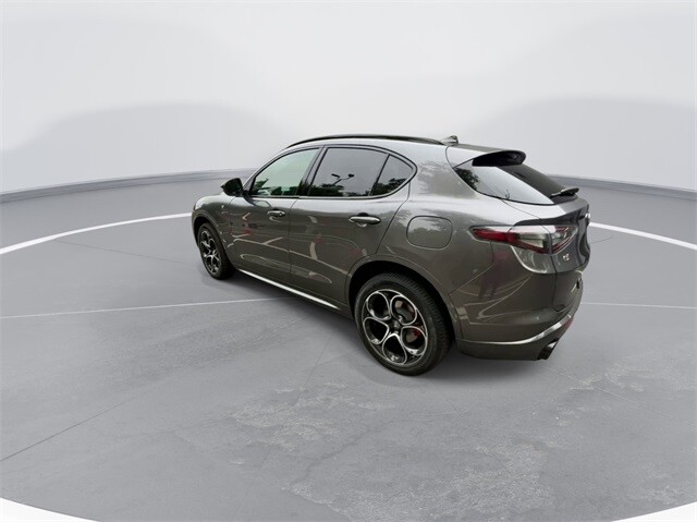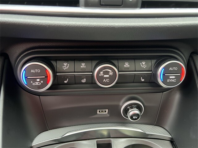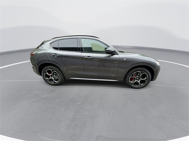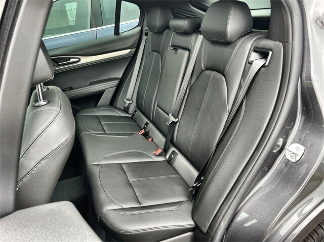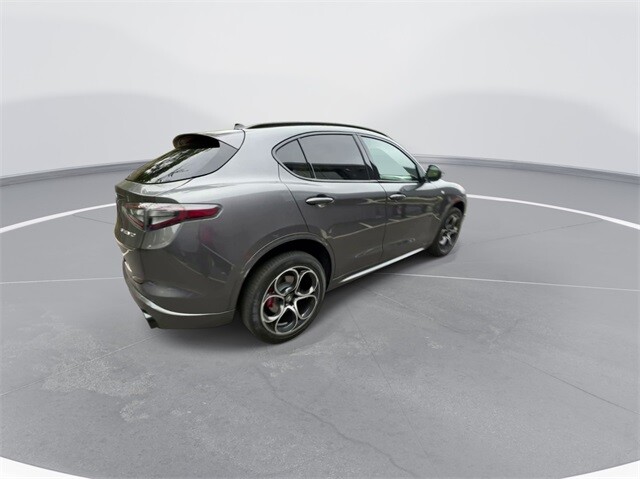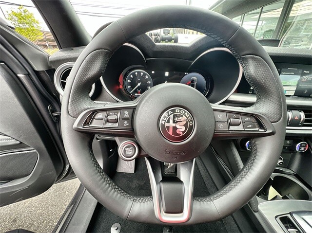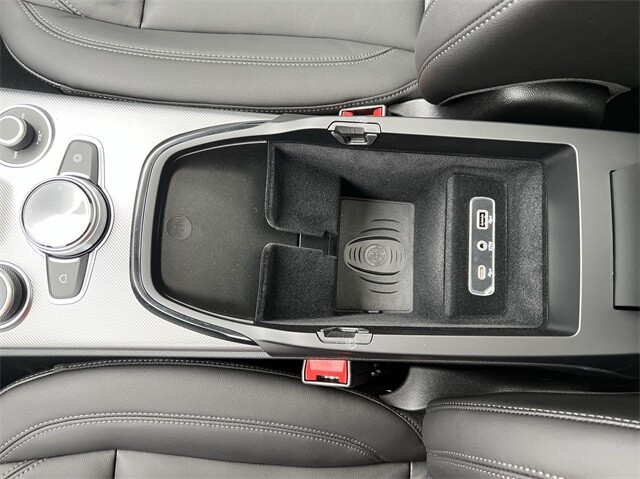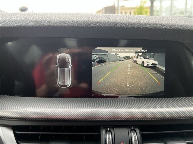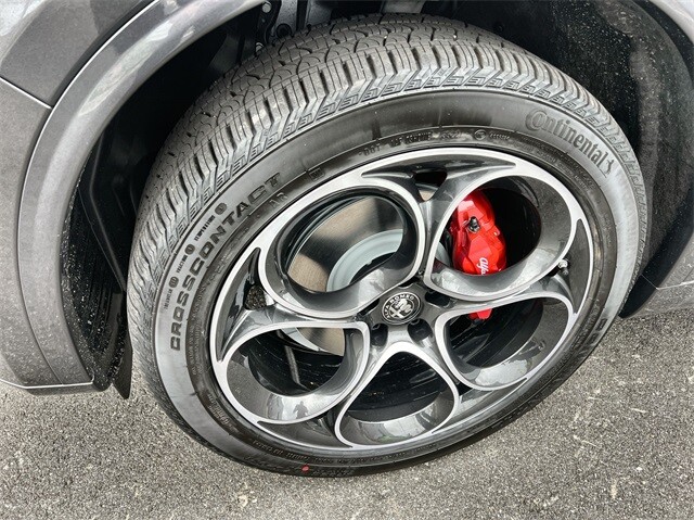 This Stelvio Ti is nicely equipped with Active Assist Plus Package (DISC) (Active Blind Spot Assist, Active Driving Assist System, Driver Attention Alert, Intelligent Speed Assist (ISA), Lane Keep Assist, Traffic Sign Information, and Traffic Sign Recognition), Quick Order Package 22G Ti, Apple CarPlay/Android Auto, Auto High-beam Headlights, Auto-dimming door mirrors, Auto-dimming Rear-View mirror, Automatic temperature control, Brake assist, Compass, Electronic Stability Control, Four wheel independent suspension, Front dual zone A/C, Garage door transmitter, Heated door mirrors, Heated front seats, Heated rear seats, Heated steering wheel, High-Intensity Discharge Headlights, Illuminated entry, Memory seat, Navigation System, Outside temperature display, ParkView Rear Back-Up Camera, Power door mirrors, Power driver seat, Power Liftgate, Power moonroof, Power passenger seat, Power steering, Power windows, Radio: AM/FM/HD 8.8 w/Navigation, Rain sensing wipers, Rear audio controls, Rear window defroster, Rear window wiper, Remote keyless entry, Security system, Speed control, Speed-sensing steering, Steering wheel mounted audio controls, Traction control, Turn signal indicator mirrors, 3.73 Axle Ratio, 4-Wheel Disc Brakes, 8 Speakers, ABS brakes, Air Conditioning, Alloy wheels, AM/FM radio: SiriusXM, Bumpers: body-color, Delay-off headlights, Driver door bin, Driver vanity mirror, Dual front impact airbags, Dual front side impact airbags, Emergency communication system: Alfa Connect, Front anti-roll bar, Front Bucket Seats, Front Center Armrest, Front reading lights, Fully automatic headlights, Gloss Red Calipers w/White Script, Knee airbag, Leather Seats, Leather Shift Knob, Low tire pressure warning, Occupant sensing airbag, Overhead airbag, Overhead console, Panic alarm, Passenger door bin, Passenger vanity mirror, Radio data system, Rear anti-roll bar, Rear fog lights, Rear reading lights, Rear seat center armrest, Roof rack: rails only, Speed-Sensitive Wipers, Split folding rear seat, Spoiler, Sport steering wheel, Tachometer, Telescoping steering wheel, Tilt steering wheel, Trip computer, Variably intermittent wipers, Wheels: 19 x 8.0 Sport 5-Hole Aluminum, and Wheels: 20 x 8.5 Sport 5-Hole Aluminum.