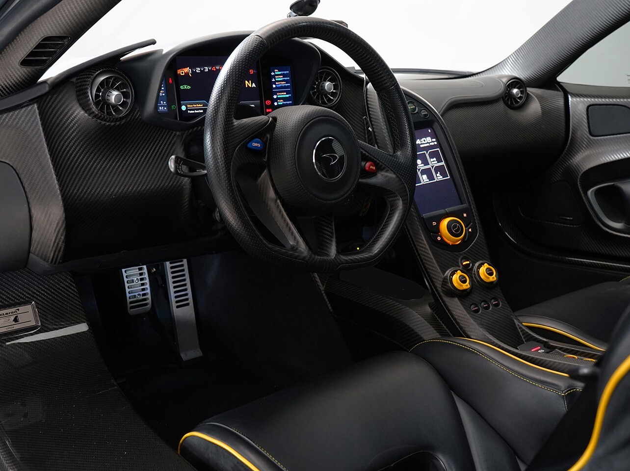 This P1 is significant because it is one of the 15 remaining P1 prototypes globally. VP4, otherwise known as Validation Prototype 04, is one of just 5 validation prototype P1s. VP4 began life as an amethyst black car with gray wheels and a black interior. In this form, VP4 made the dynamic debut of the P1 at the 2013 Goodwood Festival of Speed. With famed Formula One driver Jensen Button behind the wheel, the P1 had a hill climb time of 53 seconds. After appearing in several other press events, this prototype was retired and went out of commission.
