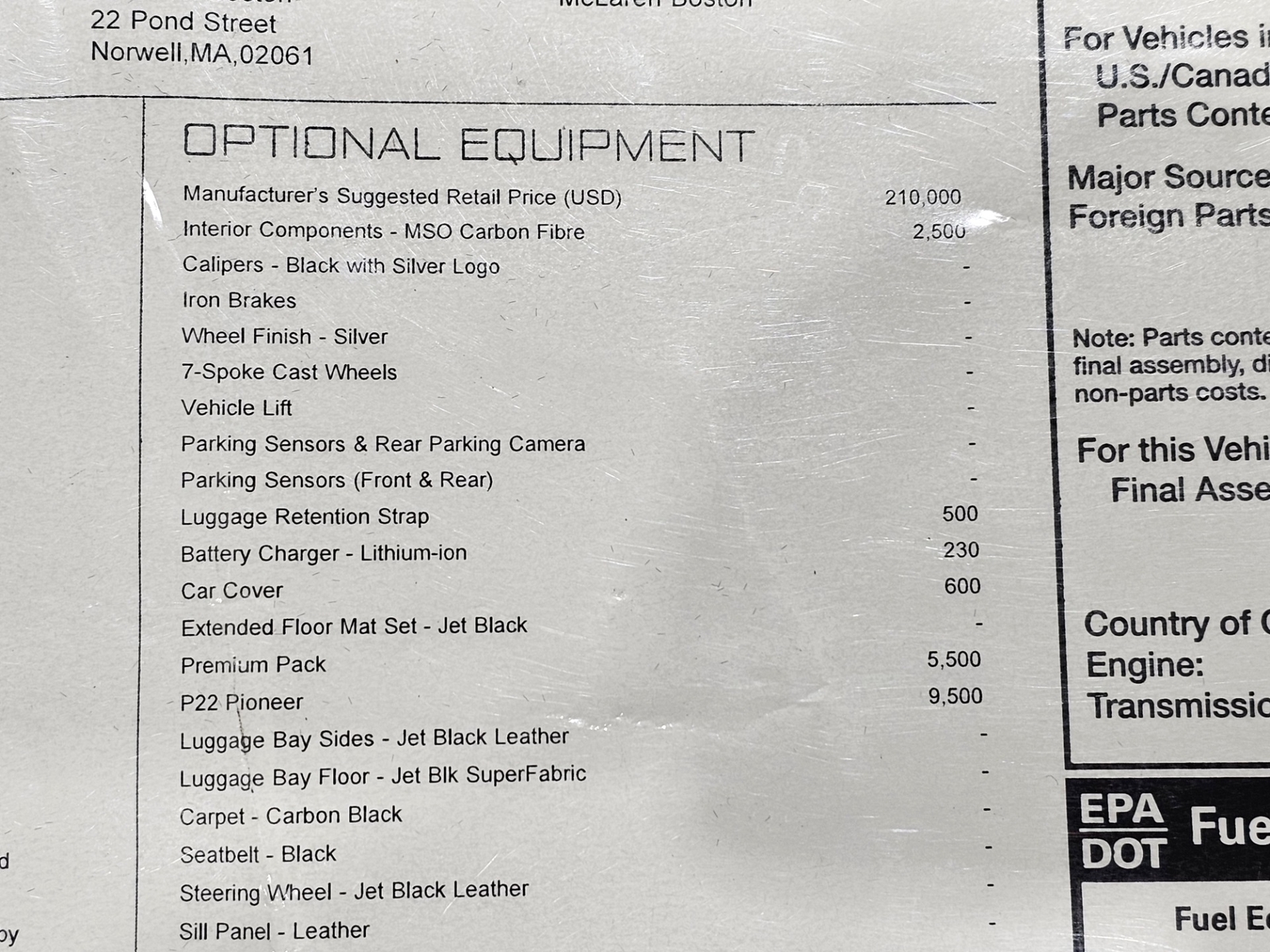 $2,500: INTERIOR COMPONENTS - MSO CARBON FIBRE.