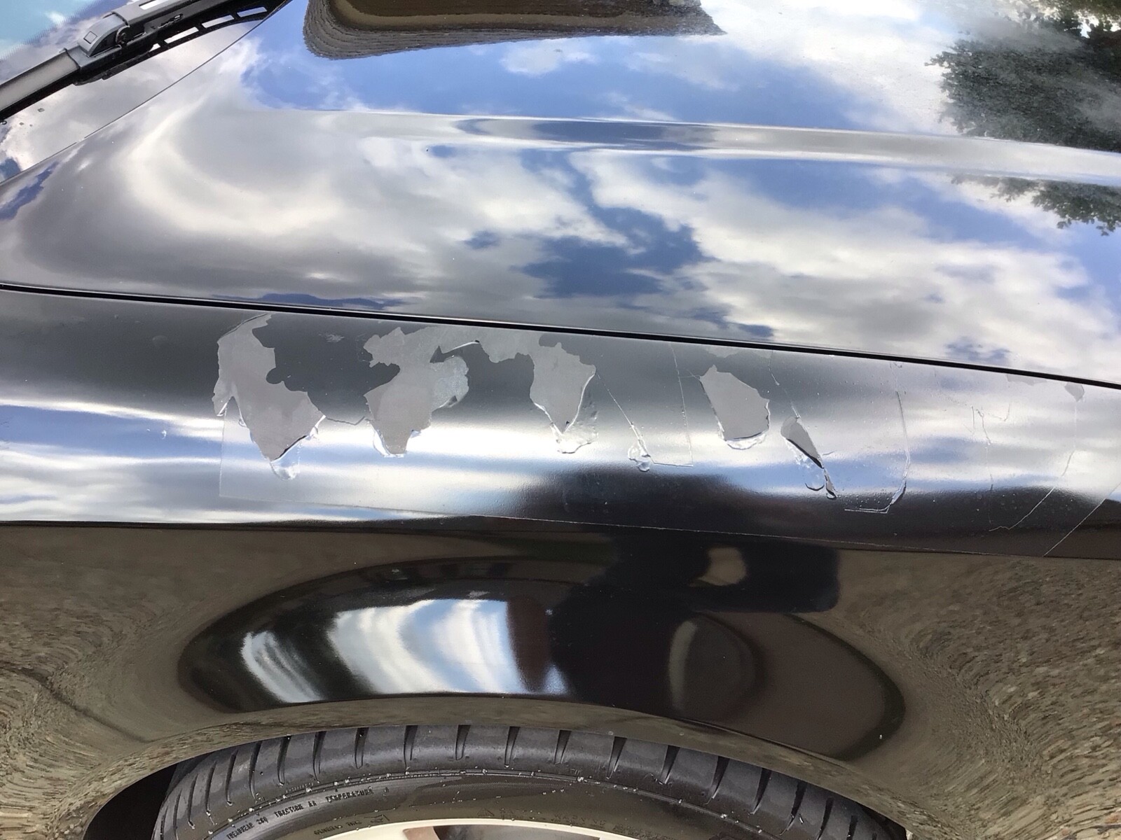 Car has dent on driver fender, paint flaking on passenger and fade on hood. All other looks nice. See photos.