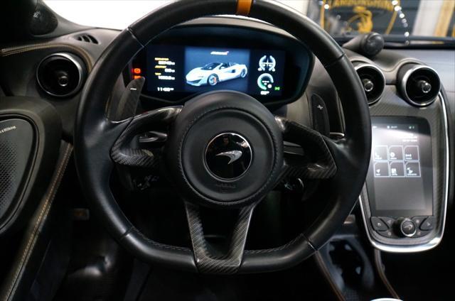 For 2020 McLaren unveiled an open version of the 600LT at the 2019 Detroit Auto Show called the 600LT Spider. Behind the seats sits a 3.8-liter version of McLaren?s proprietary twin-turbocharged V8 engine. In the 600LT the engine makes 592 horsepower and 457 pound-feet of torque driving the rear wheels via a 7-speed dual-clutch automatic transmission (DCT) with paddle shifters.
