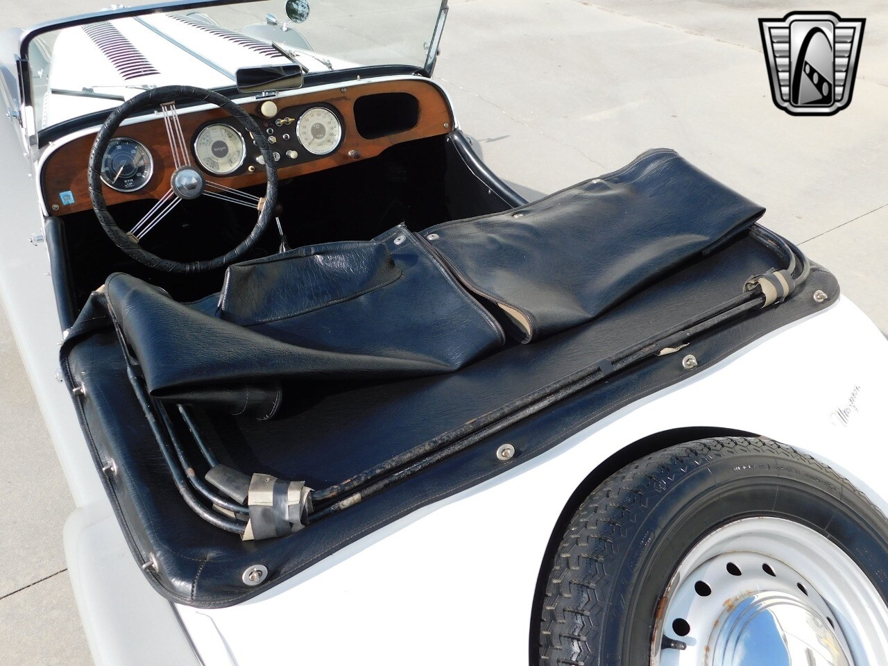 The 1960 Morgan Plus 4 Roadster rides on radial tires, known for their durability and ability to provide a smooth, comfortable ride. These tires are paired with rally wheels, adding to the car's sporty and stylish appearance.