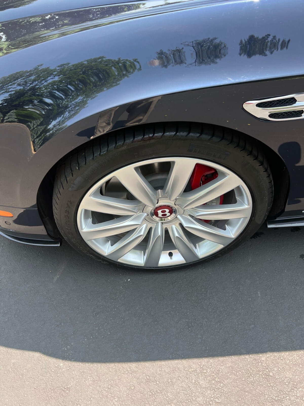 21 INCH PROPELLER WHEELS PAINTED,TAMO ASH,VENEER DOOR AND REAR QUARTER INSERTS,WOOD AND HIDE,3 SPOKE STEERING WHEEL,CHROMED LOWER BUMPER, GRILLE,NECK WARMER, VENTILATED FRONT SEATS WITH MESSAGE,EMBROIDERED BENTLEY EMBLEMS,WIND DEFLECTOR,DEEP PILE OVER MATS FRONT AND REAR.LIST PRIC