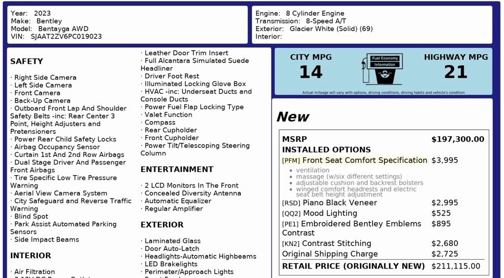 RETAIL PRICE (ORIGINALLY NEW) $211,115.00