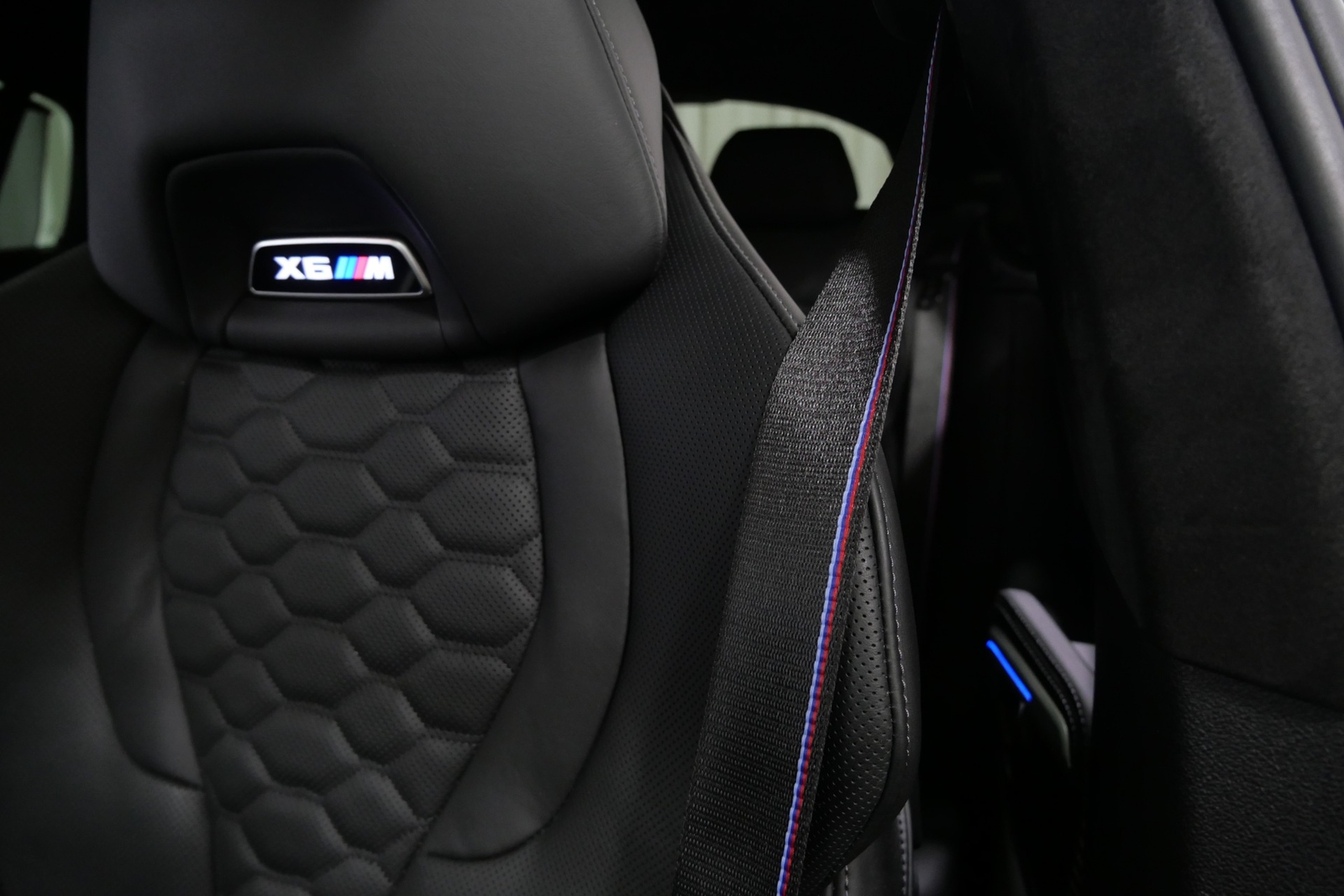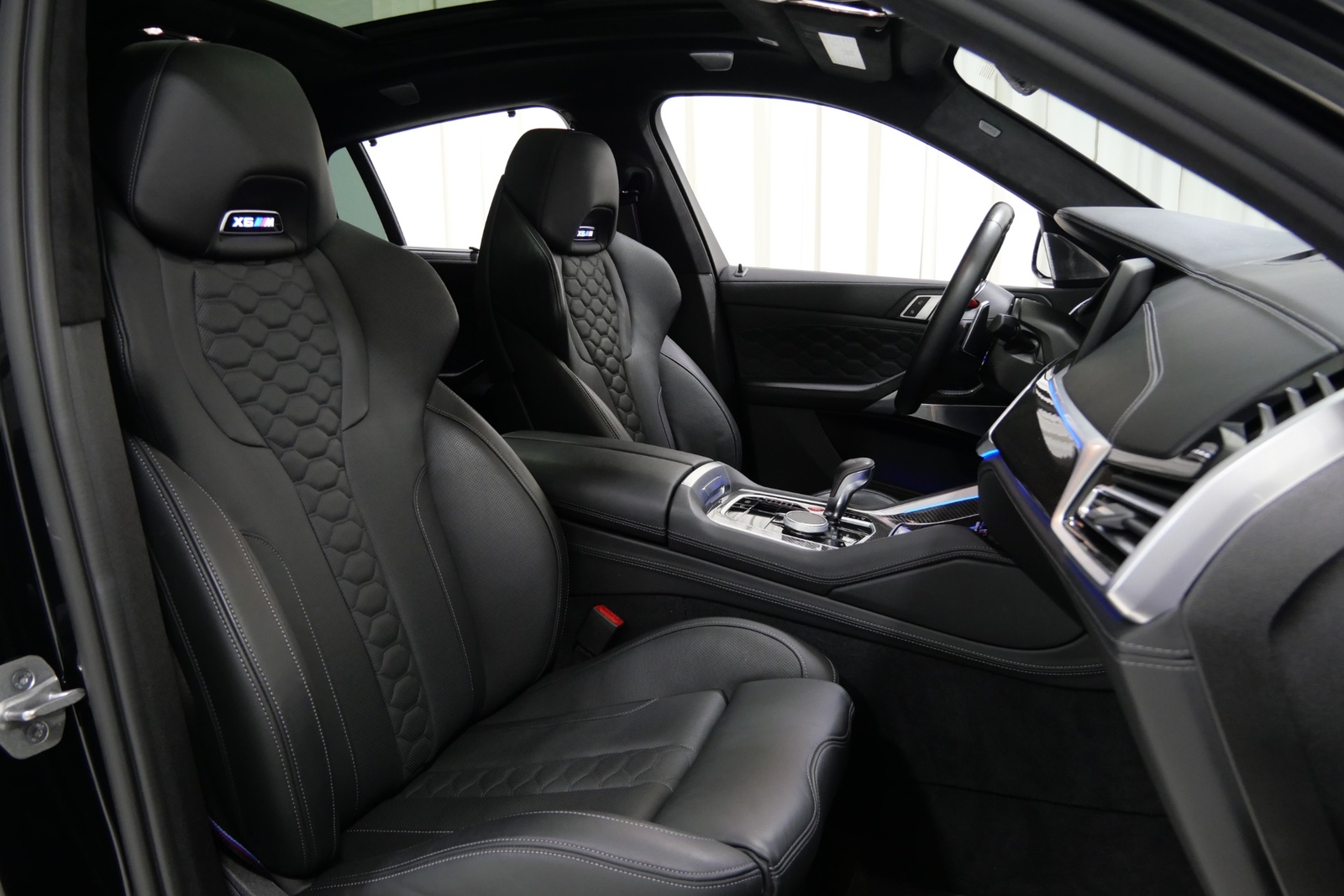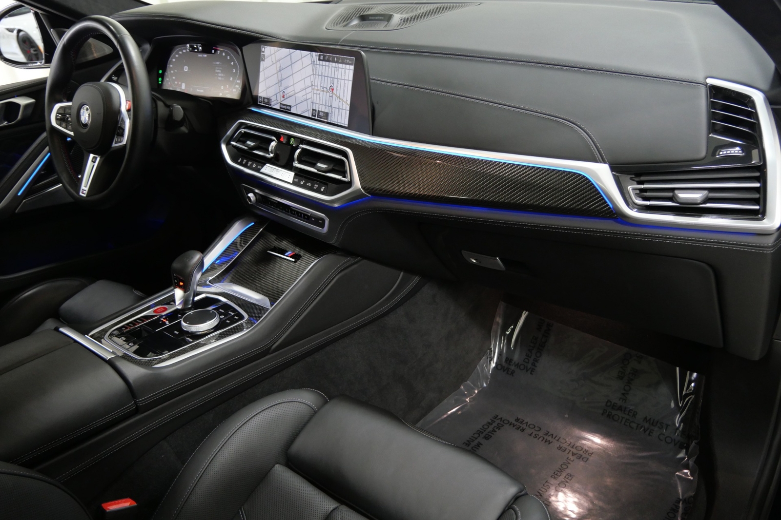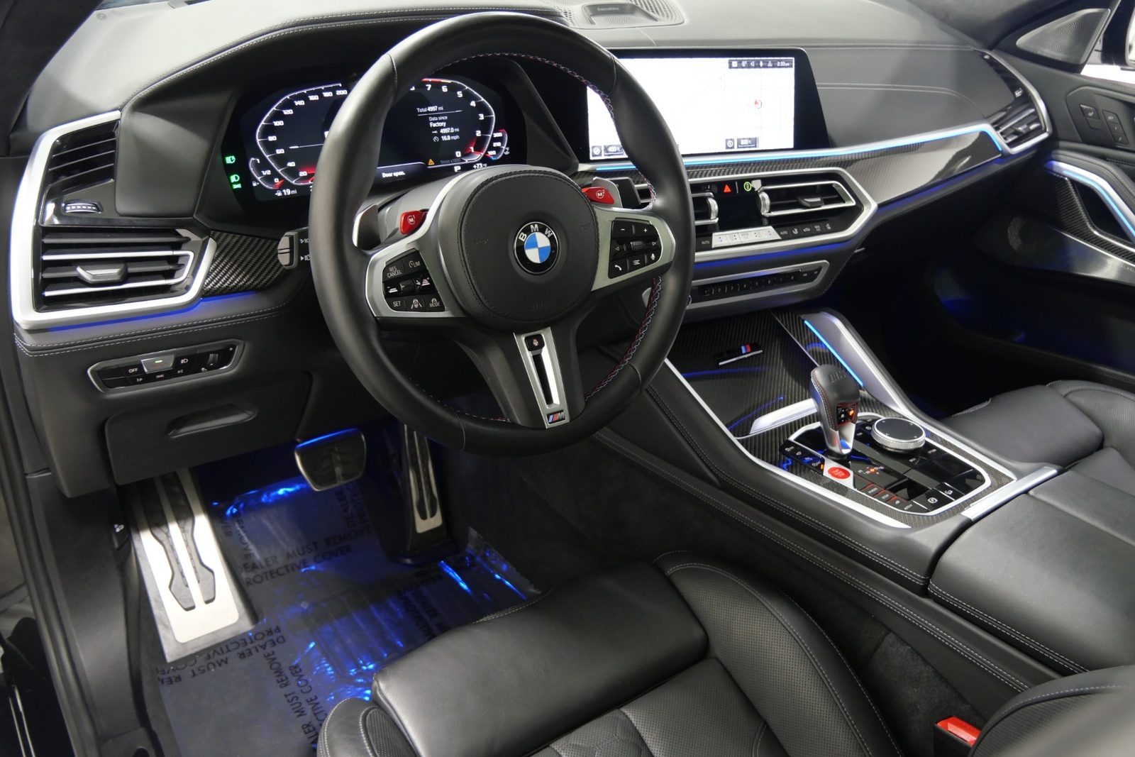 We have just added to our extensive exotic car inventory a beautiful 2023 BMW X6 M Competition in Black Sapphire Metallic over Black leather with only 4,997 miles. This X6 is loaded with: 4.0 Liter TwinPower Turbo V8 with 600 horsepower, 8 speed automatic, competition package (M Sport exhaust system, 17 additional horsepower, M Track mode, 21 in. / 22 in. M star-spoke bi-color wheels, M Competition styling, M shadowline lights, extended shadowline trim, black chrome tailpipes, M seat belts, and full Merino leather upholstery), panoramic glass roof, carbon fiber interior trim, Bowers and Wilkins diamond surround sound, driving assistance professional package (extended traffic jam assistant for limited access highways and Active Driving Assistant Pro [includes active cruise control with stop and go, active lane keeping assistant with side collision avoidance, steering and traffic jam assistant, automatic lane change, evasion assistant and front cross-traffic alert]), executive package (soft-close automatic doors, remote engine start, rear manual side window shades, heated and cooled cupholders, front ventilated and massaging seats, and front and rear heated seats), floor mats and much more.