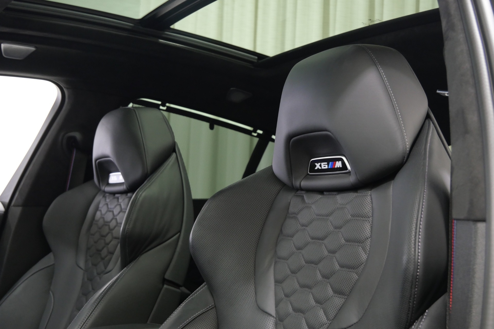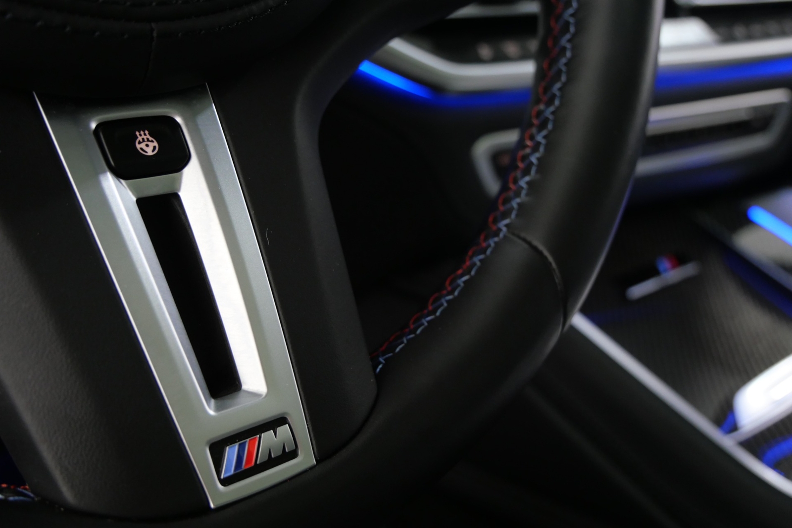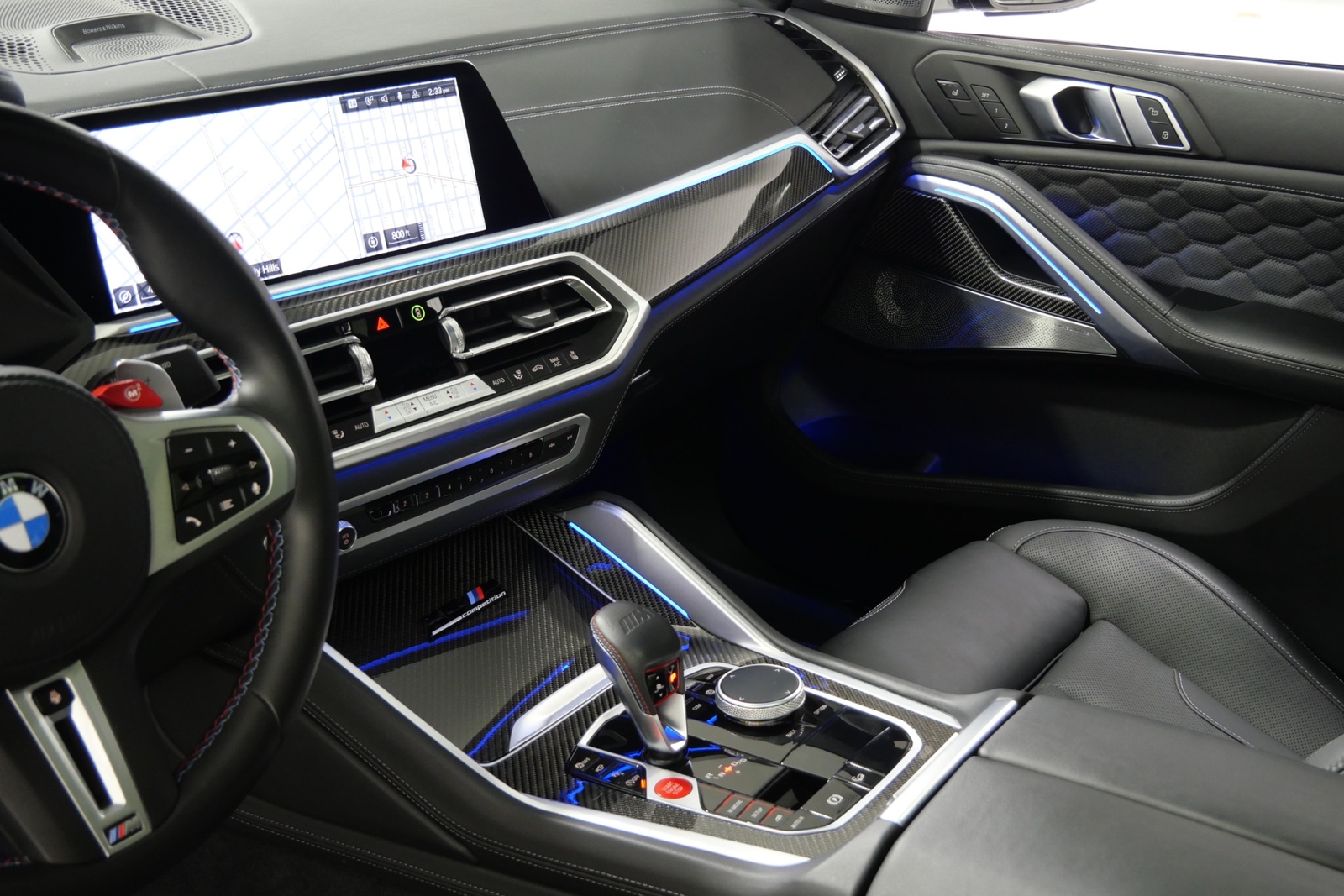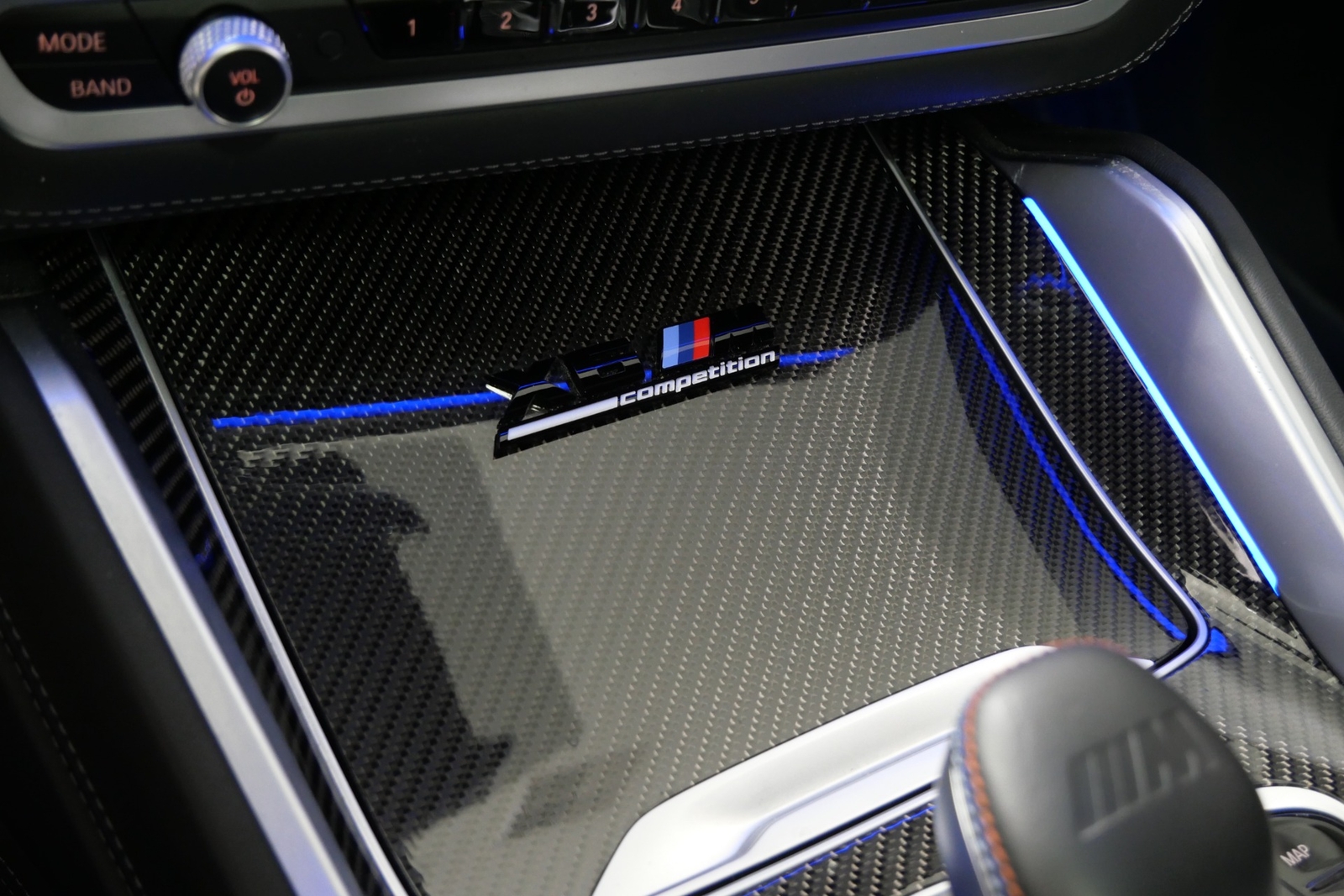 We have just added to our extensive exotic car inventory a beautiful 2023 BMW X6 M Competition in Black Sapphire Metallic over Black leather with only 4,997 miles. This X6 is loaded with: 4.0 Liter TwinPower Turbo V8 with 600 horsepower, 8 speed automatic, competition package (M Sport exhaust system, 17 additional horsepower, M Track mode, 21 in. / 22 in. M star-spoke bi-color wheels, M Competition styling, M shadowline lights, extended shadowline trim, black chrome tailpipes, M seat belts, and full Merino leather upholstery), panoramic glass roof, carbon fiber interior trim, Bowers and Wilkins diamond surround sound, driving assistance professional package (extended traffic jam assistant for limited access highways and Active Driving Assistant Pro [includes active cruise control with stop and go, active lane keeping assistant with side collision avoidance, steering and traffic jam assistant, automatic lane change, evasion assistant and front cross-traffic alert]), executive package (soft-close automatic doors, remote engine start, rear manual side window shades, heated and cooled cupholders, front ventilated and massaging seats, and front and rear heated seats), floor mats and much more.