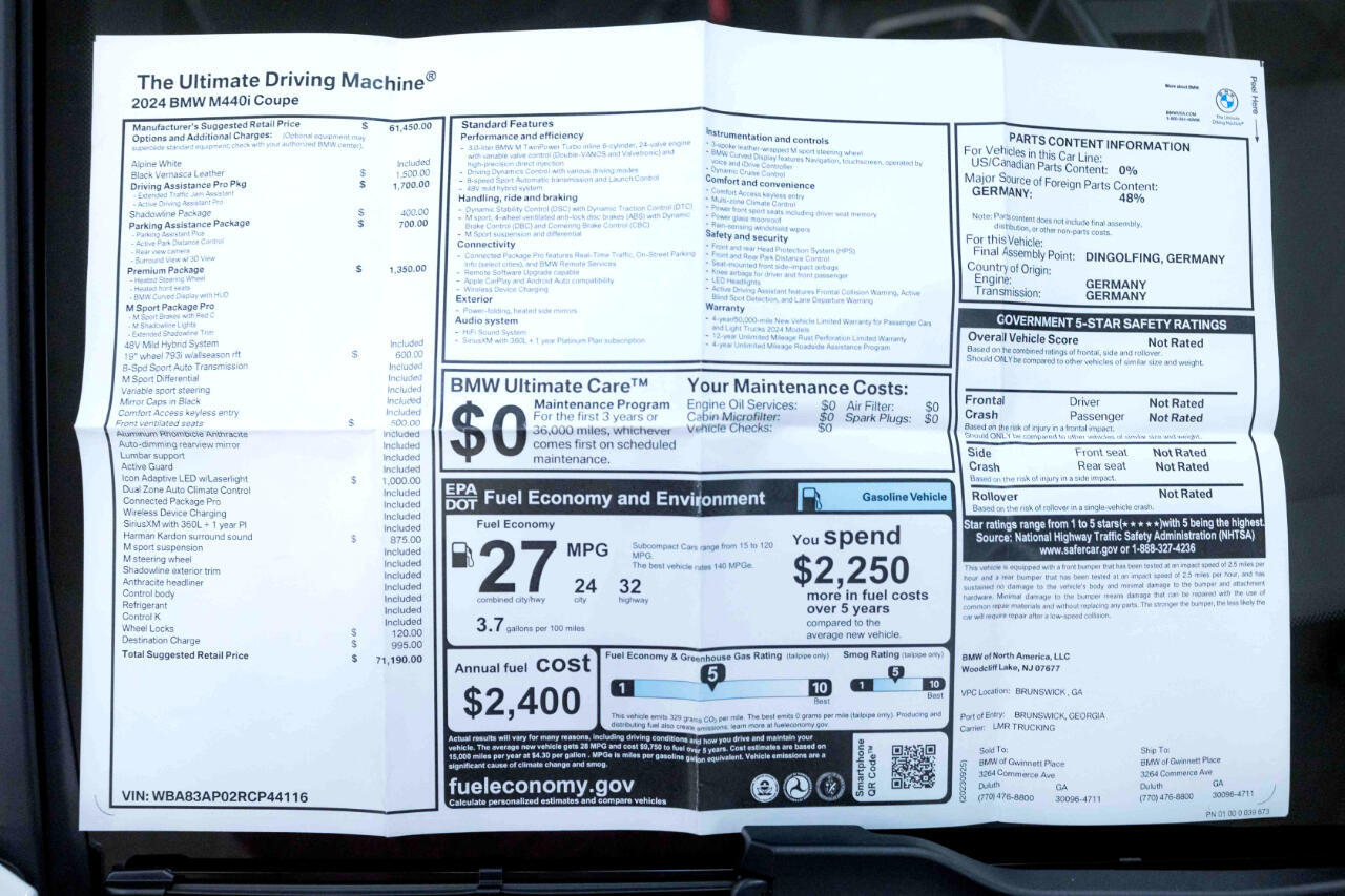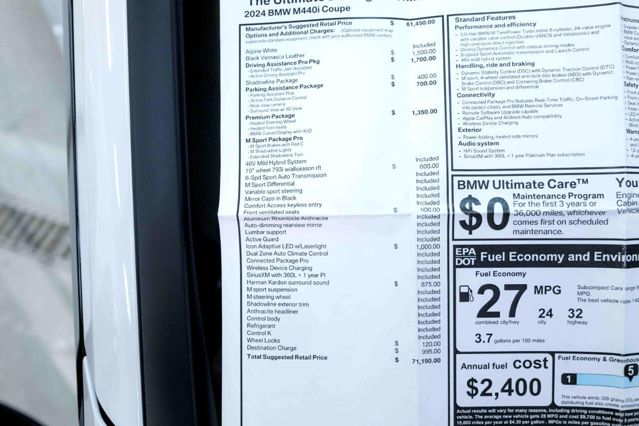FULL HIGH RESOLUTION PHOTOS AND DETAILED DESCRIPTION ON YOU HAVE A VEHICLE YOU ARE LOOKING TO SELL, PLEASE CALL US AT 770-455-8494WE SHOW VEHICLES BY APPOINTMENT ONLY. PLEASE CALL TO SCHEDULE AN APPOINTMENT IN ORDER TO VIEW A LISTING IN PERSON.NEW ARRIVAL!! 1 OWNER LOADED BMW M440I COUPE WITH M SPORT PACKAGE PRO!! SUPER CLEAN CAR INSIDE AND OUT; RUNS AND DRIVES GREAT. READY TO GO! COMES WITH BOOKS, MANUALS, AND WINDOW STICKER. $71,190 ORIGINAL MSRP!!EXTERIOR IS FINISHED INALPINE WHITE OVER BLACK VERNASKA INTERIOR.FACTORY OPTIONS AND FEATURES INCLUDE:3.0L INLINE 6 CYLINDER ENGINE8 SPEED PADDLE SHIFT AUTOMATIC TRANSMISSIONDRIVER ASSISTANCE PACKAGEM SPORT PACKAGE PROSHADOWLINE PACKAGEPARKING ASSISTANCE PACKAGEPREMIUM PACKAGEPOWER SUNROOFSURROUND VIEW CAMERASHEATED M STEERING WHEELHEADS UP DISPLAYADAPTIVE CRUISE CONTROLACTIVE DRIVING ASSISTANTACTIVE BLIND SPOT DETECTIONLANE DEPARTURE WARNINGPARK DISTANCE CONTROLHEATED AND VENTILATED FRONT SEATSHARMAN KARDON AUDIOBMW LASER HEADLIGHTSKEYLESS ENTRYKEYLESS START19 793M WHEELSM SPORT BRAKESAND MUCH MORE.GAS MOTORCARS IS A FAMILY OWNED AND OPERATED CAR DEALERSHIP LOCATED IN MARIETTA, GA. WE ONLY SELL VEHICLES OF THE HIGHEST QUALITY. WE SHIP VEHICLES WORLDWIDE AT THE BUYER'S EXPENSE. WE TAKE CONSIGNMENTS AS WELL AS TRADES.WE SHOW VEHICLES BY APPOINTMENT ONLY.PLEASE CALL AHEAD TO SCHEDULE A DATE AND TIME IN ORDER TO VIEW A LISTING IN PERSON.FOLLOW US ON INSTAGRAM @GASMOTORCARSIt is the customers sole responsibility to verify the existence and condition of any equipment listed. Neither the dealership nor DealerCarSearch is responsible for misprints on prices or equipment. It is the customers sole responsibility to verify the accuracy of the prices with the dealer, including the pricing for all added accessories. Visit Gas Motorcars online at to see more pictures of this vehicle or call us at770-455-8494 today to schedule your test drive.
