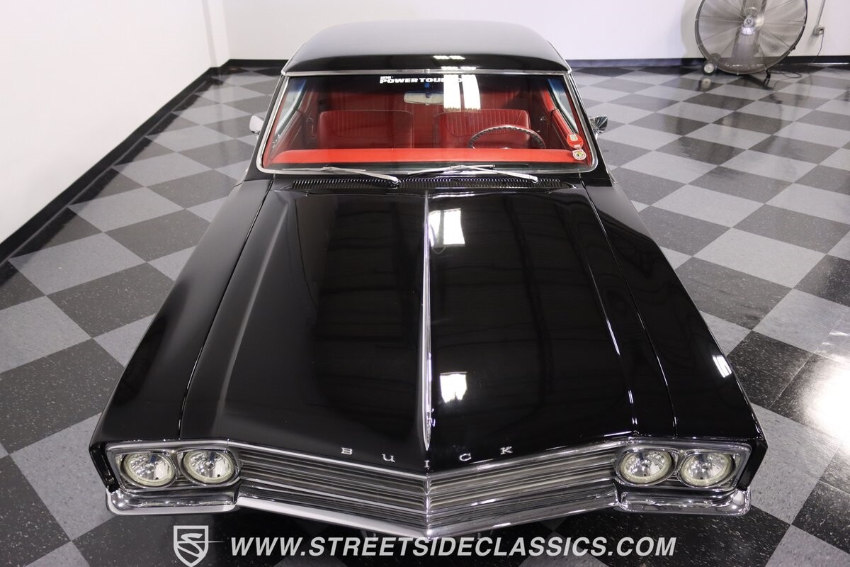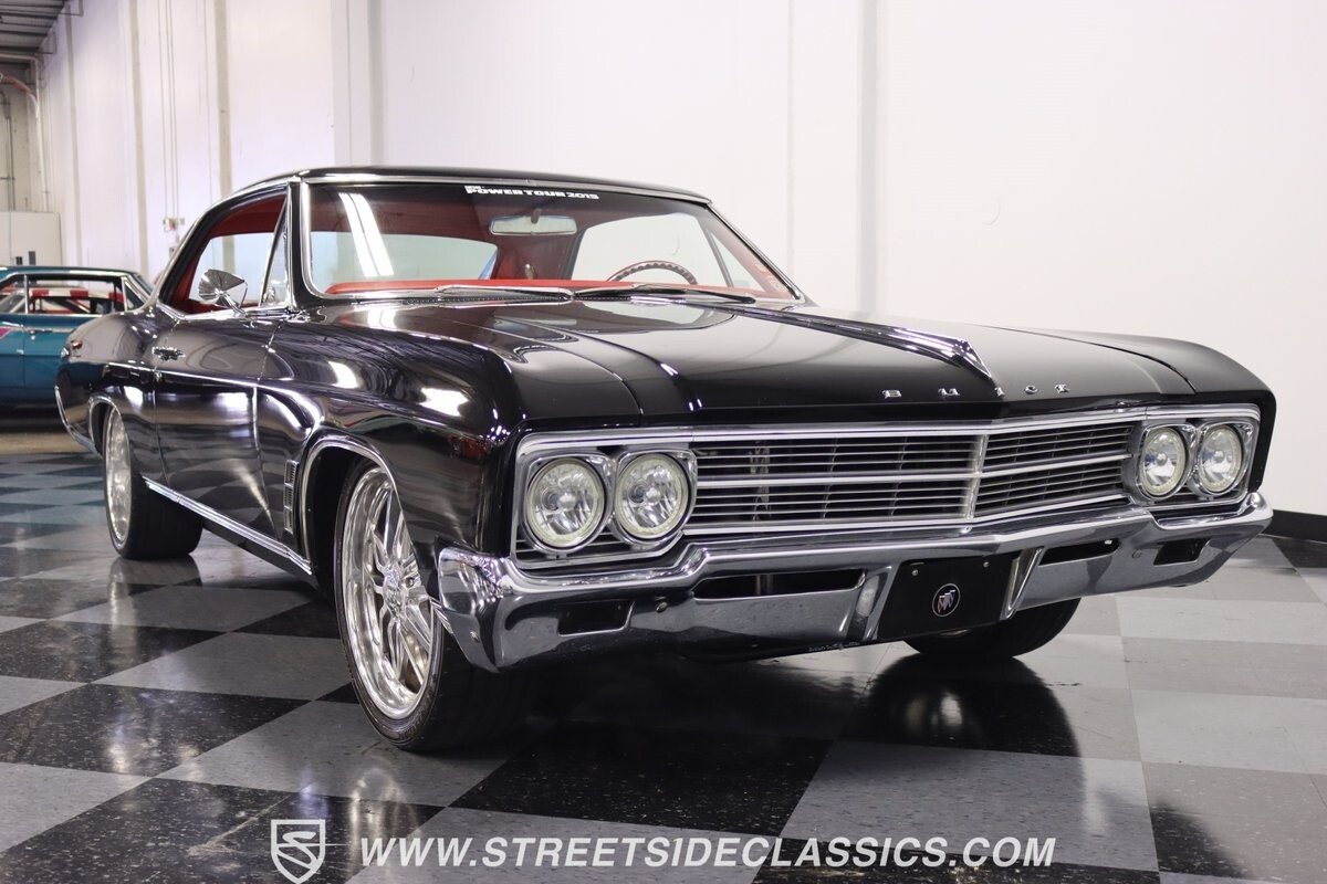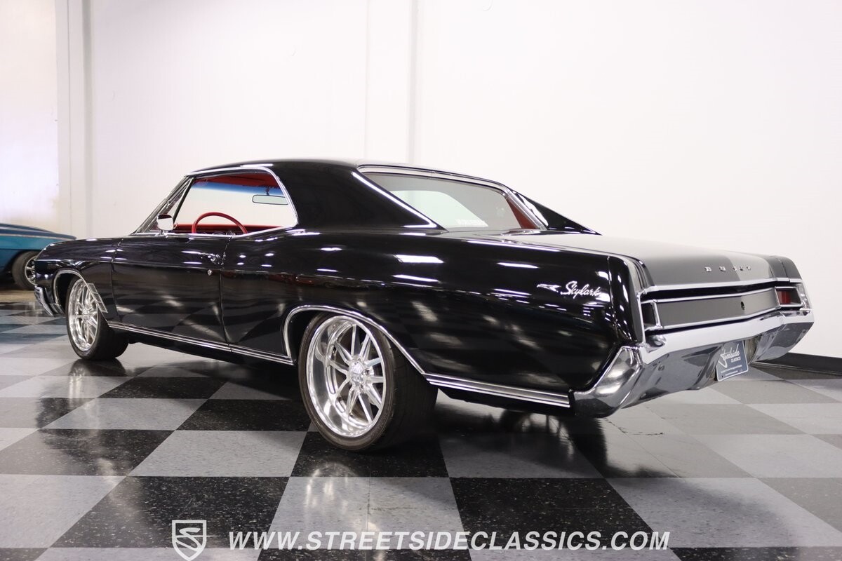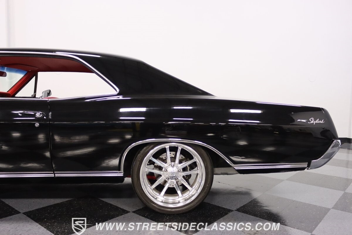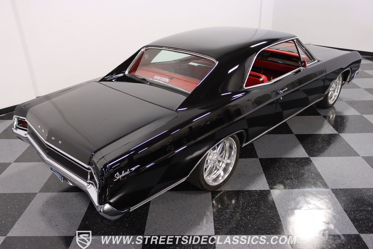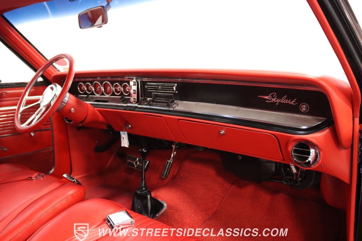The 1966 Buick Skylark Restomod represents a harmonious blend of classic Buick elegance and modern high-performance engineering. This vehicle has undergone a comprehensive restoration, transforming it into a showpiece with capabilities that far exceed its original factory specifications.Coated in a deep black finish, the car's exterior has been fully repainted, changing from its original blue to a more sinister shade, giving it a commanding presence on the road. Under the hood lies a potent LS1 5.7 Liter V8 engine, a significant upgrade from the original powerplant. The addition of a performance cam and electronic fuel injection further enhances the driving experience. The interior is a striking red, with all-new stock-style and custom interior work. The installation of Speed Hut custom gauges, including a GPS speedometer, Lokar floor shift, and billet pedals. This Skylark rides on a modernized chassis, featuring tubular A-arms, adjustable coil-overs, and sway bars for improved handling. The braking system has been upgraded with Wilwood discs and a master cylinder, for unmatched stopping power.