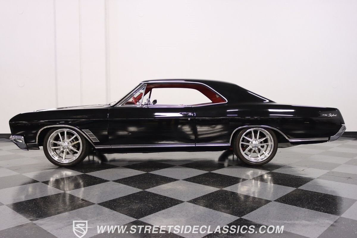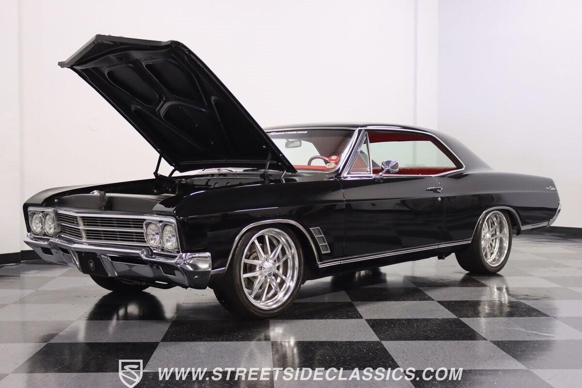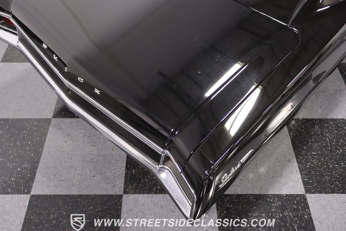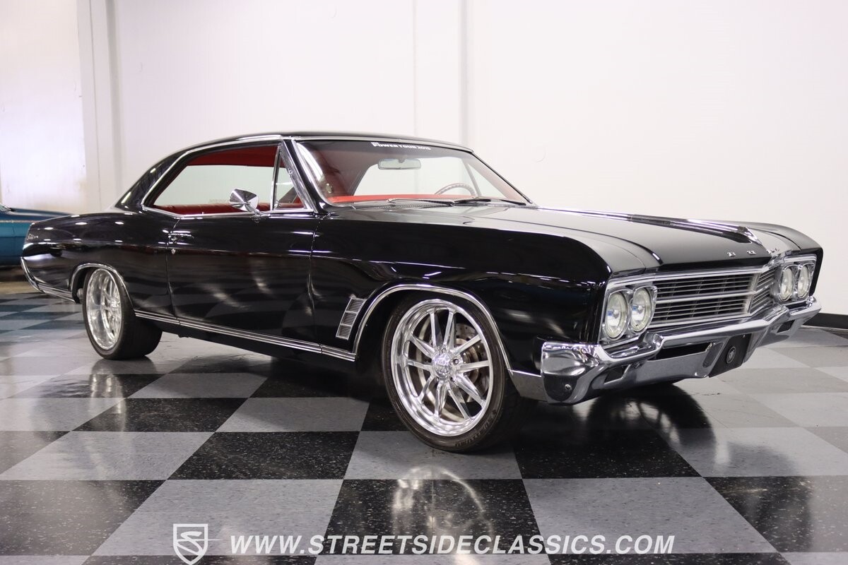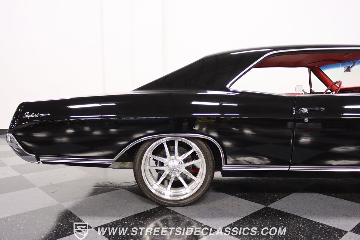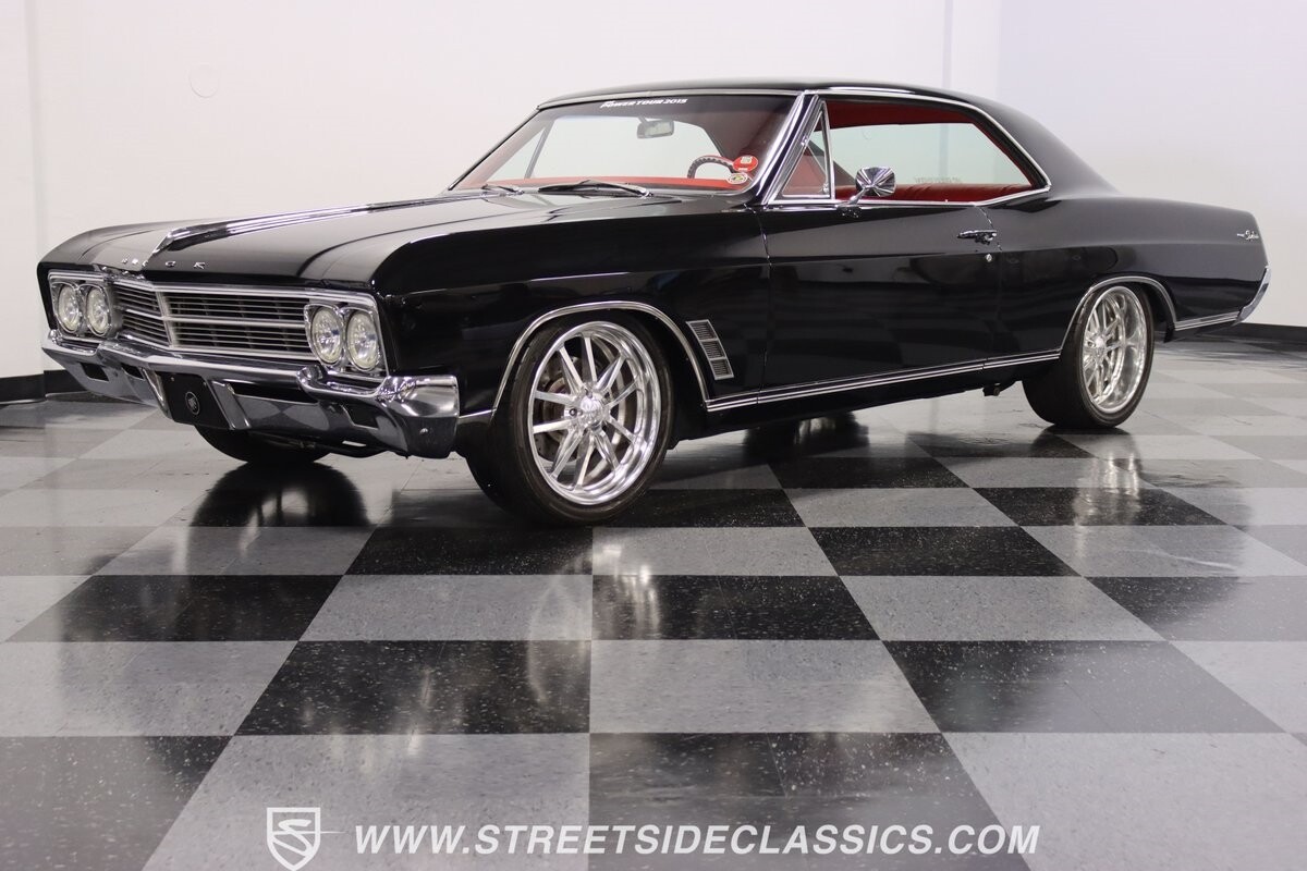 The 1966 Buick Skylark Restomod represents a harmonious blend of classic Buick elegance and modern high-performance engineering. This vehicle has undergone a comprehensive restoration, transforming it into a showpiece with capabilities that far exceed its original factory specifications.Coated in a deep black finish, the car's exterior has been fully repainted, changing from its original blue to a more sinister shade, giving it a commanding presence on the road. Under the hood lies a potent LS1 5.7 Liter V8 engine, a significant upgrade from the original powerplant. The addition of a performance cam and electronic fuel injection further enhances the driving experience. The interior is a striking red, with all-new stock-style and custom interior work. The installation of Speed Hut custom gauges, including a GPS speedometer, Lokar floor shift, and billet pedals. This Skylark rides on a modernized chassis, featuring tubular A-arms, adjustable coil-overs, and sway bars for improved handling. The braking system has been upgraded with Wilwood discs and a master cylinder, for unmatched stopping power.