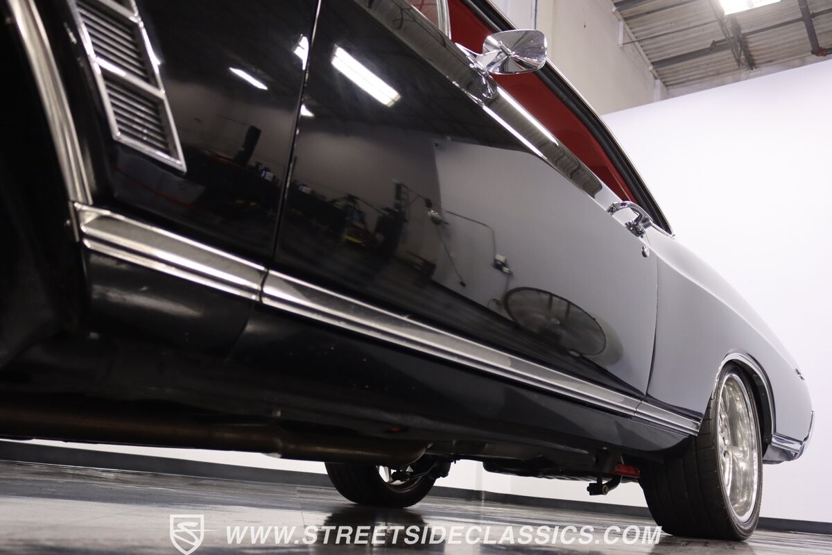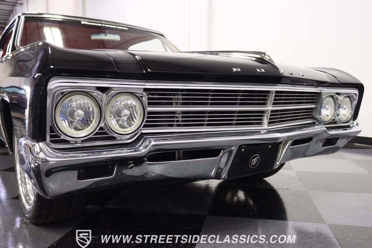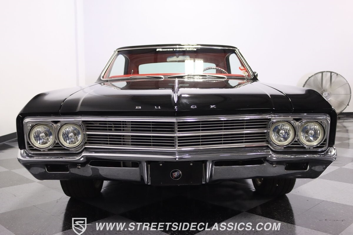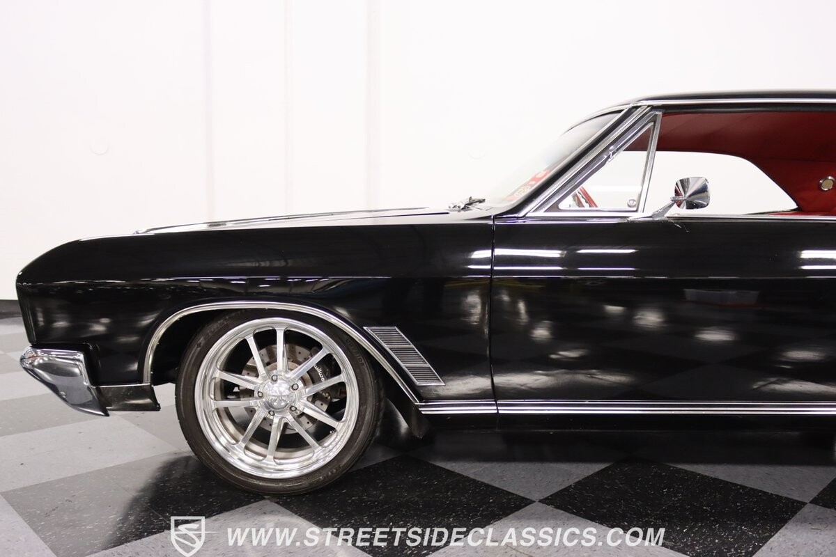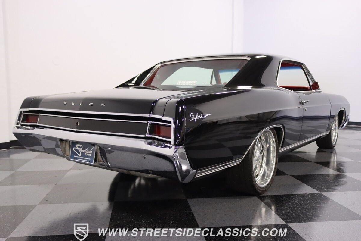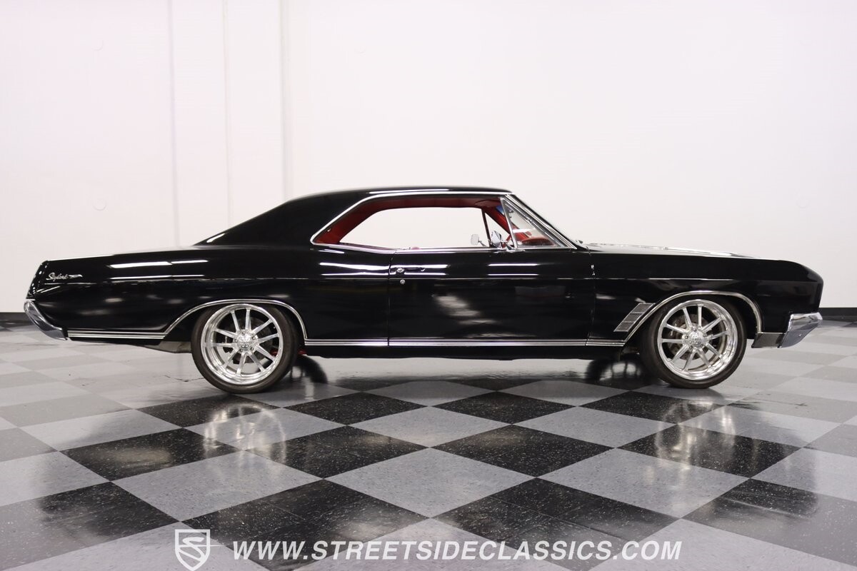 The 1966 Buick Skylark Restomod represents a harmonious blend of classic Buick elegance and modern high-performance engineering. This vehicle has undergone a comprehensive restoration, transforming it into a showpiece with capabilities that far exceed its original factory specifications.Coated in a deep black finish, the car's exterior has been fully repainted, changing from its original blue to a more sinister shade, giving it a commanding presence on the road. Under the hood lies a potent LS1 5.7 Liter V8 engine, a significant upgrade from the original powerplant. The addition of a performance cam and electronic fuel injection further enhances the driving experience. The interior is a striking red, with all-new stock-style and custom interior work. The installation of Speed Hut custom gauges, including a GPS speedometer, Lokar floor shift, and billet pedals. This Skylark rides on a modernized chassis, featuring tubular A-arms, adjustable coil-overs, and sway bars for improved handling. The braking system has been upgraded with Wilwood discs and a master cylinder, for unmatched stopping power.