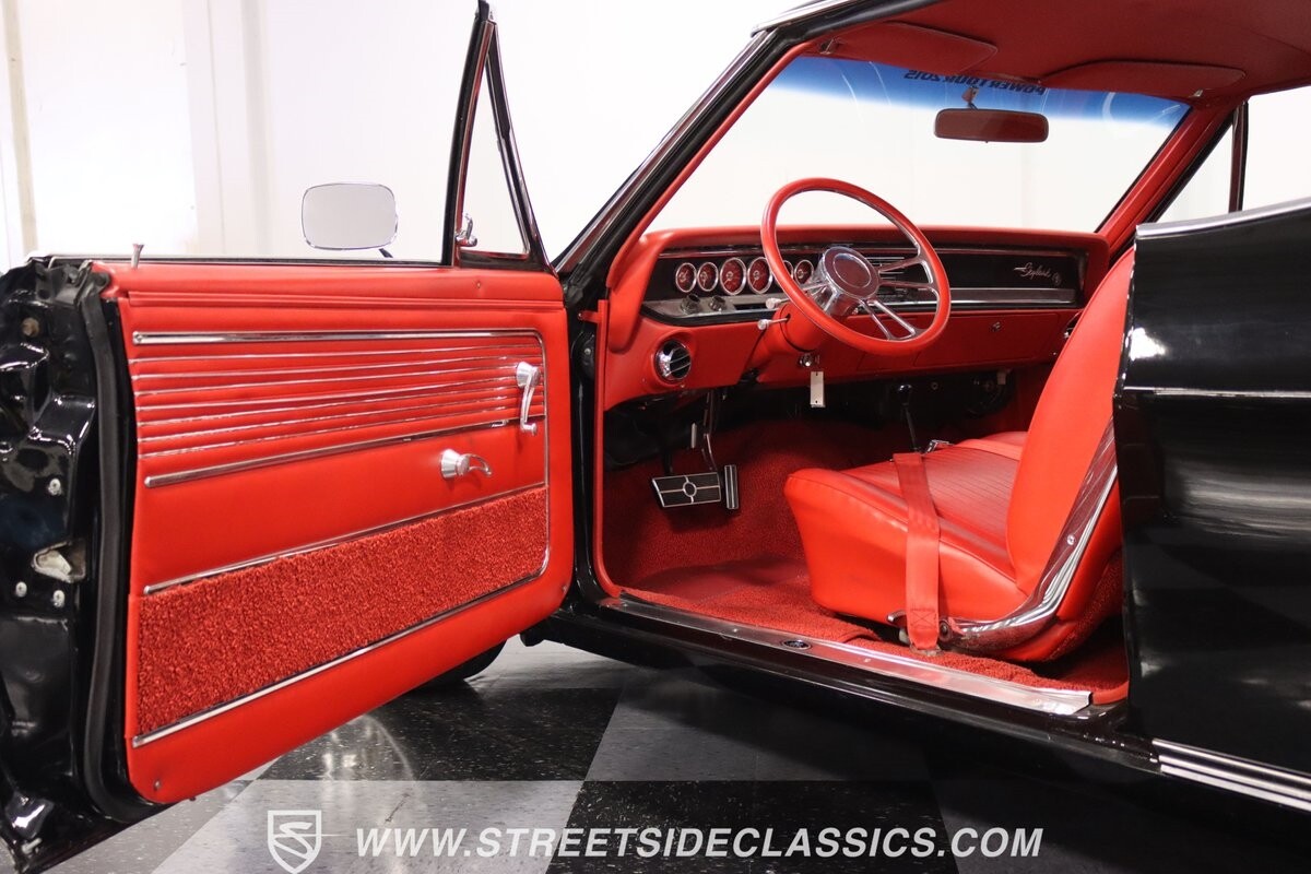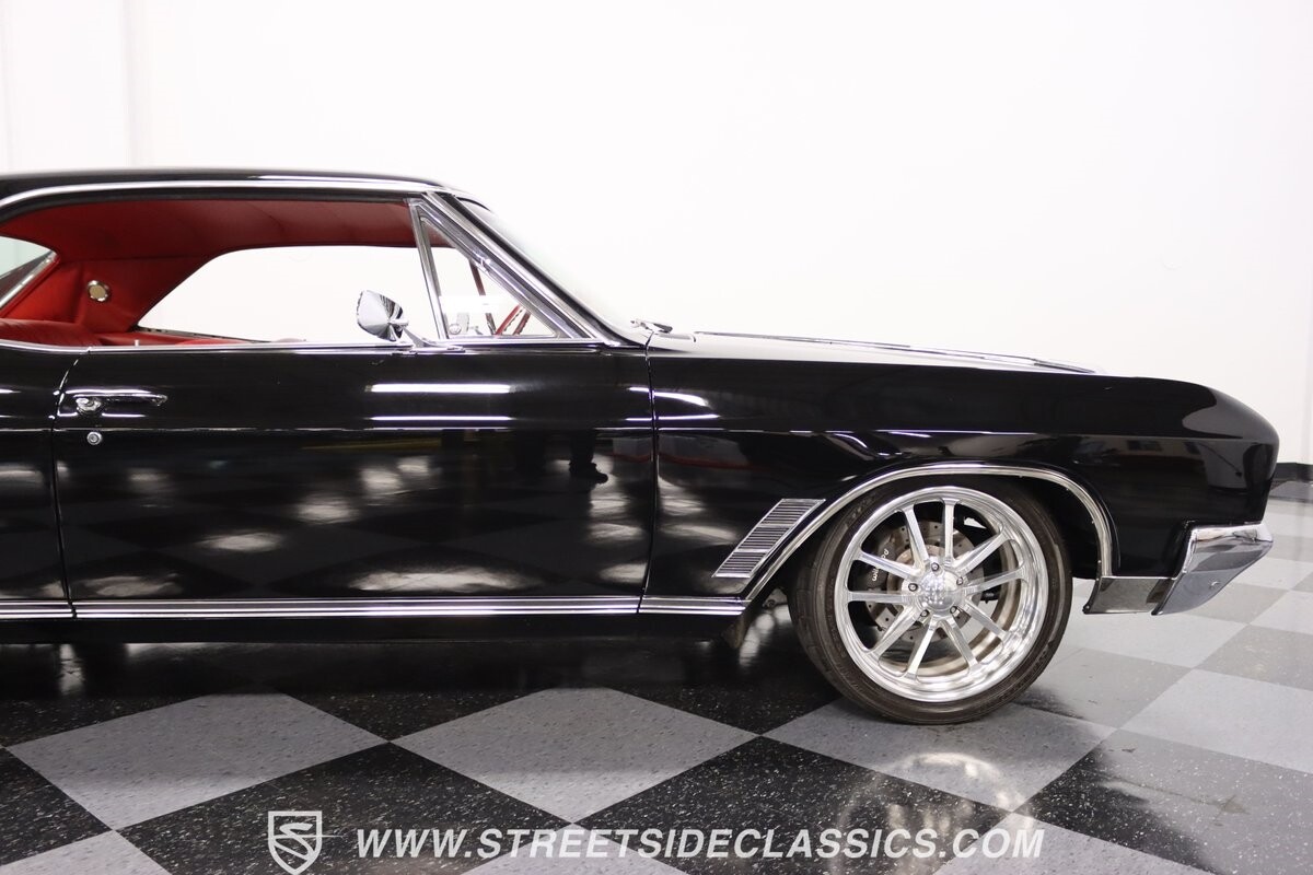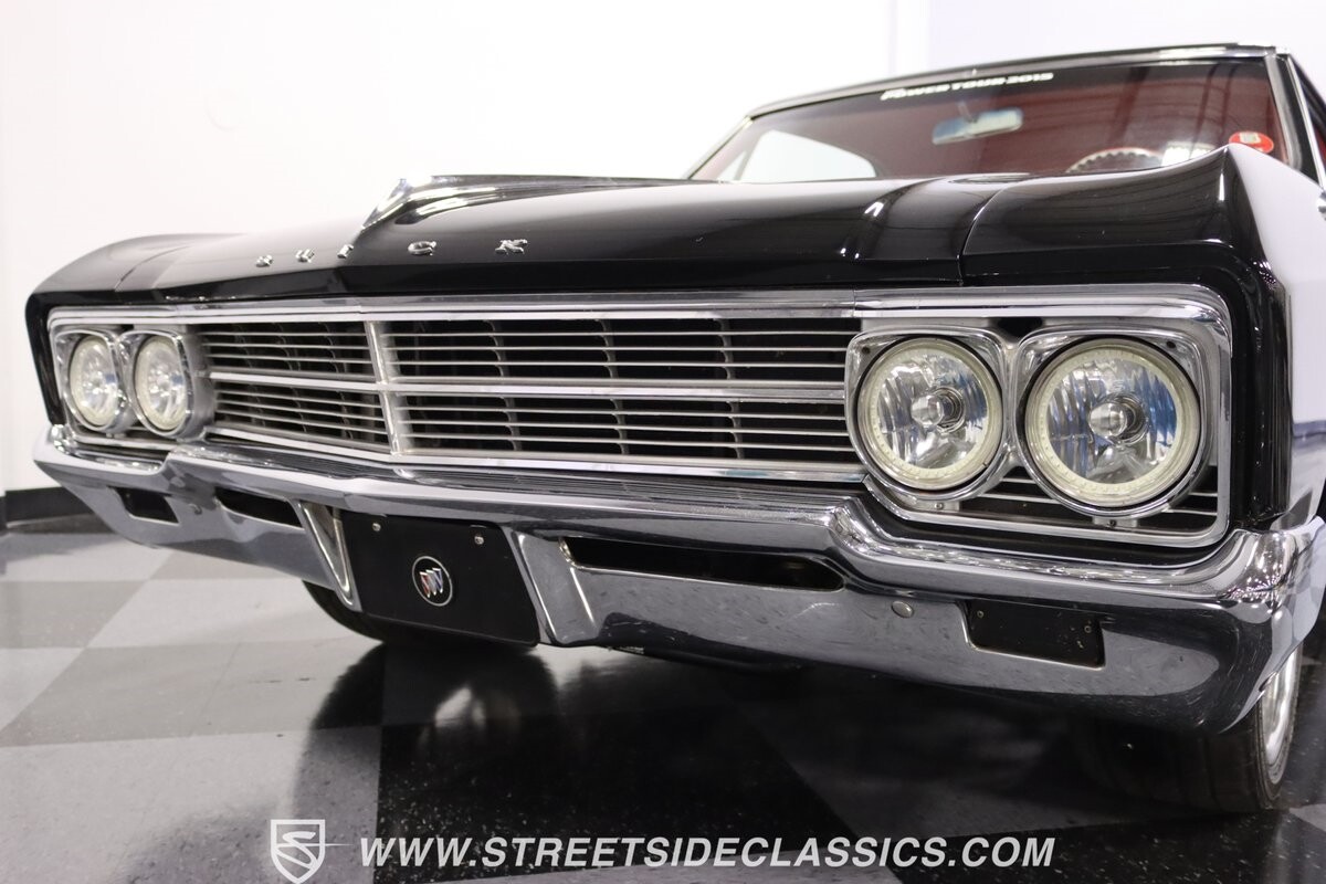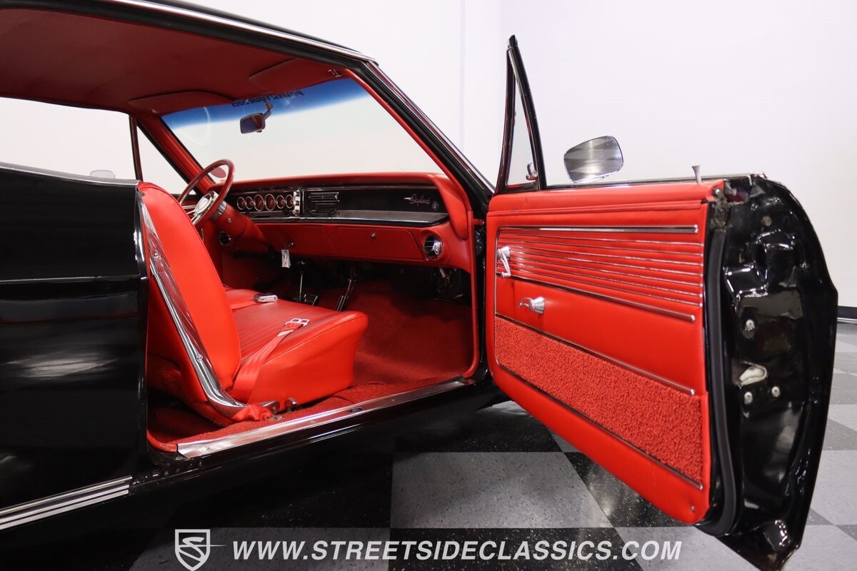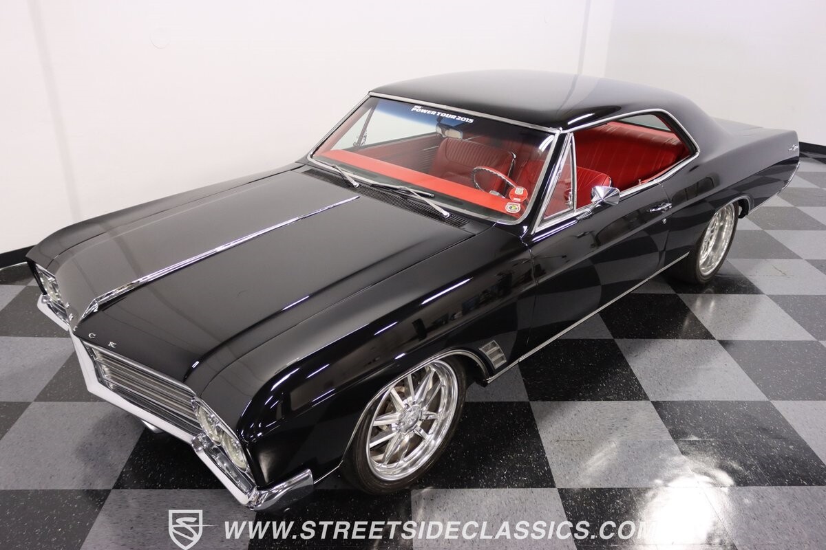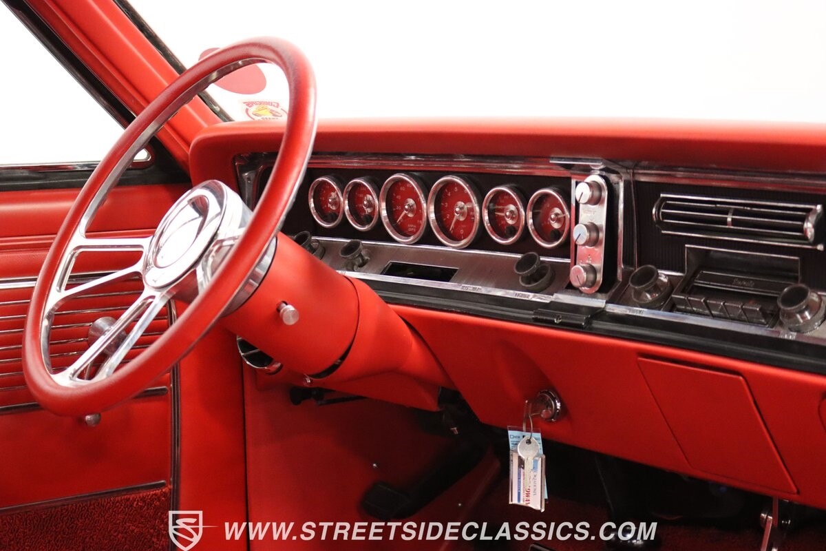 The 1966 Buick Skylark Restomod represents a harmonious blend of classic Buick elegance and modern high-performance engineering. This vehicle has undergone a comprehensive restoration, transforming it into a showpiece with capabilities that far exceed its original factory specifications.Coated in a deep black finish, the car's exterior has been fully repainted, changing from its original blue to a more sinister shade, giving it a commanding presence on the road. Under the hood lies a potent LS1 5.7 Liter V8 engine, a significant upgrade from the original powerplant. The addition of a performance cam and electronic fuel injection further enhances the driving experience. The interior is a striking red, with all-new stock-style and custom interior work. The installation of Speed Hut custom gauges, including a GPS speedometer, Lokar floor shift, and billet pedals. This Skylark rides on a modernized chassis, featuring tubular A-arms, adjustable coil-overs, and sway bars for improved handling. The braking system has been upgraded with Wilwood discs and a master cylinder, for unmatched stopping power.