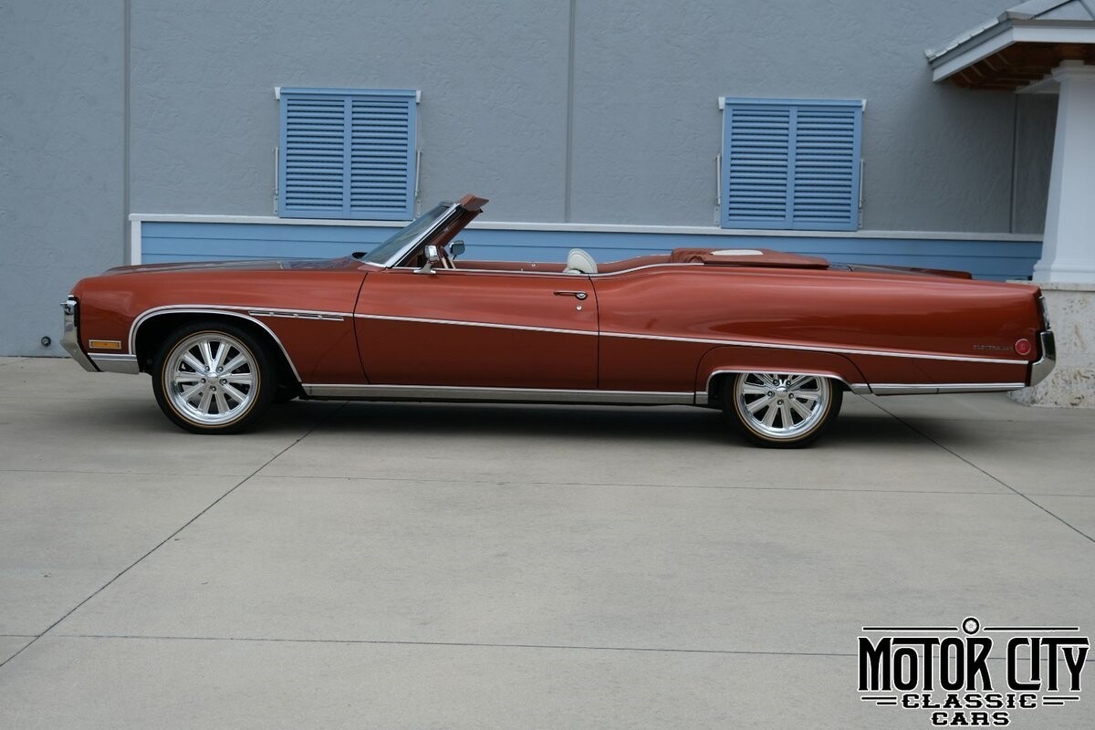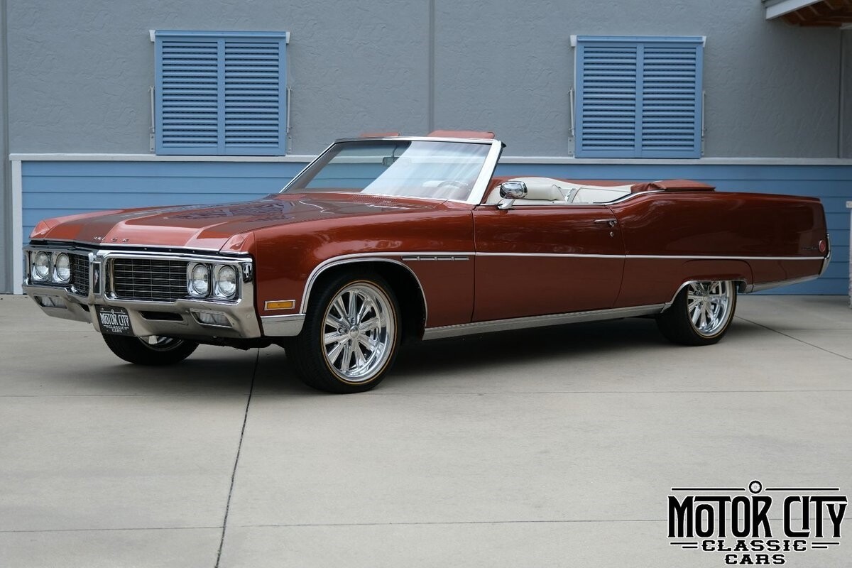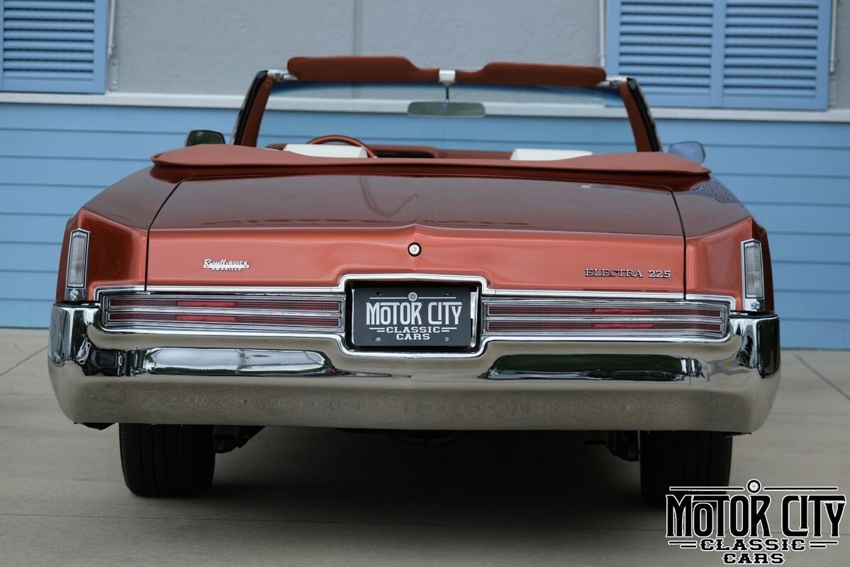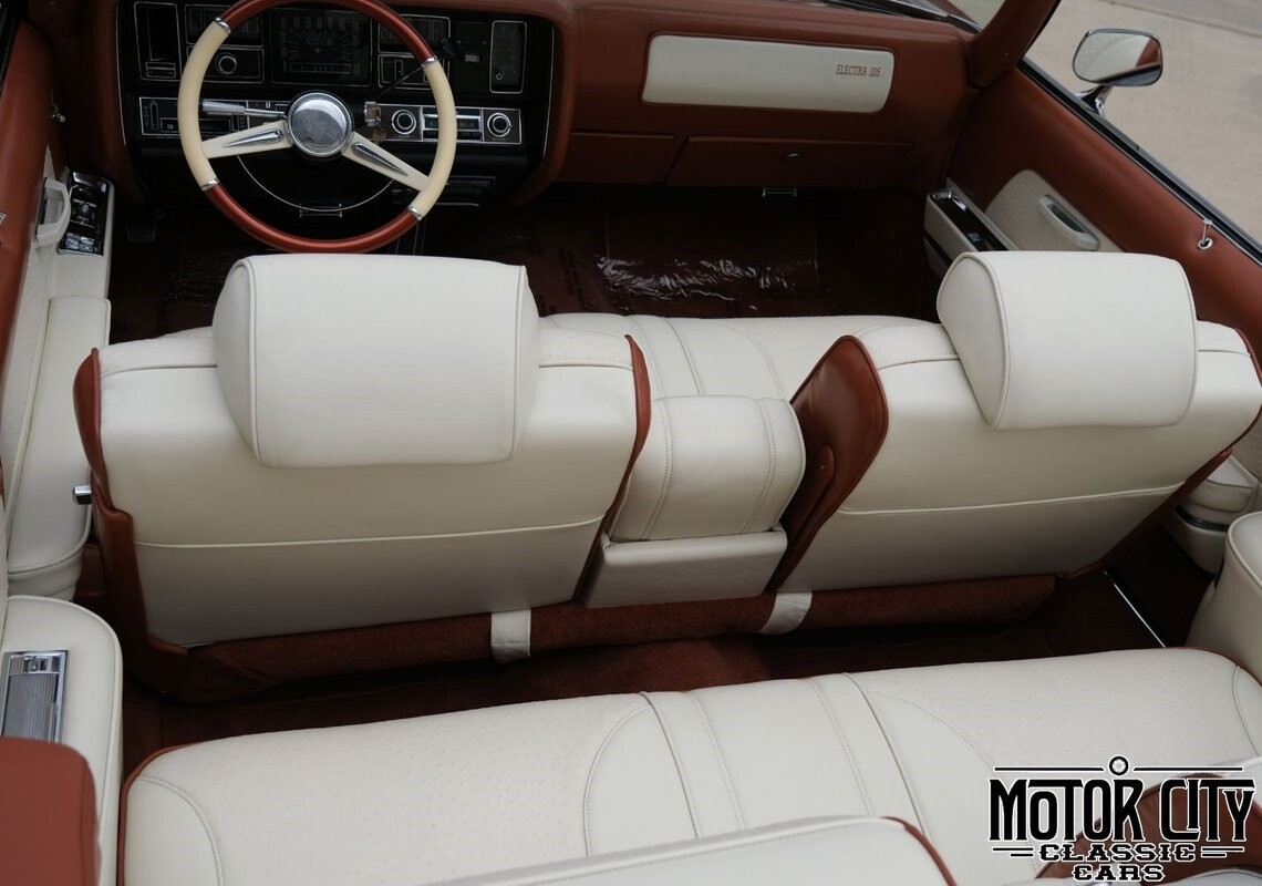 This 1970 Buick Electra 225 is the epitome of a perfect nod to originality with the right amount of custom work. The final year of the 3rd generation of the Electra, 1970 has become a widely sought after model year. This car is powered by a sought-after 455ci V8 engine with 3-speed Turbine 400 automatic transmission. Performance modifications in this Electra's build include aluminum cylinder-heads and intake manifold, Edelbrock carburetor, powder-coated headers, high-capacity aluminum radiator, aluminum air compressor, dual electric cooling fans, braided steel brake lines, chrome master-cylinder, and March Performance billet belt pulleys. This Electra is a fantastic car to cruise in with power-assisted steering, four-wheel disc brakes with booster and vacuum pump, power locks, power windows, power mirrors, power soft-top, tilt steering wheel, air conditioning, and delay wipers.