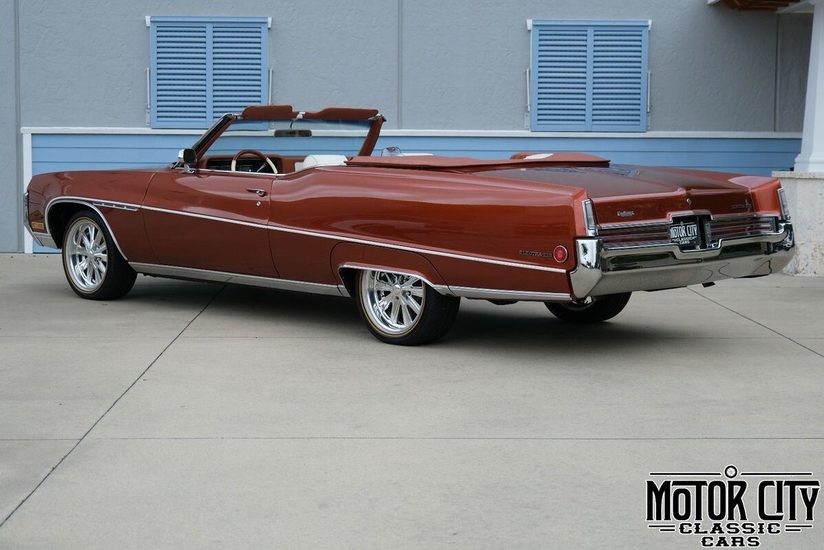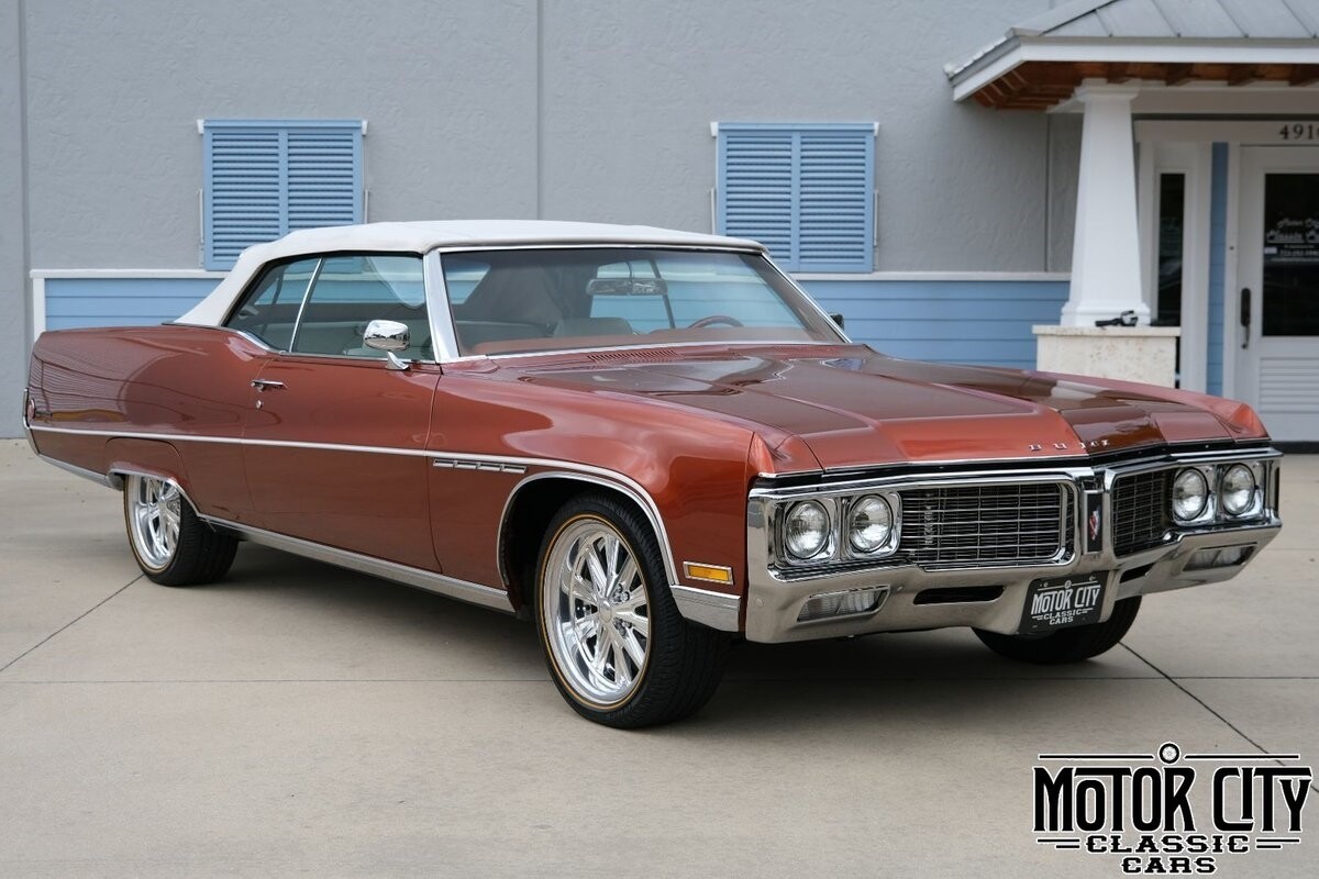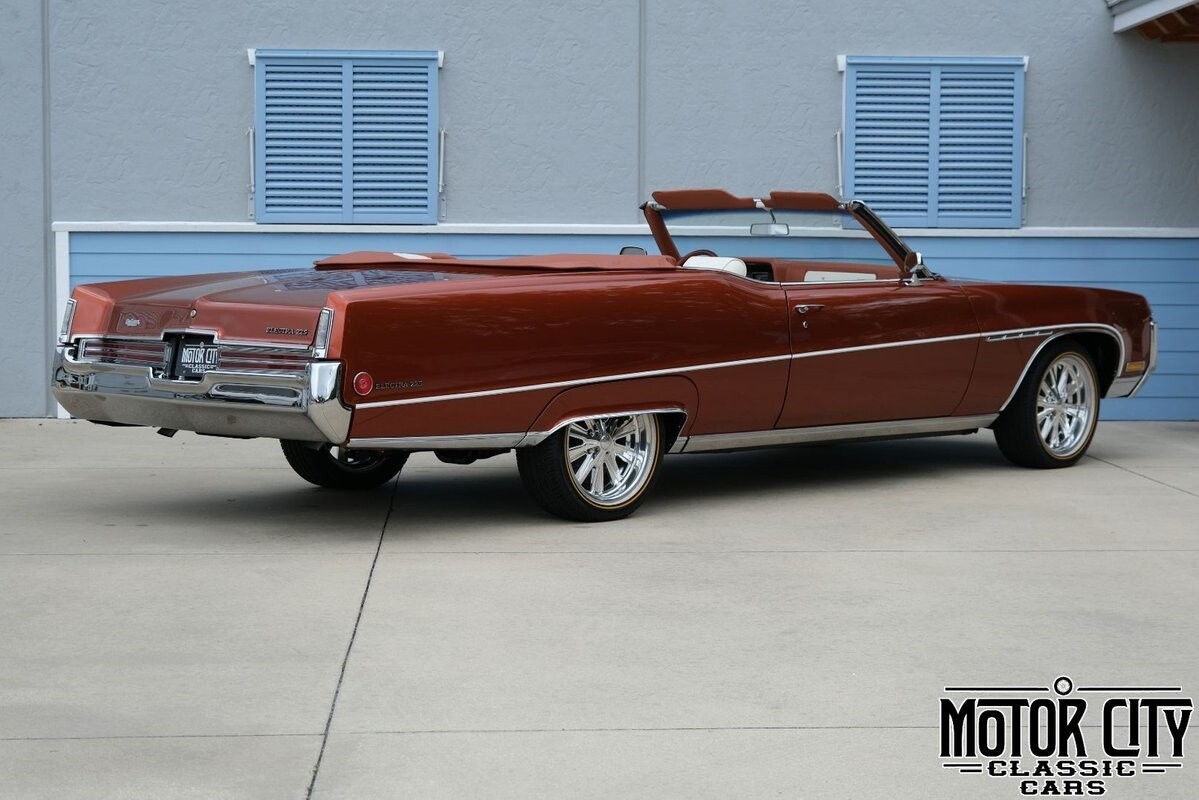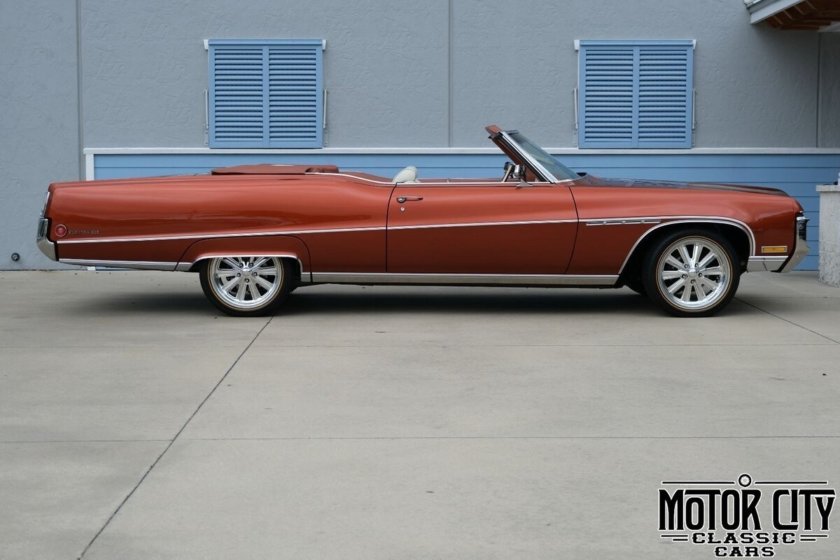 This 1970 Buick Electra 225 is the epitome of a perfect nod to originality with the right amount of custom work. The final year of the 3rd generation of the Electra, 1970 has become a widely sought after model year. This car is powered by a sought-after 455ci V8 engine with 3-speed Turbine 400 automatic transmission. Performance modifications in this Electra's build include aluminum cylinder-heads and intake manifold, Edelbrock carburetor, powder-coated headers, high-capacity aluminum radiator, aluminum air compressor, dual electric cooling fans, braided steel brake lines, chrome master-cylinder, and March Performance billet belt pulleys. This Electra is a fantastic car to cruise in with power-assisted steering, four-wheel disc brakes with booster and vacuum pump, power locks, power windows, power mirrors, power soft-top, tilt steering wheel, air conditioning, and delay wipers.