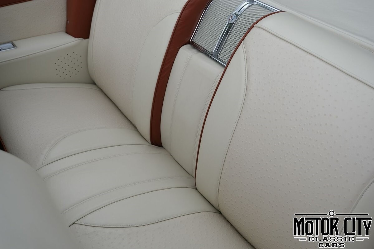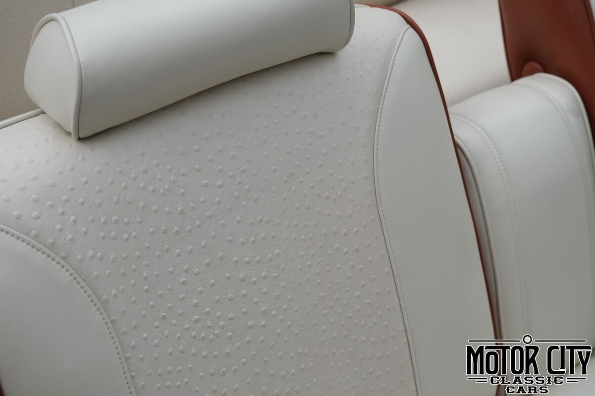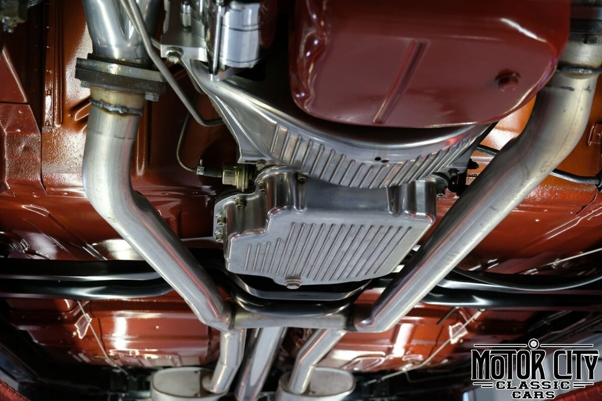 One the outside, this car received an over-the-top customer metallic Copper paint job. One the inside, the ostrich-style leather interior with copper piping tastefully compliments the custom exterior coloring. Each element of this restoration was completed to the highest standard. Riding on 18-inch Chip Foose alloy wheels and vogue tires, this car makes a statement upon arrival.