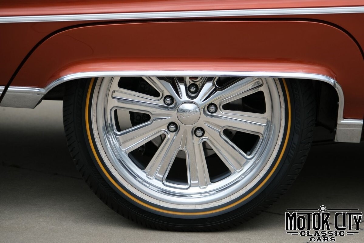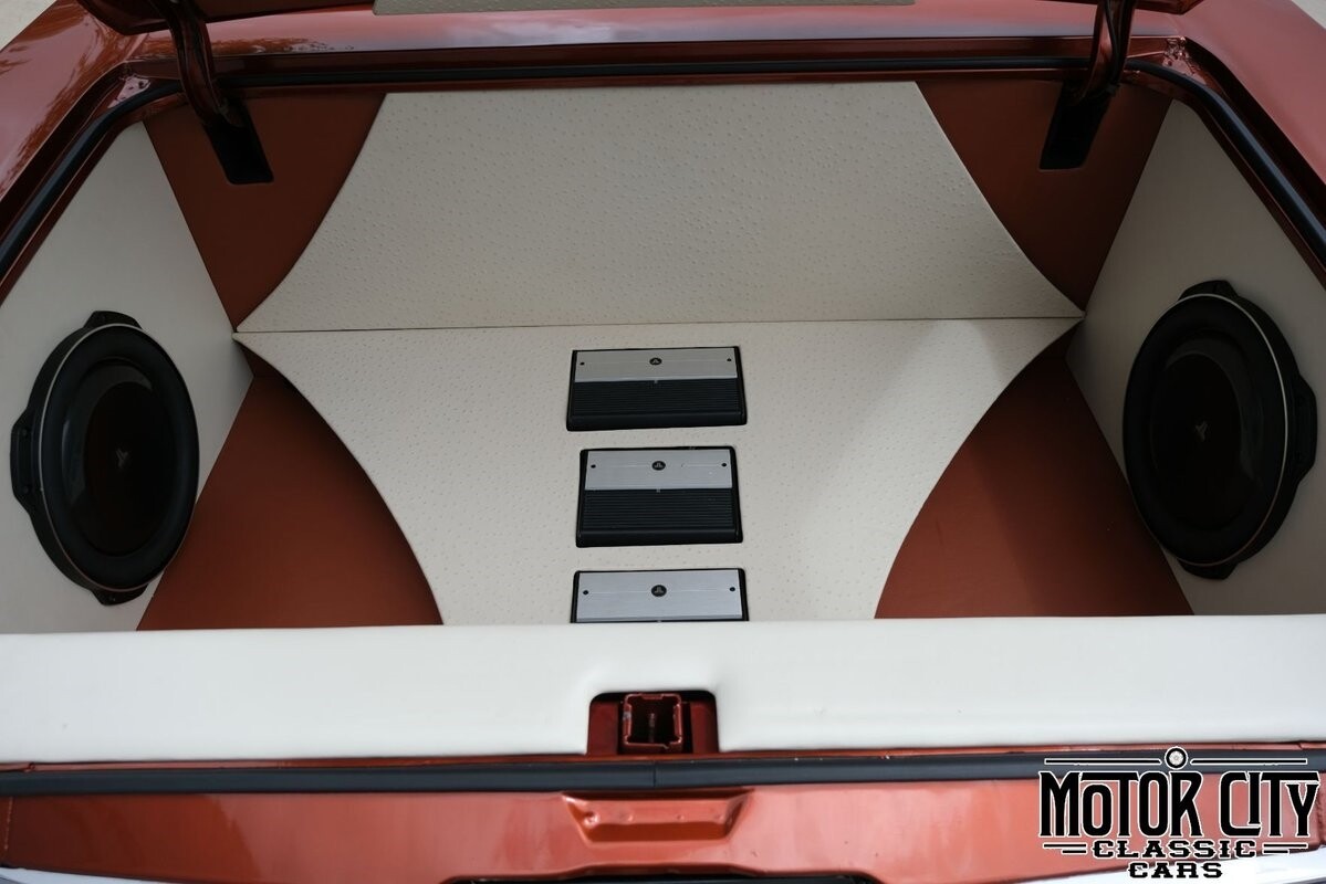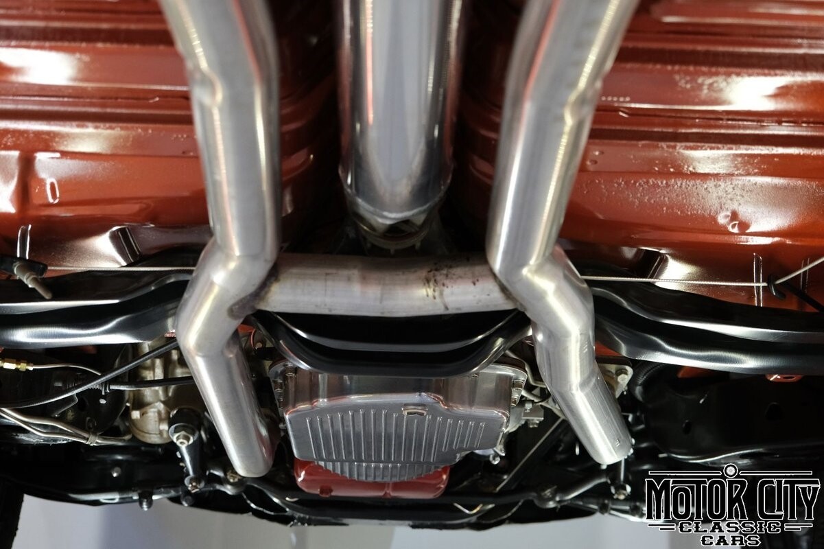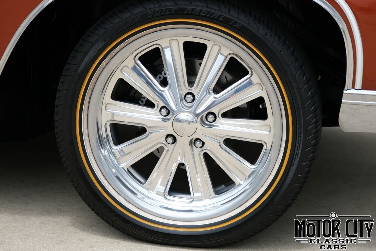 One the outside, this car received an over-the-top customer metallic Copper paint job. One the inside, the ostrich-style leather interior with copper piping tastefully compliments the custom exterior coloring. Each element of this restoration was completed to the highest standard. Riding on 18-inch Chip Foose alloy wheels and vogue tires, this car makes a statement upon arrival.