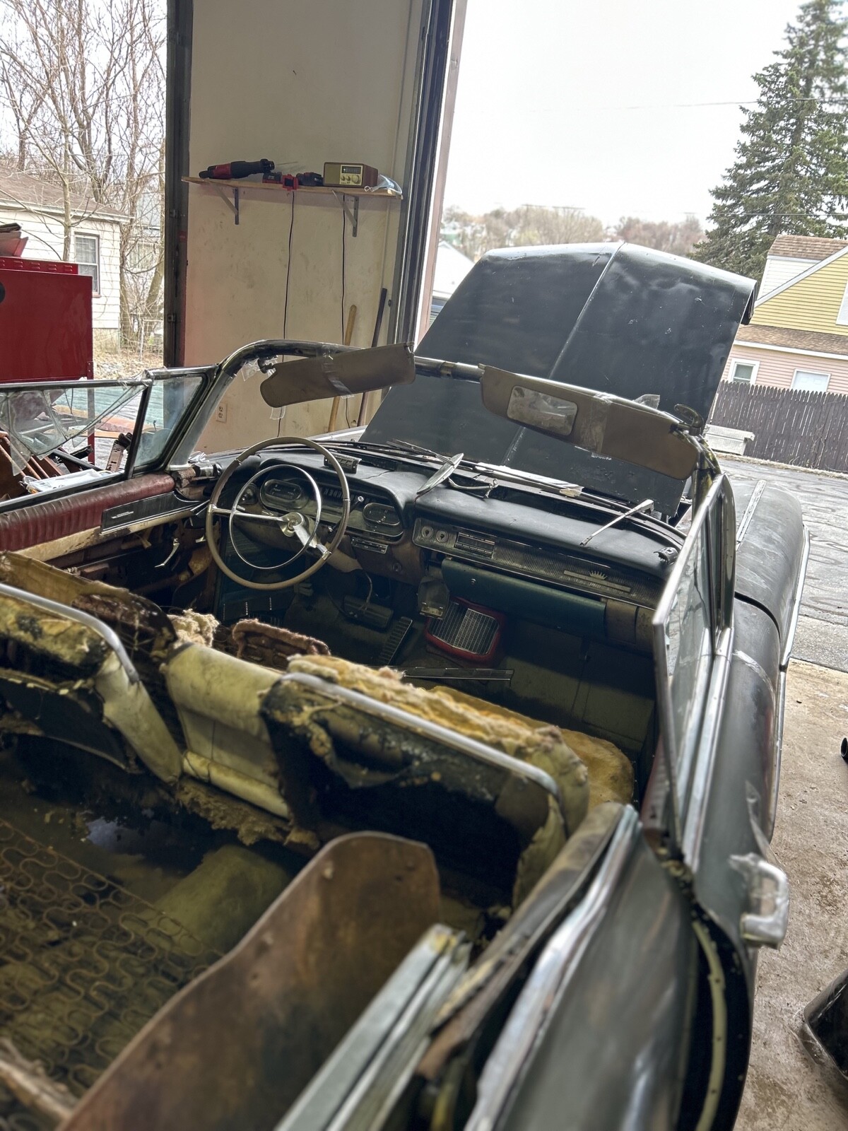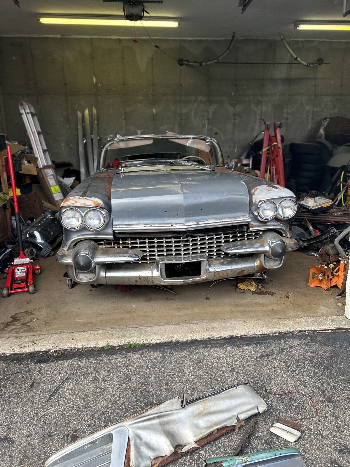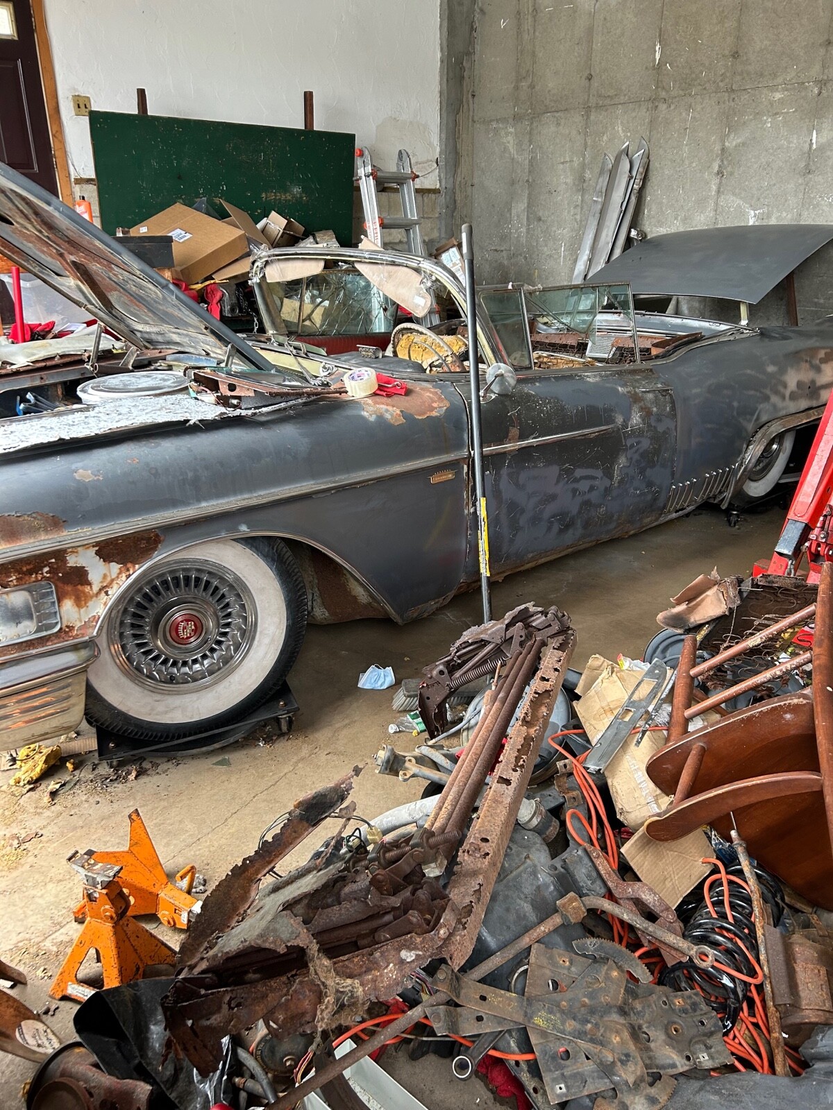 this car comes with most of the rare parts needed to complete the restoration The body has some rust on the sills and floors but it looks very repairable i The truck floor has very little rust the rear valance is in good condition The engine is not original and doesn't run but it is a eldorodo engine from a 1958 Siville it has the original eldorodo hood the front fenders and front bumper are in good condition the rear bumper and number plate holder are in driver condition the rear valance hash marks are included in the sale the side quarter hash marks are included as well they are reproduction stainless this is a air ride car has some missing parts it also has some air conditioning parts as well the convertible top is very complete and not stuck the header has some rust the front door arm rests need restoration the front door window switch's say baieritz and are correct photo in the gallery the convertible windshield trim is pretty complete along with the correct rear view mirror the rear convertible trim is not the baieritz type it has buttons on it the rear quarter convertible windows are included along with the gear operators and rear channels as well the correct trunk opener needs repair has the correct cover one truck hindge is a little bent i have included some apart photos to show a better condition of the vehicle before the parts were added you are bidding on the complete car