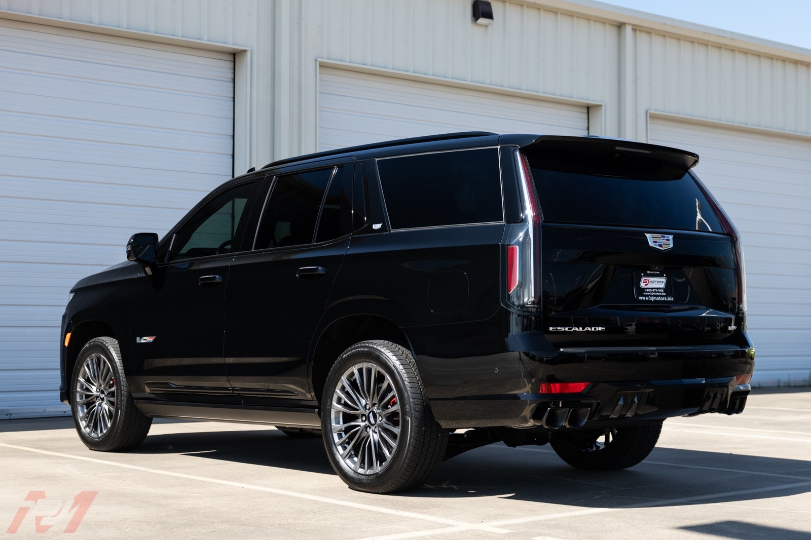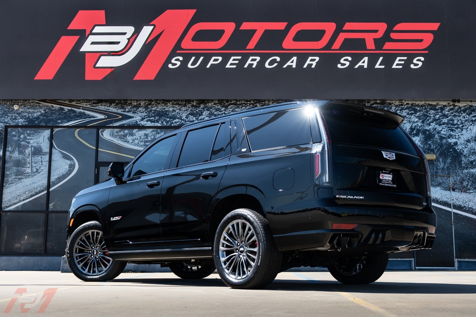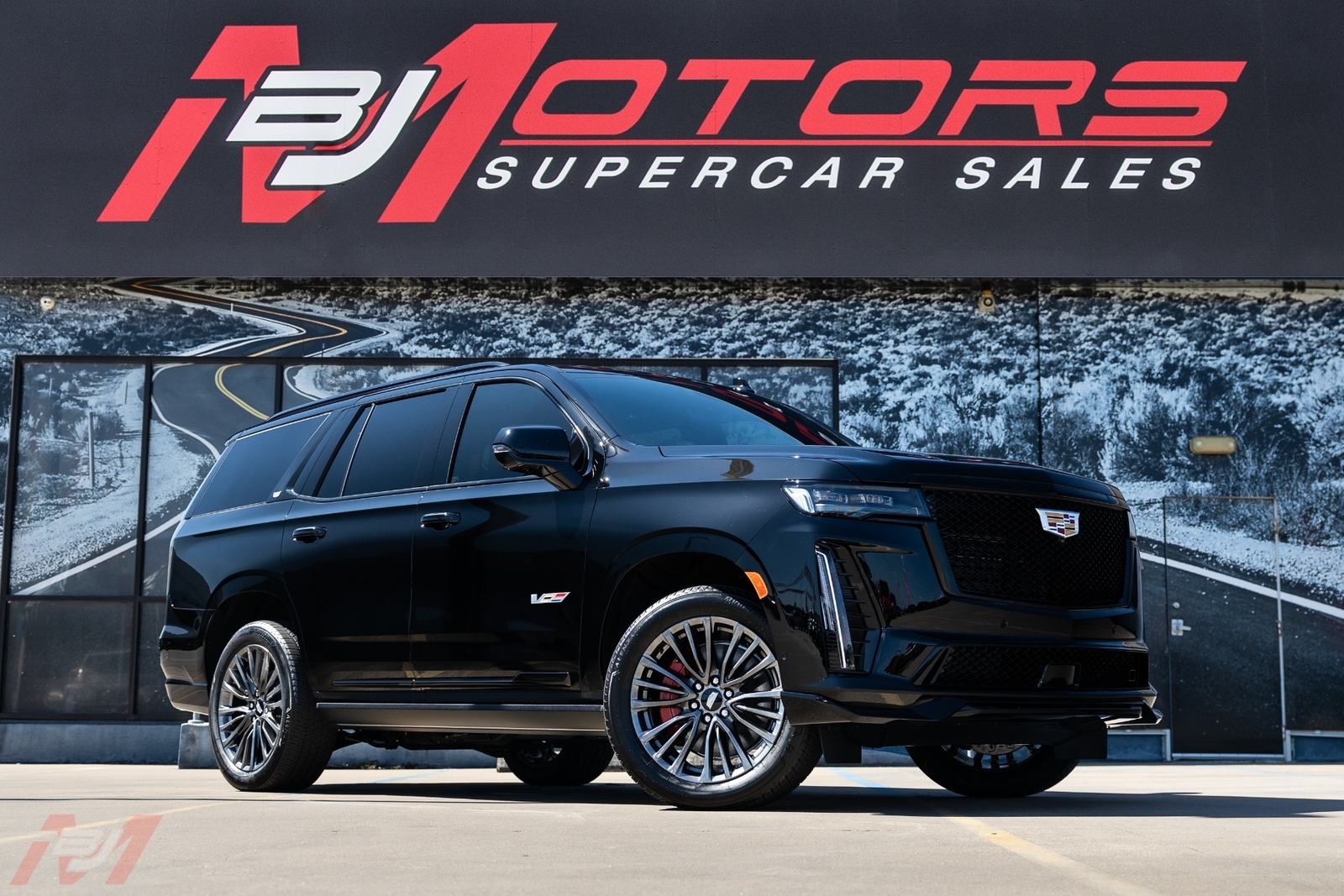 BJ Motors is thrilled to offer this 2023 Cadillac Escalade V in Black Raven over Jet Black Interior. Arriving in like-new condition with 41 miles, this Escalade V is powered by GM's legendary supercharged 6.2-liter LT4 engine making 682HP! Each Escalade V features an abundance of top-shelf amenities from the factory, including Adaptive Air Ride Suspension, an AKG 36 Speaker Sound System, Adaptive Cruise Control, Panoramic Sunroof, and much more! Added options include Super Cruise and Center Console Fridge. Contact us for more details or stop by to see this amazing Escalade V in person!