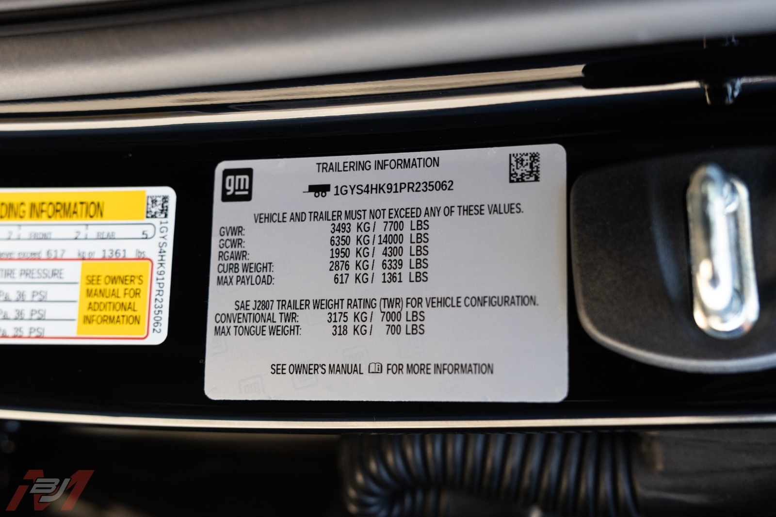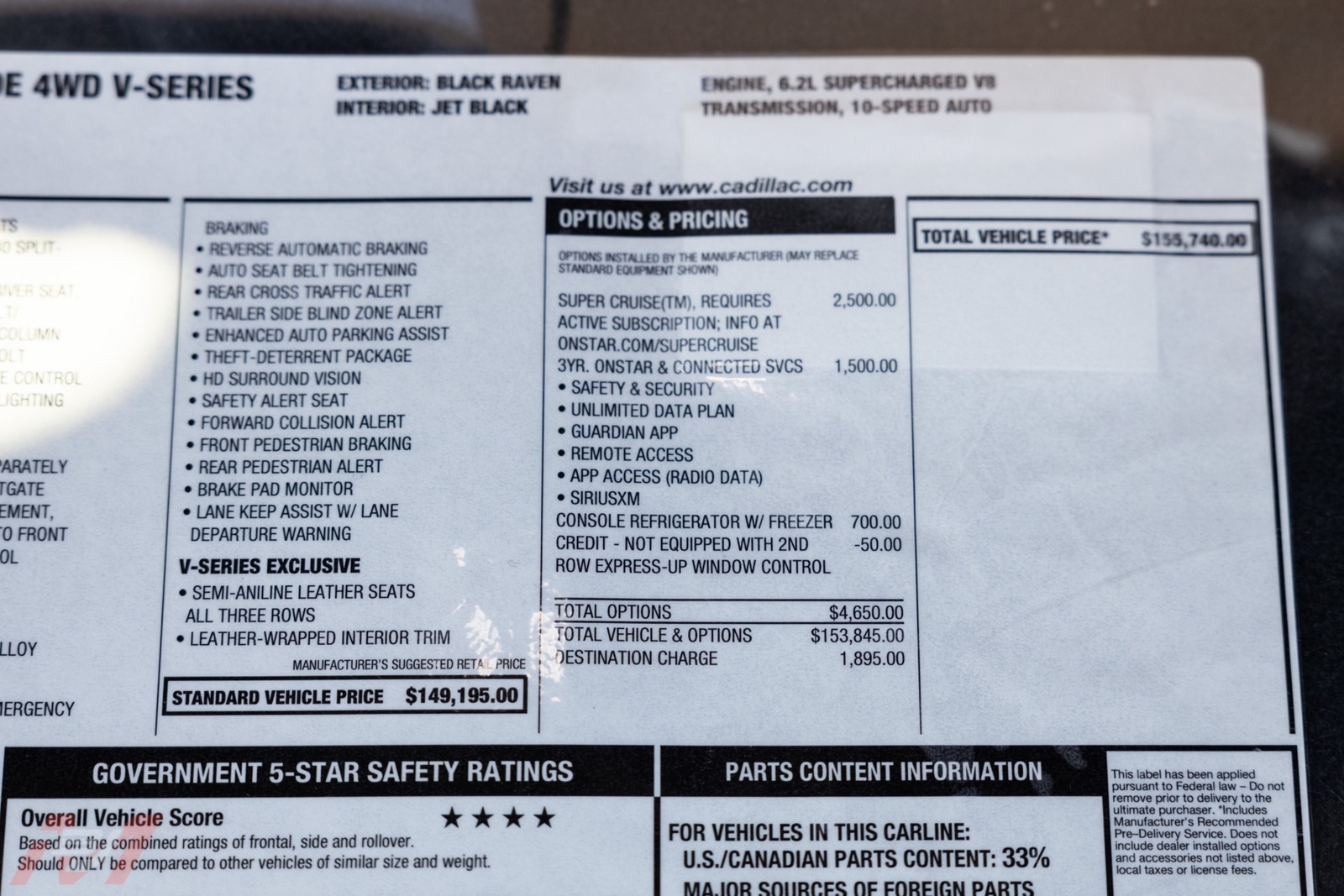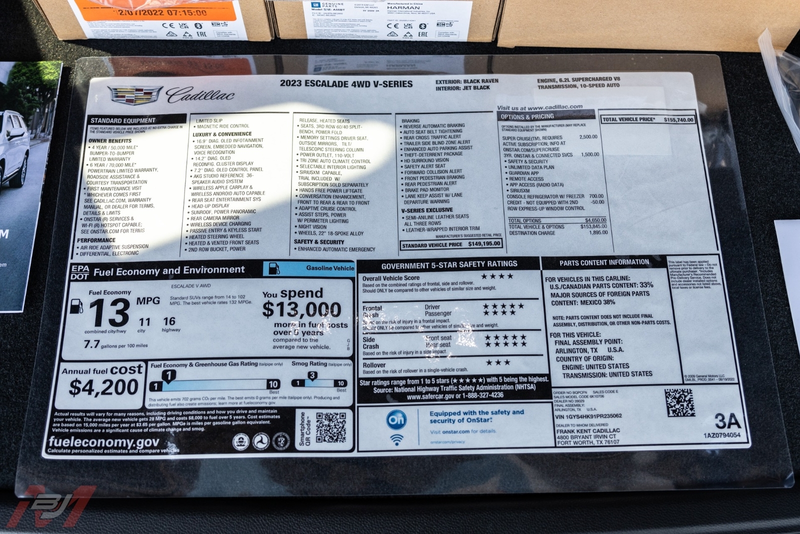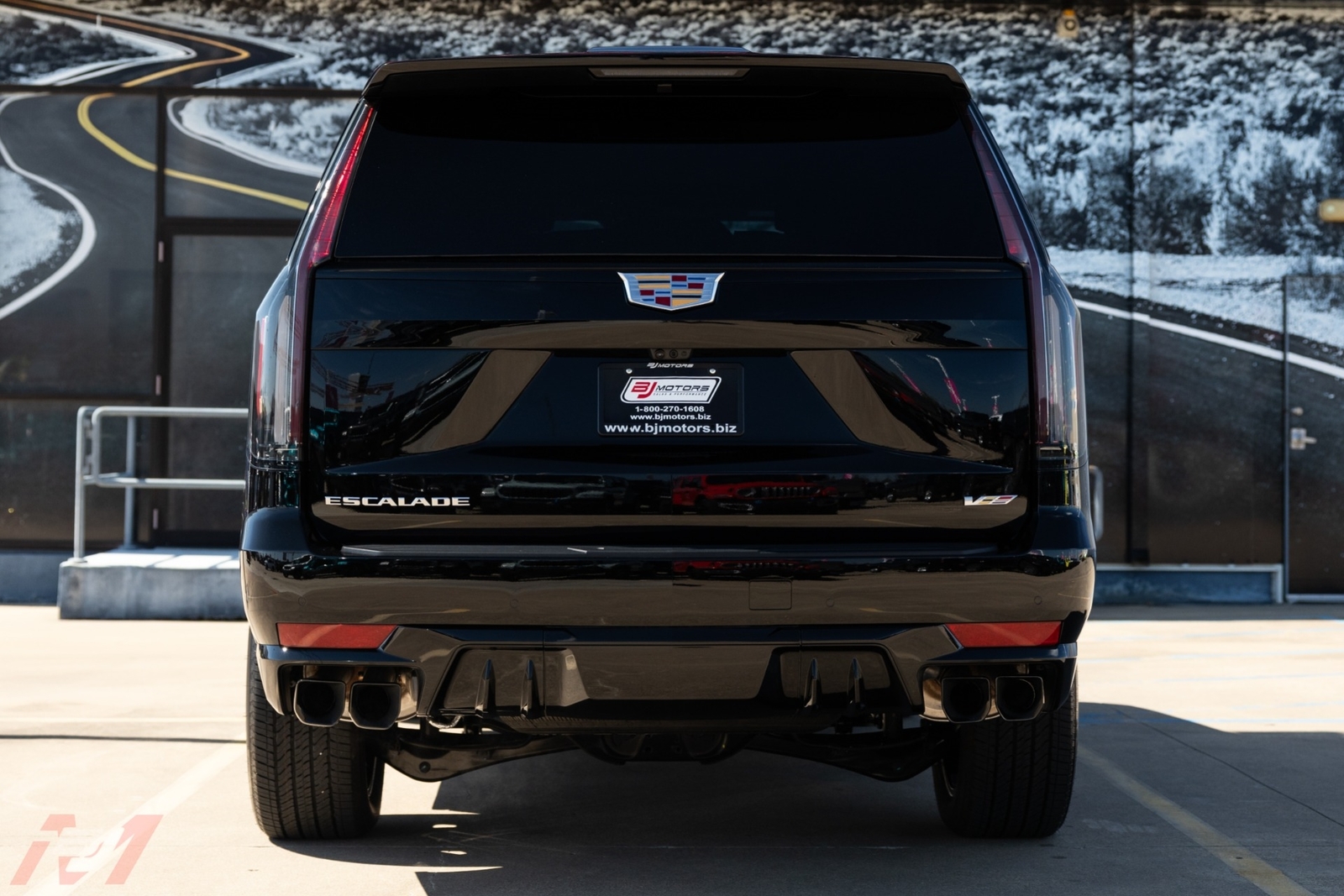 BJ Motors is thrilled to offer this 2023 Cadillac Escalade V in Black Raven over Jet Black Interior. Arriving in like-new condition with 41 miles, this Escalade V is powered by GM's legendary supercharged 6.2-liter LT4 engine making 682HP! Each Escalade V features an abundance of top-shelf amenities from the factory, including Adaptive Air Ride Suspension, an AKG 36 Speaker Sound System, Adaptive Cruise Control, Panoramic Sunroof, and much more! Added options include Super Cruise and Center Console Fridge. Contact us for more details or stop by to see this amazing Escalade V in person!