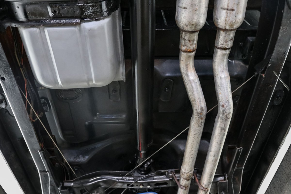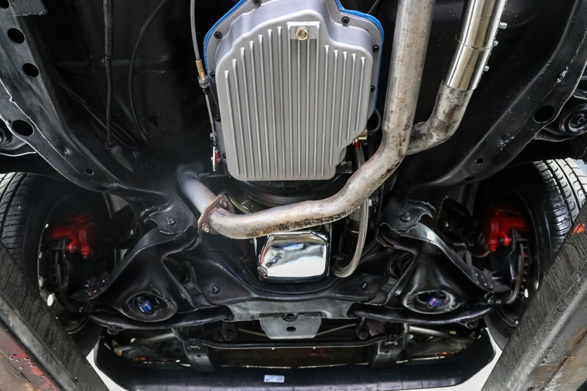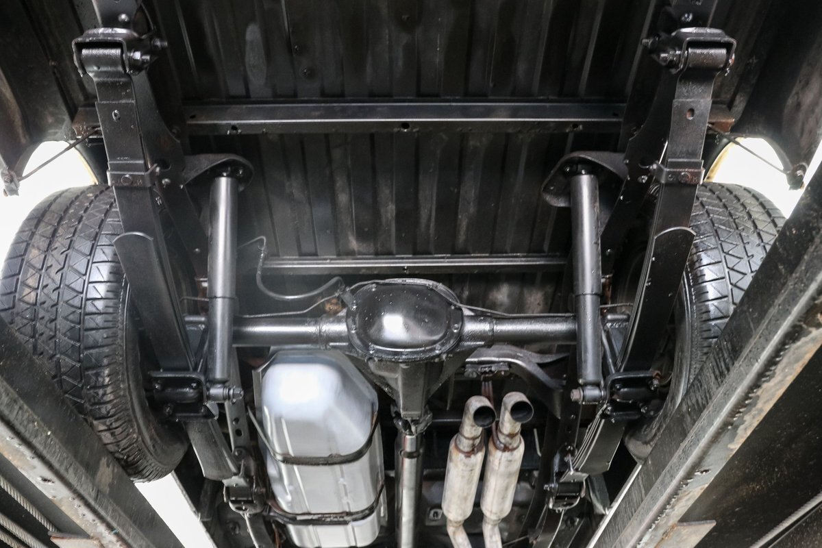 Aesthetic and functional additions like the vinyl bed cover and sliding back glass marry form and function, providing utility and a sleek look. Inside, Sunpro gauges keep the driver informed, and the B&M shifter ensures precise gear changes, enhancing the interior's sporty vibe. The dual exhaust system not only boosts performance but also provides the auditory hallmark of American muscle, completing the transformation of this once unassuming pickup.