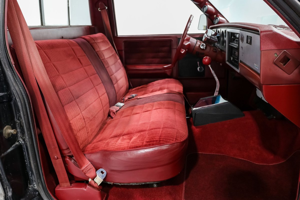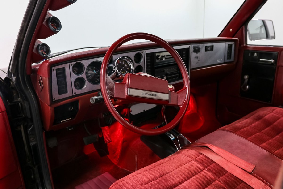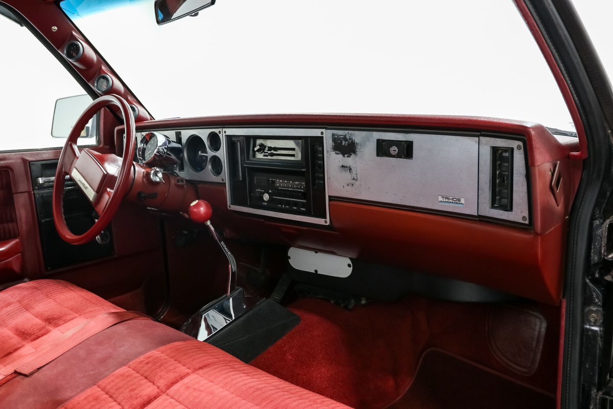 Unleash the unexpected power of this 1982 Chevrolet S10, transformed from a standard pickup into a V8 powerhouse. Nestled within its sleek black exterior is a potent 350ci V8 engine paired with a Turbo 400 automatic transmission, delivering a driving experience that blurs the line between classic truck and muscle car. The vibrant red interior, featuring comfortable cloth bench seating, adds a bold contrast, making this S10 as visually appealing as it is thrilling to drive.