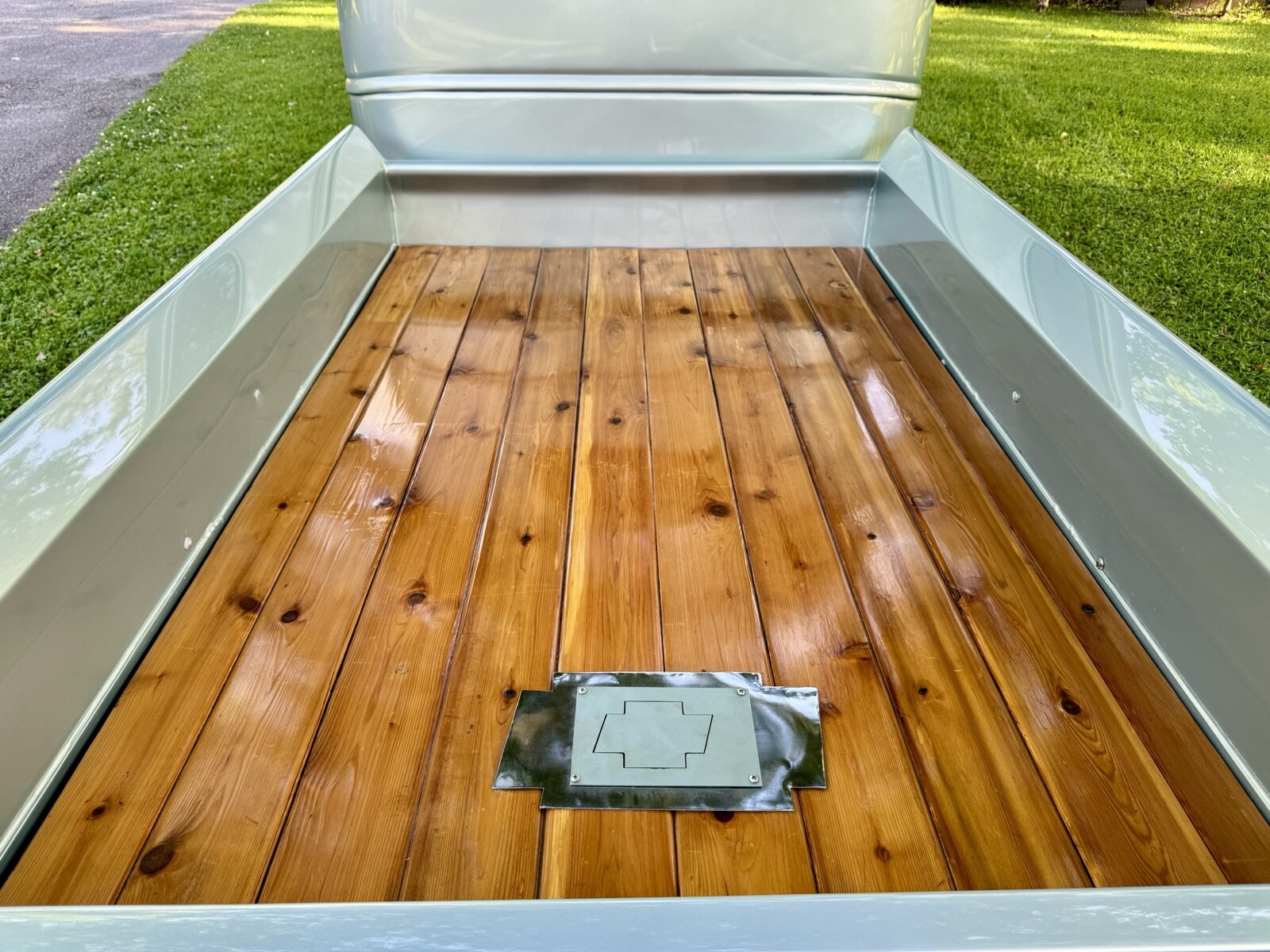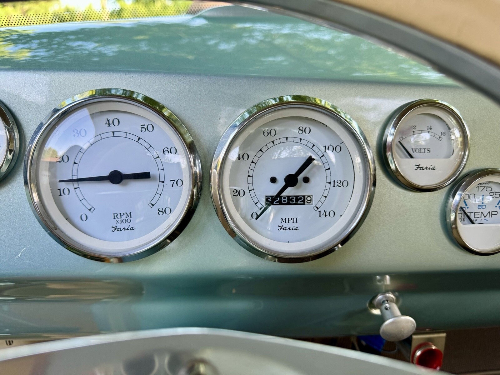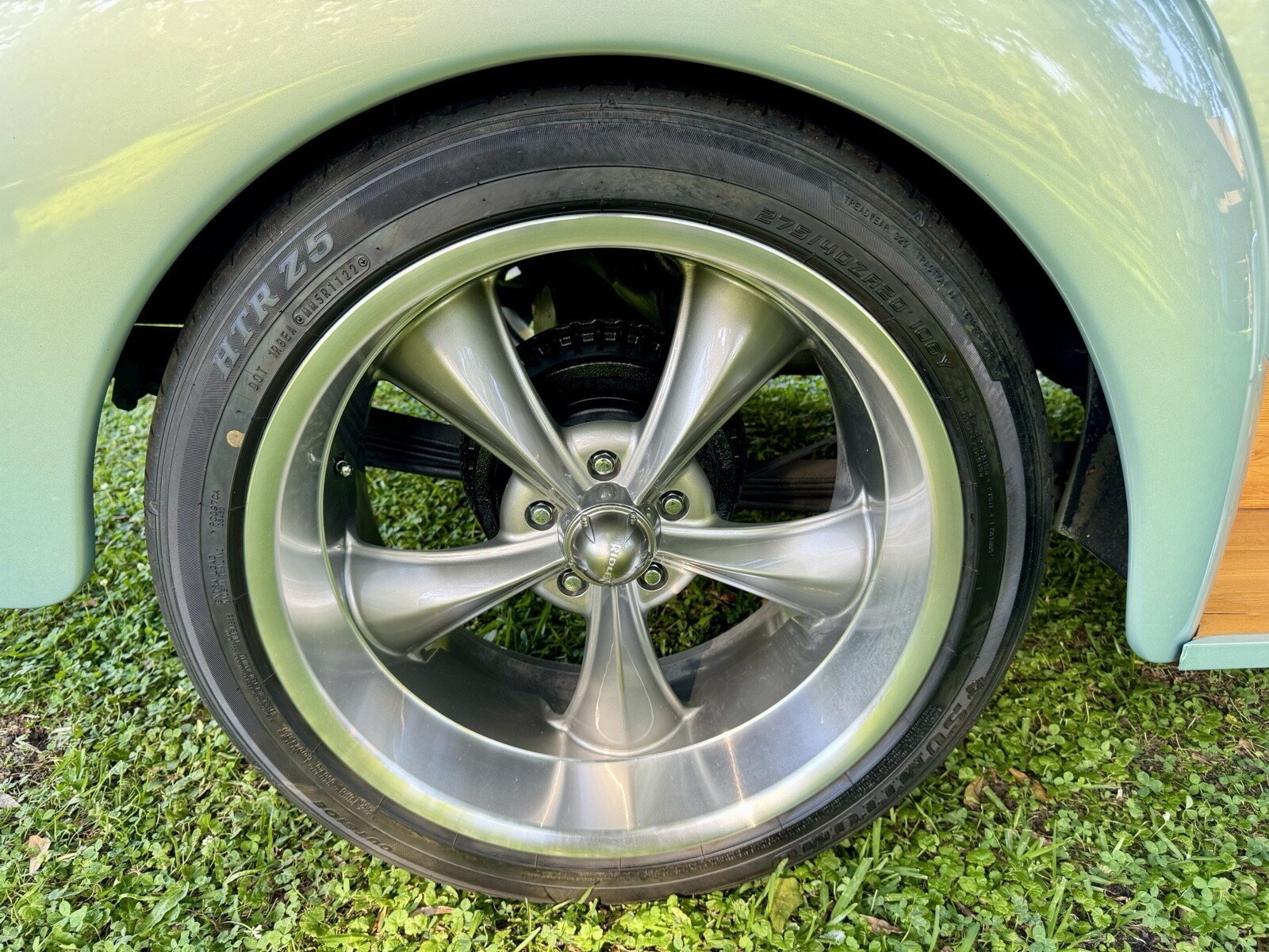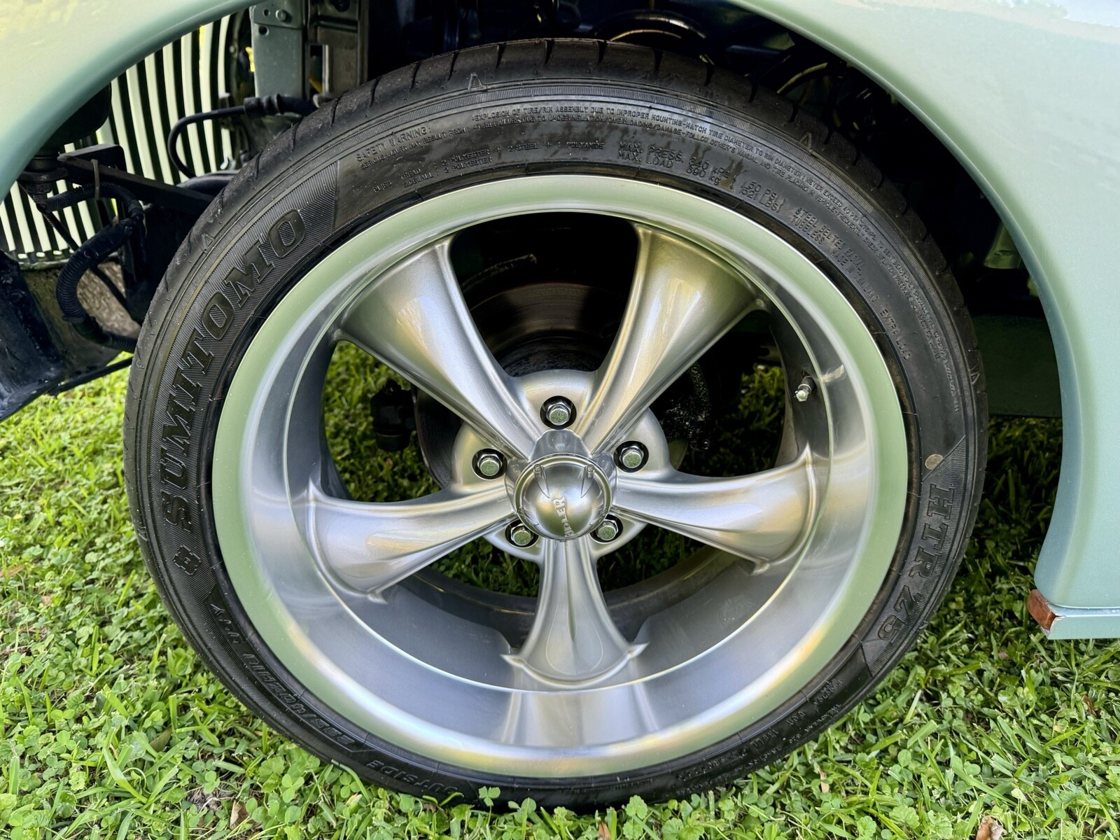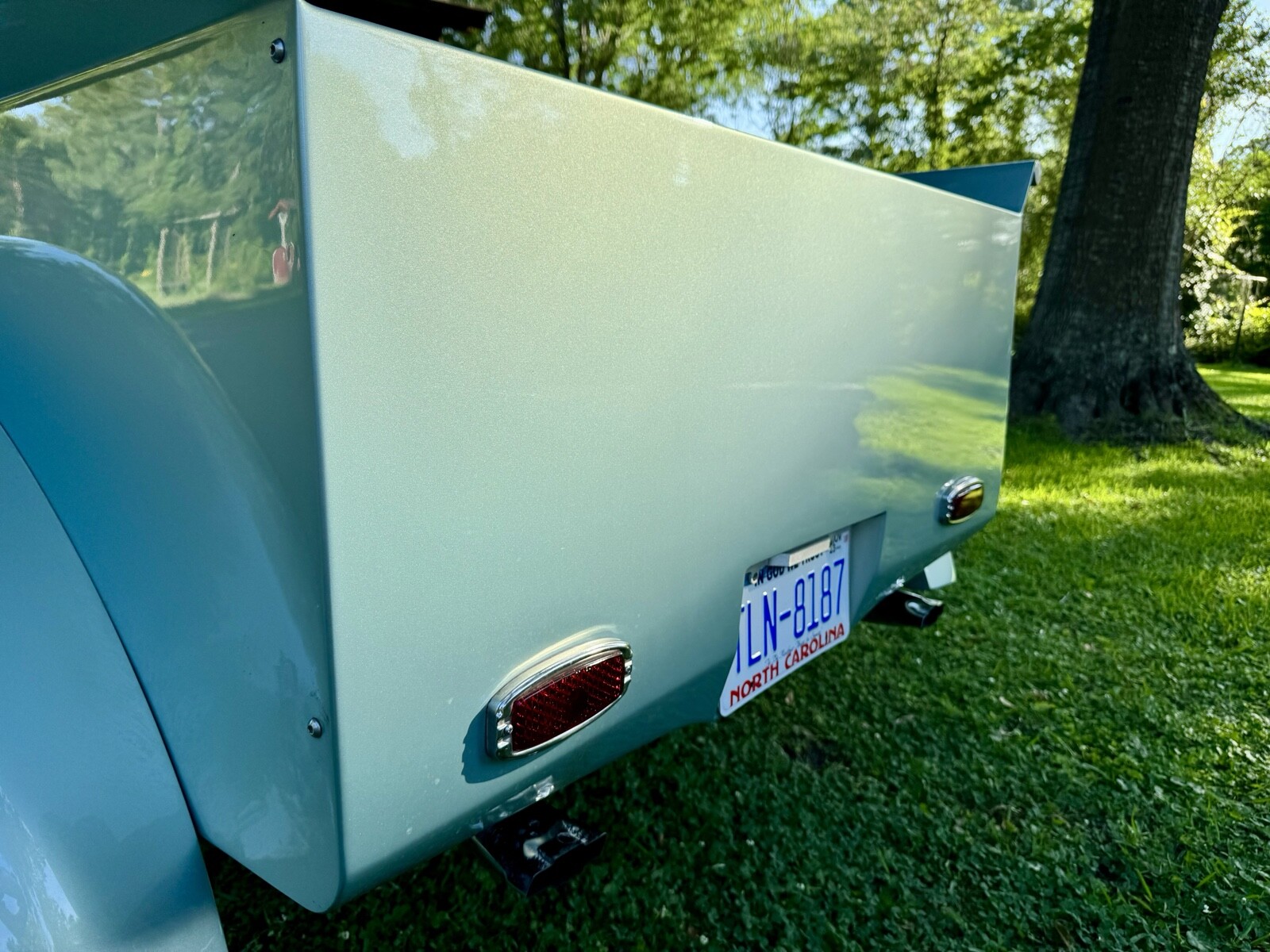 Where do I start? Check out this 1946 Chevrolet custom streetrod pickup. It is powered by a Chevrolet 350 with a 350 transmission that runs great. It is equipped with power steering, power brakes, and power windows. This truck sits on the original frame with a Camaro subframe. The beautiful sea/green/teal color exterior is in great shape and shines beautifully in the sun! This truck is a headturner for sure! 235/40/18 Ridler wheels in the front and 275/40/20s in the rear. The door handles have been shaved creating a smooth streamlined exterior. The wood-grain in the bed and on the running boards is in excellent shape! Custom Chevrolet bowtie headlight openings have been added as well as on the hood to give it a unique look. The tan leather seat is in great shape as well as the headliner and carpet. This custom truck would make a great addition to someone’s collection.