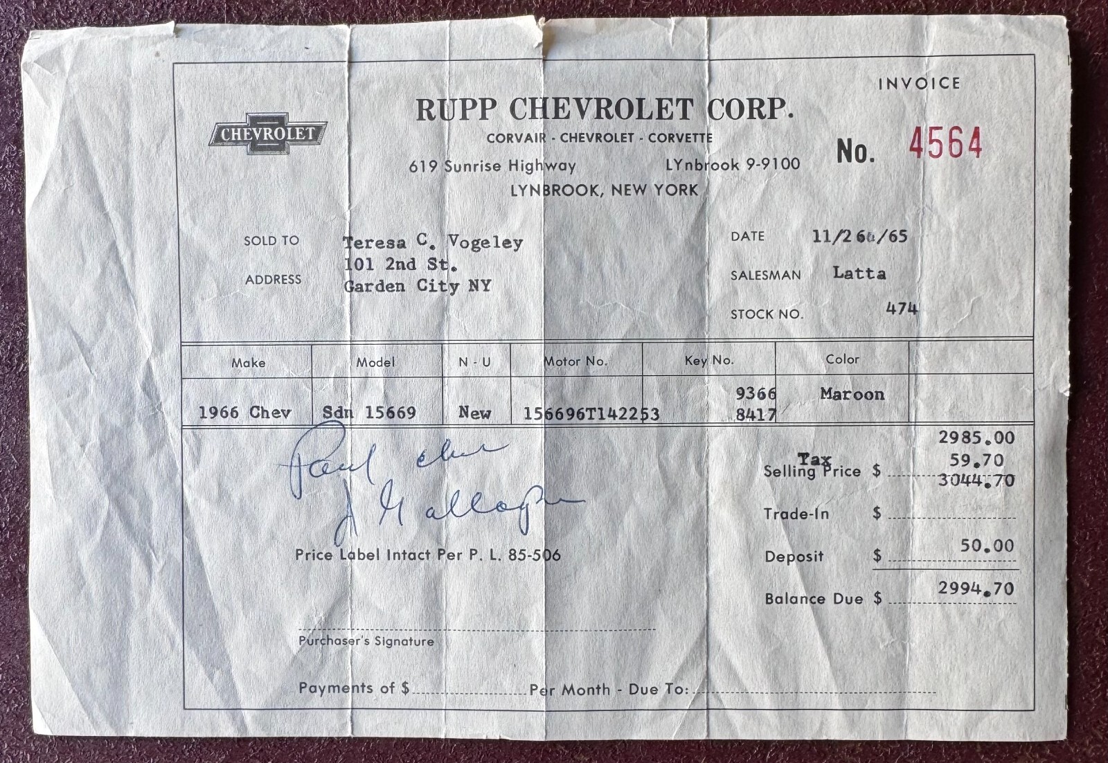 1966 Chevrolet Bel Air, 4 Door, Strong Running 327 cu in V8, 2 bbl Carb. Nice Interior (previously restored) with Cloth Bench Seats and Excellent Carpet. Solid Body with Very Little Rust and Only a Few Dings. Factory AC is Installed with Modern Compressor. Original Paperwork including Bill of Sale and Owner's Manual. Crager Mag Wheels. The paint has definitely seen its better days, but actually looks somewhat OK, it this era of "petina". I would guess that this car has 135,552 miles, but not sure. I have videos available.YouTube: https://youtu.be/NgxkpjrlBJk