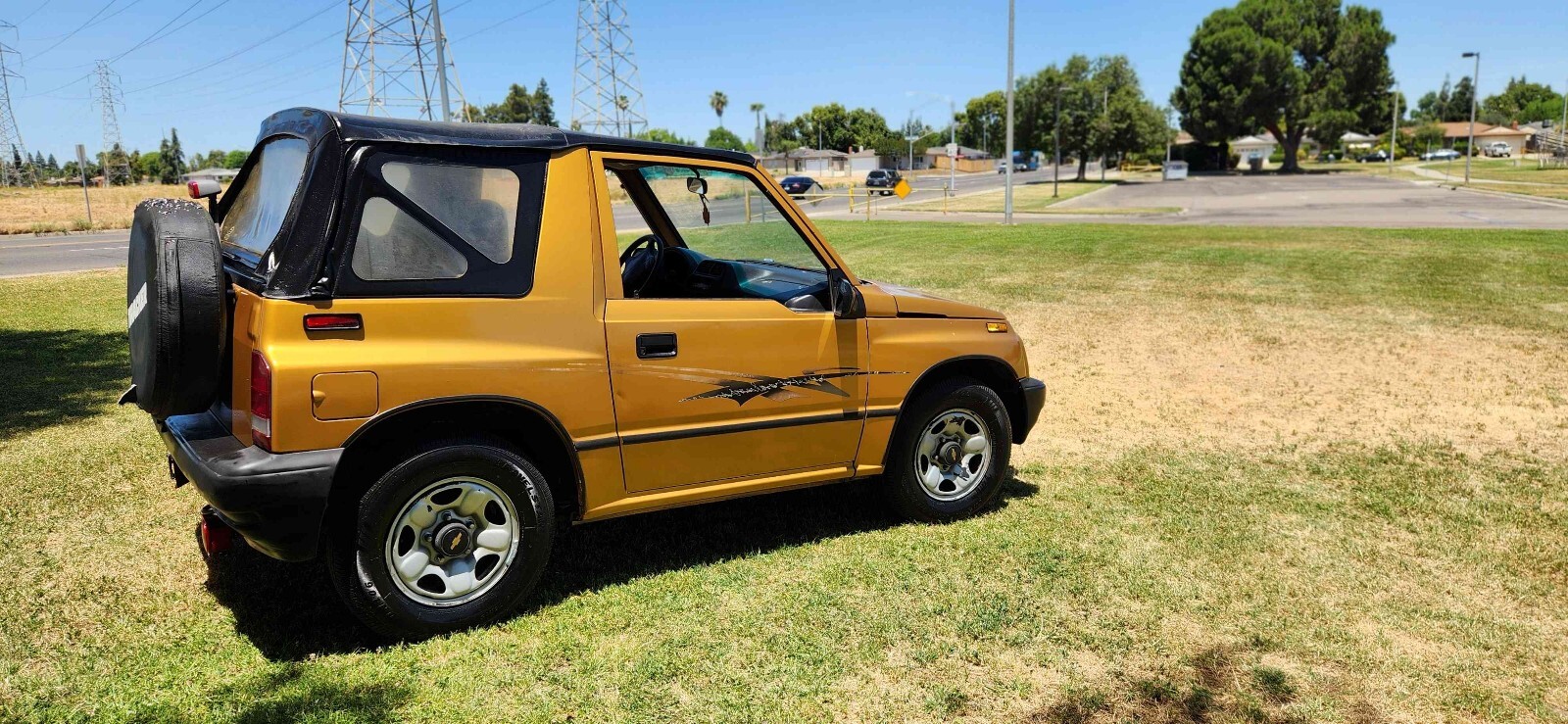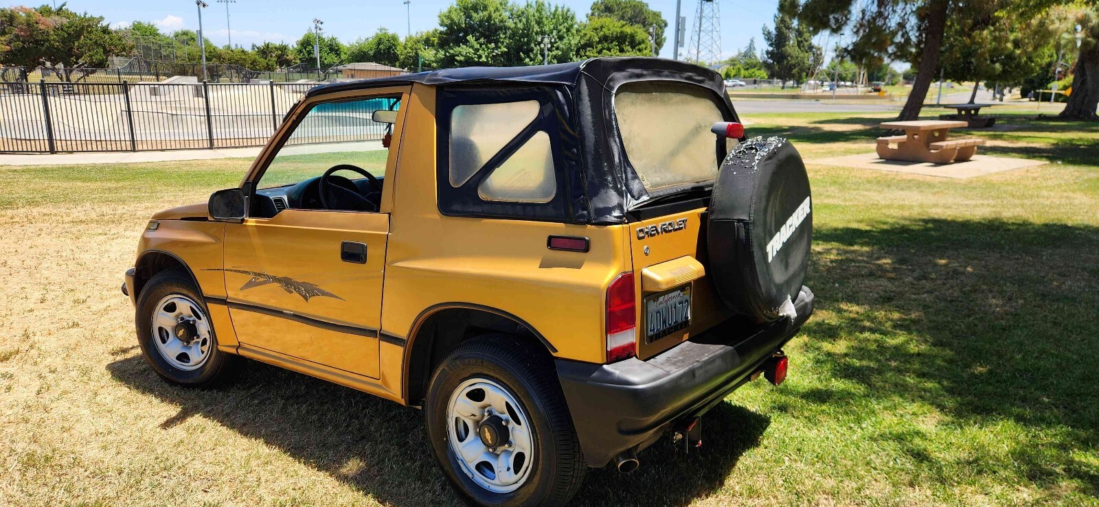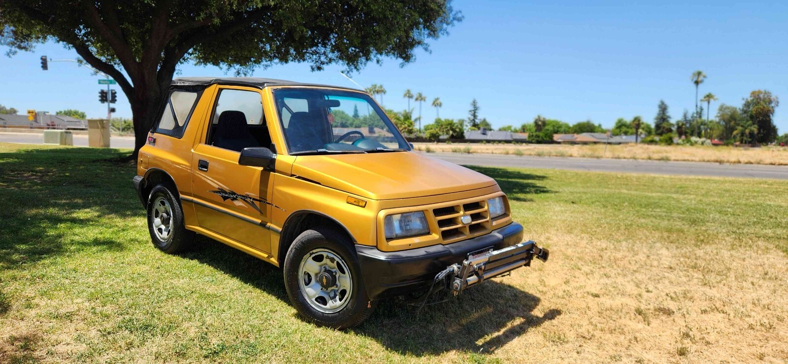 It is a 1998 chevy tracker 2WD this thing runs and drives amazing very well kept and maintained was pulled behind a rv so it shows 159k miles but was driver less then half of that also comes with pull behind set up really good and mpg 5 speed manual transmission brand new tires less then 500 miles on them all original rust free tagged ready to go clean California title in hand