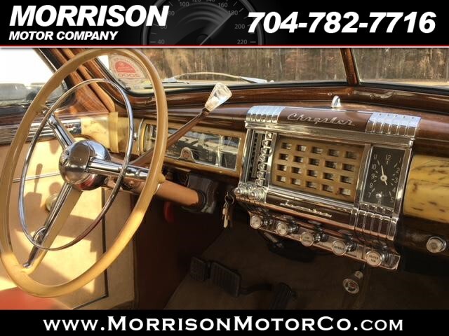 Only 4,182 Travelers were produced by Chrysler back in 1948. This one is Catalina Tan and Rossini Brown two tone paint that compliment the Town and Country wood and chrome roof rack. This car is powered by the 115 Spitfire six cylinder and the Fluid drive transmission. ****This classic car is being sold as not running, it is currently on display in our museum Morrison Motor Car Museum.. FOR MORE DETAILS ABOUT THIS TRAVELER PLEASE CALL JIMMY MORRISON AT 704-782-7716.****Morrison Motor Cars Inc. is a Family owned and operated business that has been in business for many years. We have been in business for so many years due to so many great reasons. One way, is we don't play the mind games and keep you here at the dealership for many hours. Another way is we don't charge all the dealership fees like (Admin, inspection, process fee), we only have a documentation fee. We strive to make your vehicle buying experience as easy as possible. If you need financing, our financing department is here to get you the best deal out there. We don't ruin your credit by sending it to 10 different lenders or banks. Our financing manager wants to keep your credit good and get you the best deal. Have a Trade? We take those also, all years and makes. For more details about Morrison Cars Inc. please go to our company website to learn more about us and see our current inventory. We are not just here just to sell you one car, we are here to develop a relationship so we can sell you many vehicles over the years. Thank you for the interest in this vehicle and we look forward to doing business with you.